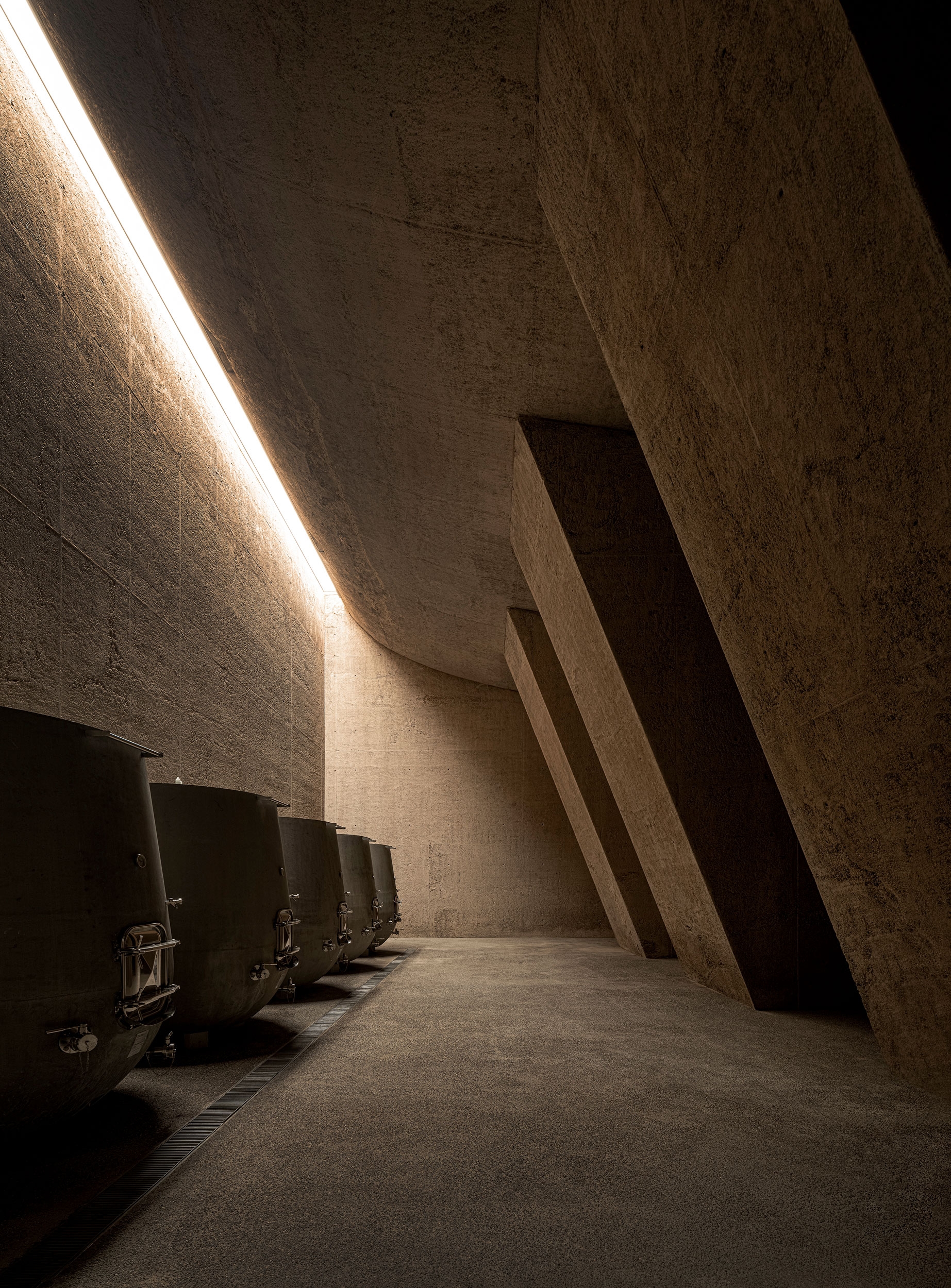 The primary challenge was how to use natural light as the complex is underground. Daylight studies were performed to tailor the lighting to the site’s features. The design approach was handled in two ways: one that highlights the architecture and one that reveals its soul and draws us into the wine’s storytelling
