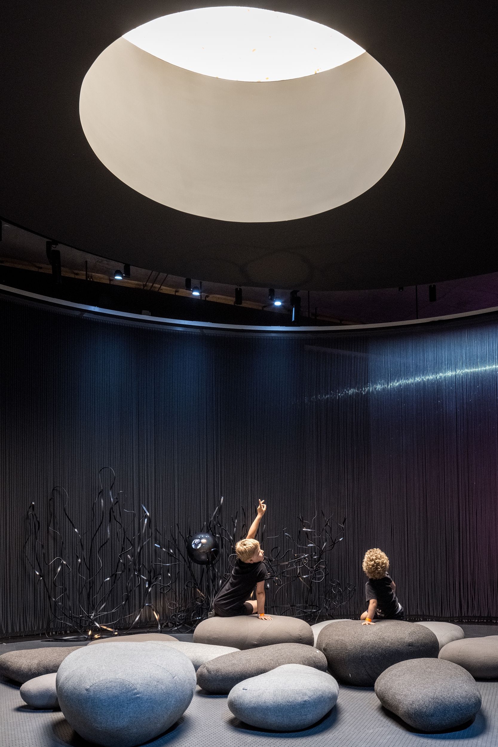 Our lightscape delivers mood lighting, theatrical & dynamic lighting, state of the art objects & graphic content lighting plus wayfinding lighting while expressing a connection with the garden exterior realm and stories interior realm. The systems toolkit designed for this is fully synchronised with the A/V.
