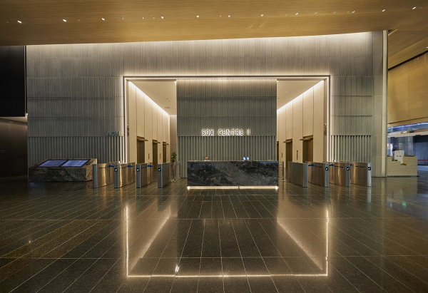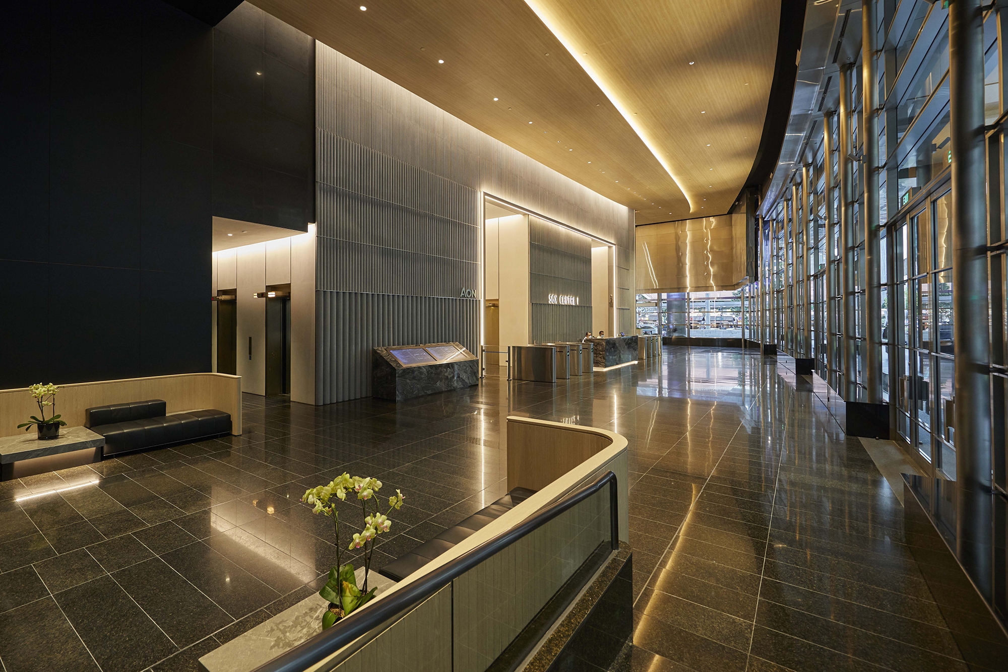 Entry DescriptionThe 2 lobbies of an existing building have undergone a makeover. The skyward-curving ceiling symbolise the client's ever upward ascent to the highest. The ceiling posed an interesting challenge for lighting design, as attention is given to graze the bamboo-inspired feature wall without being affected by the curvature of the ceiling. As the flooring is existing and also reflective, special attention for grazing to minimise the reflections, while trying to have as much a grazing as possible. Layering of light, such as portal lighting, to further enhance the wall and reflection.