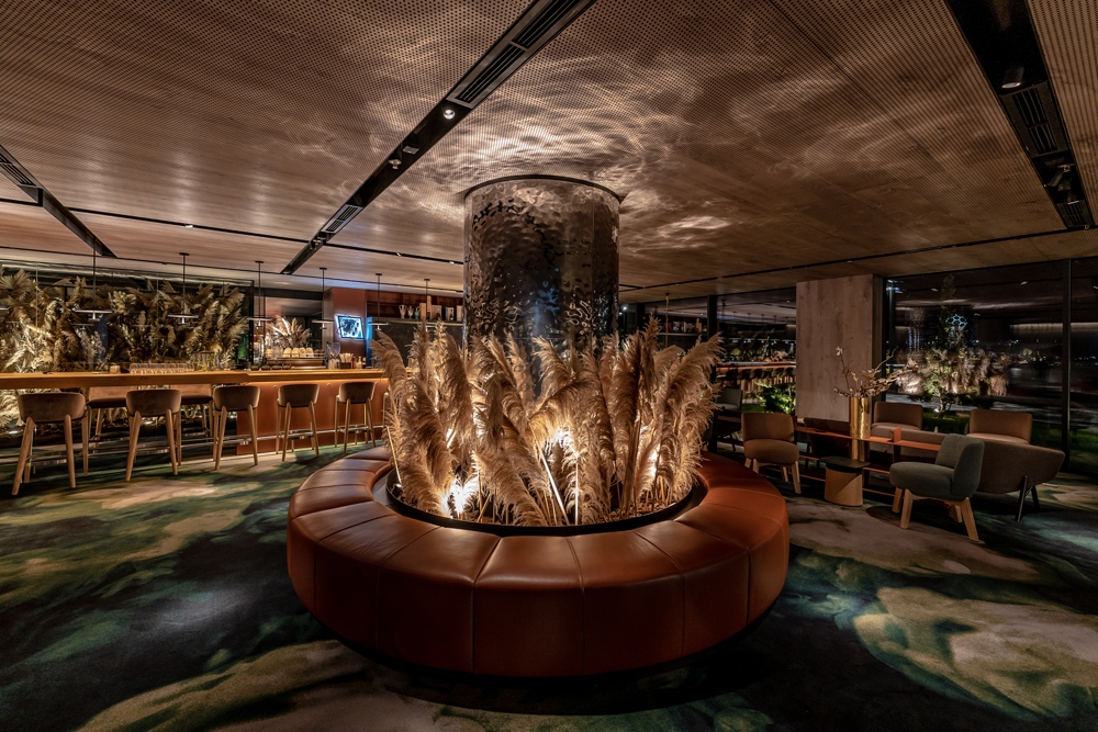 At the same time, delicate lighting settings were needed so that you do not list over other areas of the lobby interior, appropriately distribute the accents to a tree and create a comfortable light for guests that would not blind.