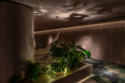 Entry DescriptionThe idea of a light concept was to create a shining tree in weightlessness and to cover the entire floor and walls with complex organic shadow patterns and additional reflections of the tree in partially glass vertical surfaces.