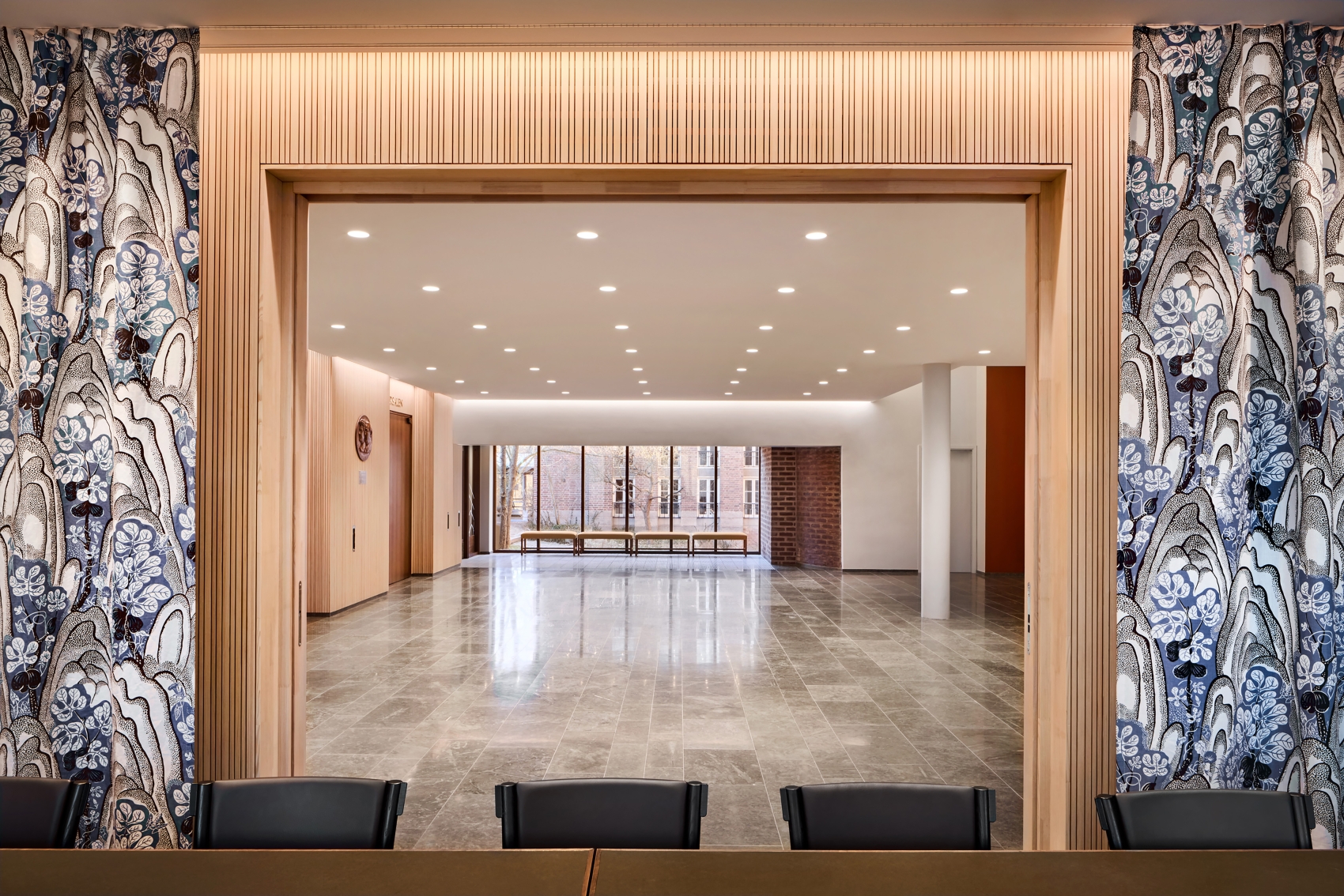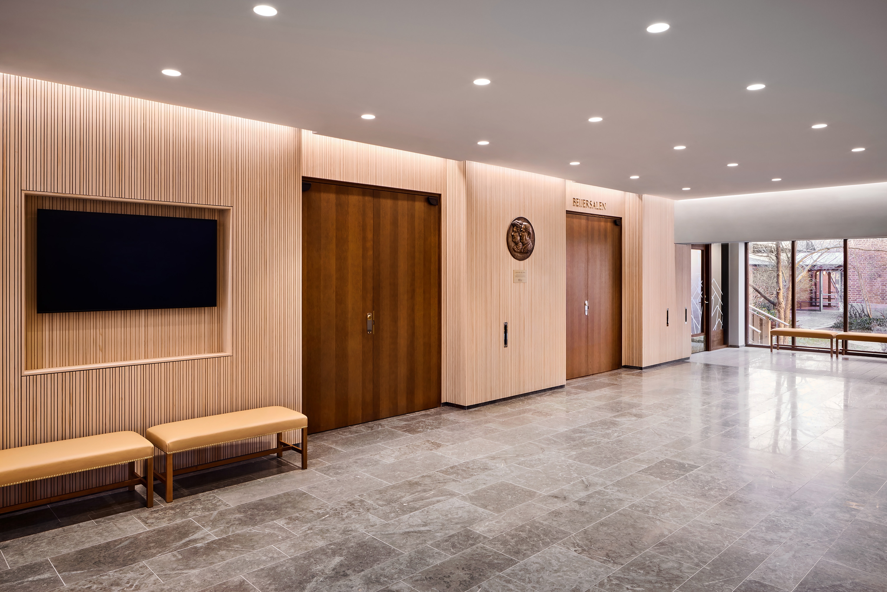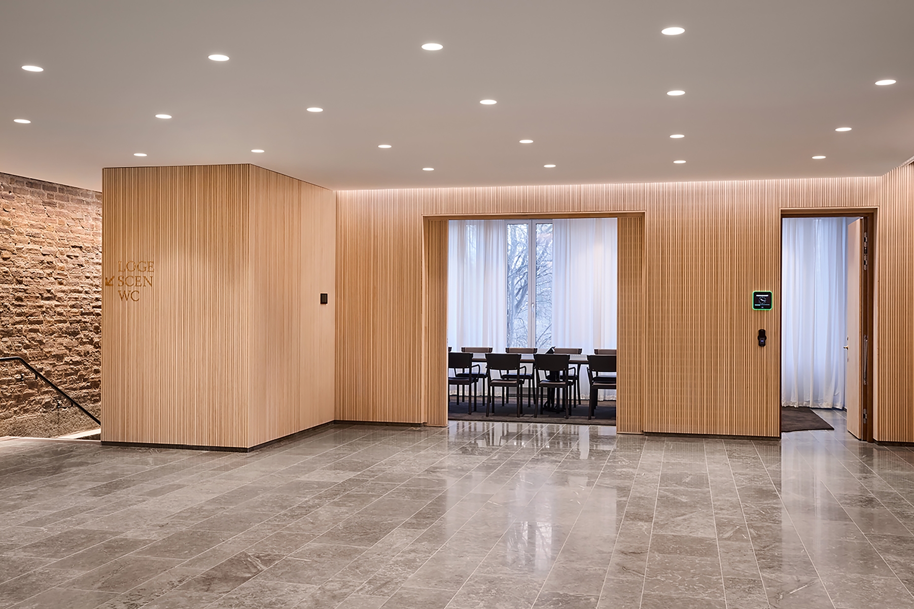 Entry DescriptionThe Swedish Royal Academy of Sciences, known for The Nobel Prizes in Physics and Chemistry, is located in a recently renovated heritage building. Illumination has been designed to achieve a high degree of visual comfort whilst enhancing spatial qualities. The Beijer Auditorium and lounge feature wooden wall panels with recessed lighting that create a peaceful and elegant setting. Lacking natural daylight, the Beijer Auditorium is defined by its new lighting scheme, programmed for different situations and needs. To shift attention from technical installations, the ceiling was designed as a new layer with bespoke pendant luminaires with brass mesh giving a soft glow to the auditorium. Besides the pendant luminaires, the auditorium is illuminated by vertical lighting along the outer walls and concealed, linear downlight fixtures in the ceiling as well as stairway illumination. A smaller and more intimate space can be created by extinguishing the wall washers. Illumination works dynamically adapting to the varying functions. The result is a thoughtful composition of general, ambient and accent lighting, creating atmosphere and well-being that can be sensed by all.