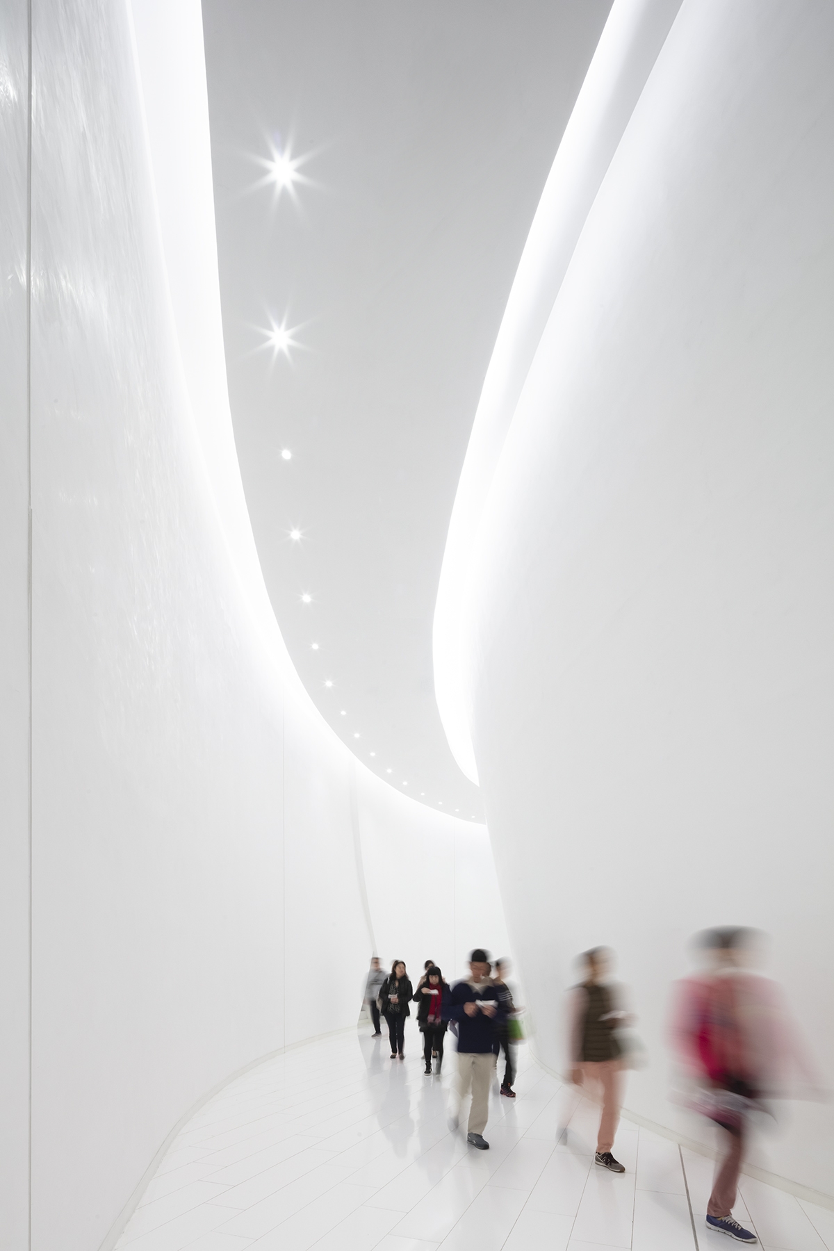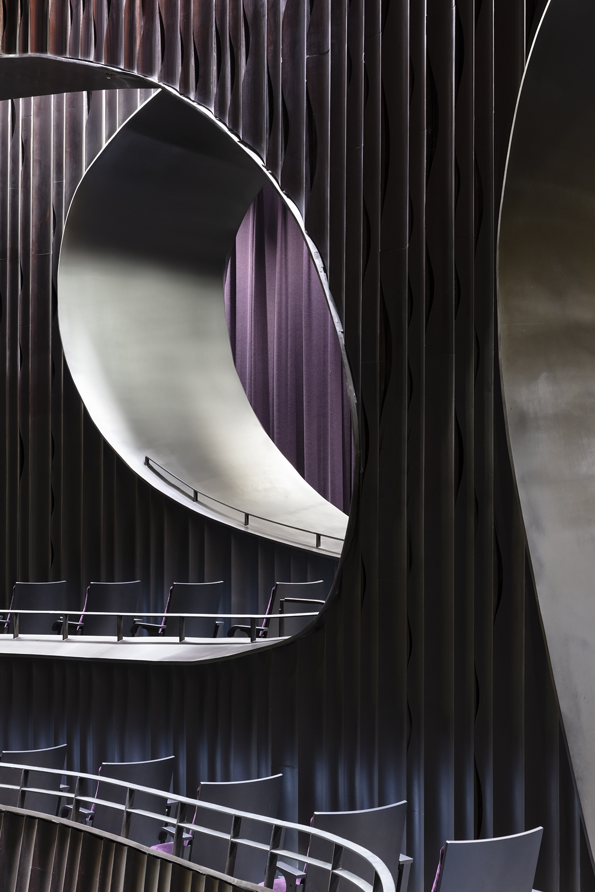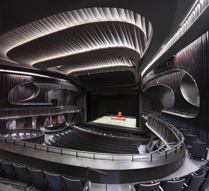 Layers of light are used to reinforce the flow of “Qi” energy and enhance the juxtaposition of richly textured architectural materials with architectural transparencies and pristine white sculptural forms to heighten the experience of motion and discovery. Flexible performance lighting, hidden tree grow lighting and monsoon-resistant fixtures were required in the open-air interior plaza. The project was one of the first to achieve the new Hong Kong Green Building Council’s BEAM Plus Gold rating, due in part to subtle façade downlighting that limits light pollution and allows the Xiqu Centre to sit proudly on the waterfront as a symbol of both the past and future of creative express
