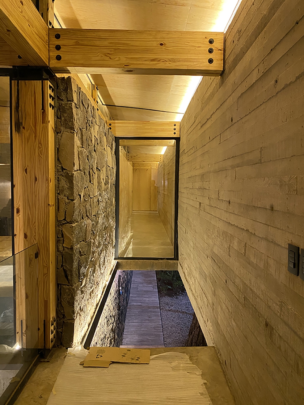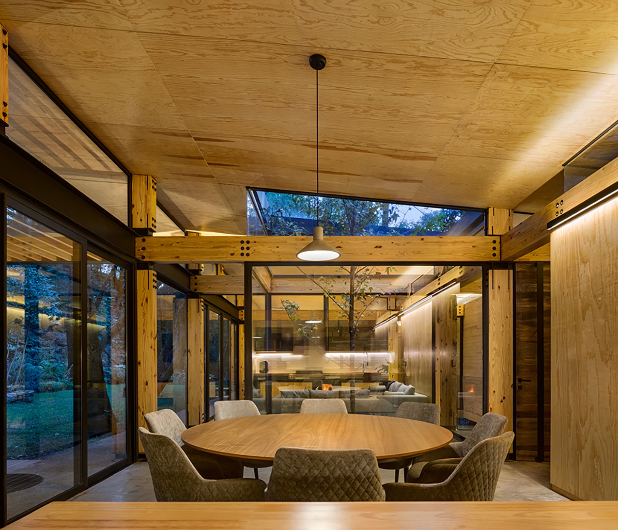 Entry DescriptionCasa el Pinar is a small house in the middle of the woods located in the State of Mexico in a very well known place for people who live in the city and like to spend time in the nature. Because of its location the architects wanted to integrate sustainable strategies such as designing the structure with wood, rain water harvesting, waste water treatment, landscape design using local plants and flowers, and contacted us for lighting design. in my firm we are very worried about our impact on wild life because of what we do and also the impact we generate to dark skies, so accordingly to the site we concentrated on this two factors to start our proposal. First of all we decided not to light the exterior areas but only the house so we don't disturb nocturnal animals or the ones sleeping at night. For the interiors we decided to use only 2700K and 90% indirect lighting to avoid glare for animals and also confort in all the areas of the house for the final client. For this project we designed 95 percent of the lighting fixtures, we love lighting to be integrated with architecture so we always try to design objects to integrate different lighting sources and make them fit perfectly with architecture so the lighting objects do not look like accesories but as a whole together with architecture.
