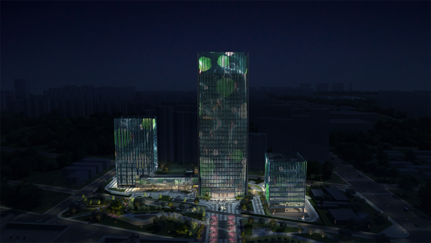The lighting effect is managed by an intelligent control system, which enables individual control of the luminous surface on the building facades. Each luminous surface control unit is decided according to which facade it is on and the height difference. Luminous surfaces close to the residential area nearby are optimized with gray scale control, in order to achieve a soft lighting effect by controlling the luminous flux. All lamps are combined with a shade to prevent the light source from emitting light directly and mitigate the glare.