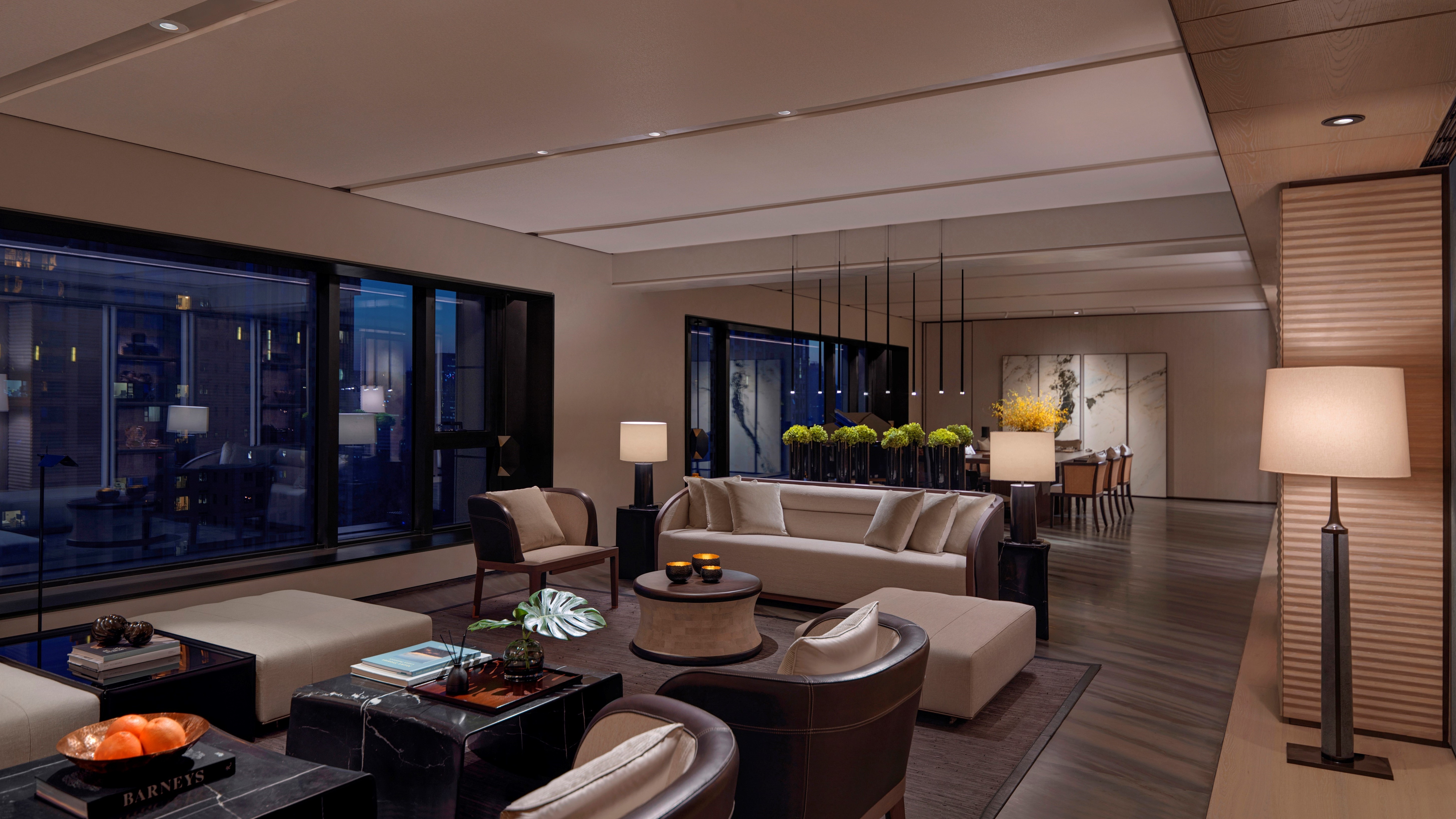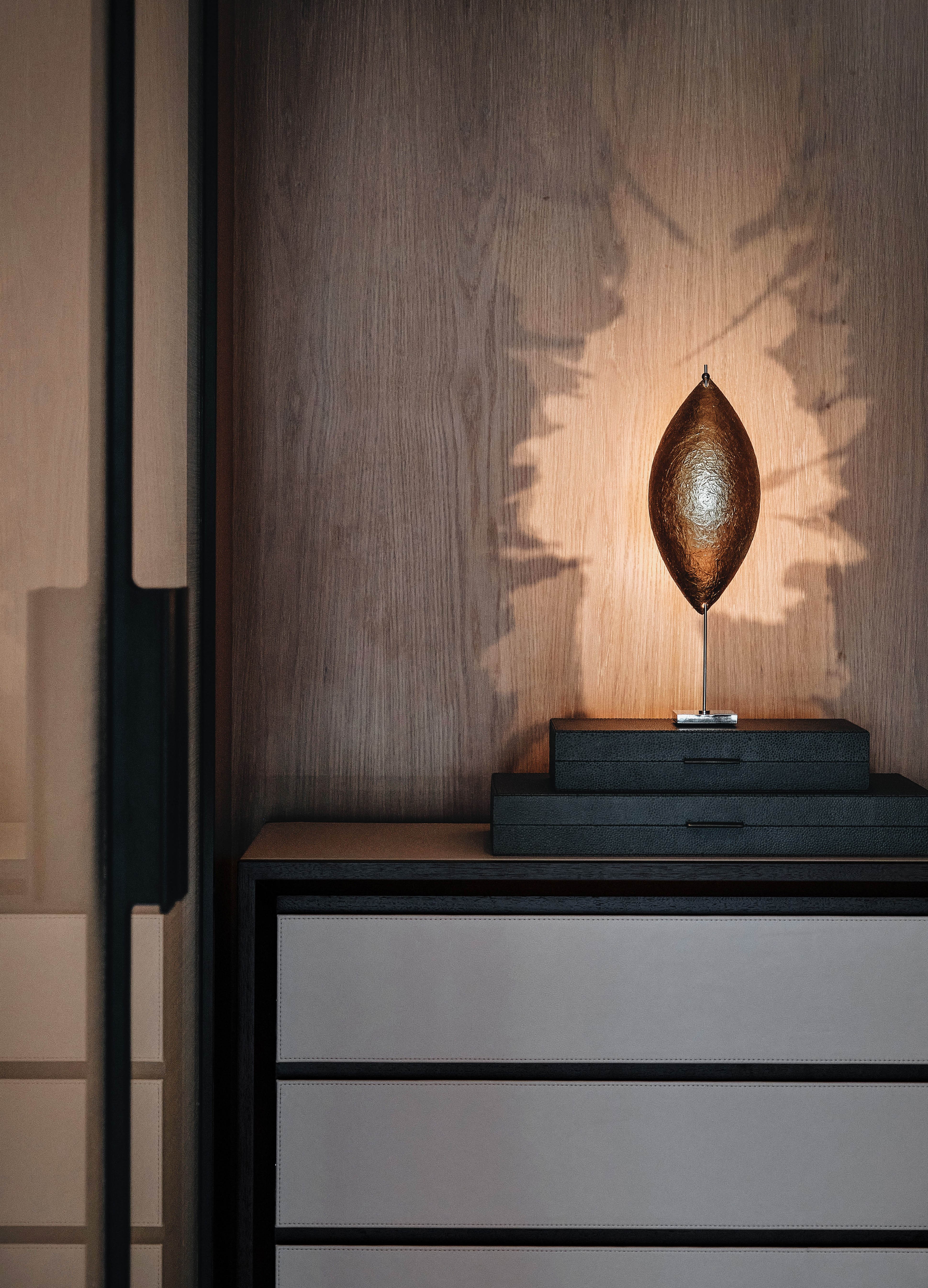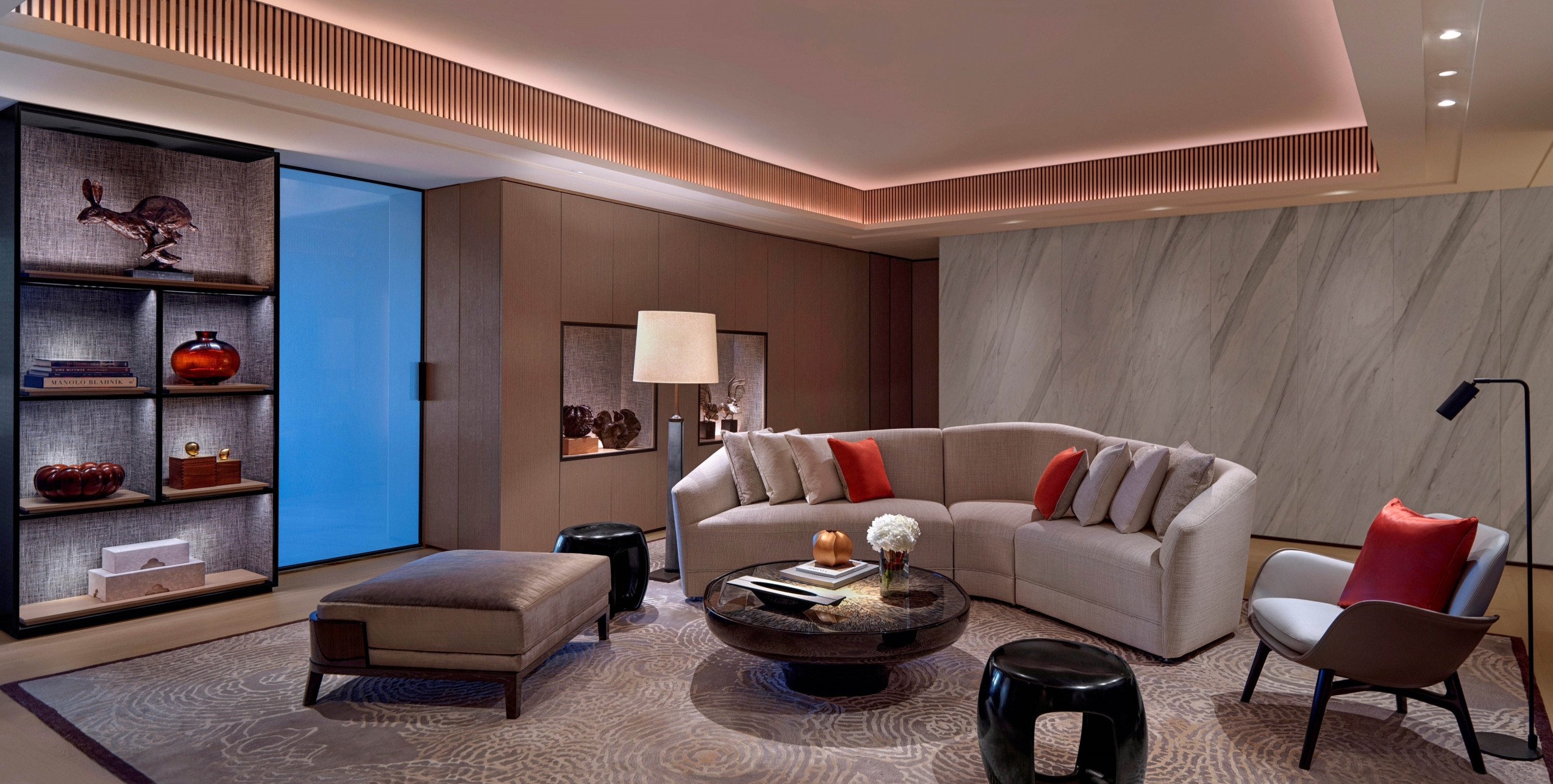 Entry DescriptionLighting design is to search for simple elegance and emphasis on the design content, quality, and sense of space. Lighting mood is set to be soft, warm, calm, relaxing, welcoming, and the lighting levels are in balance with luxury hotel experience. Instead of using fancy and loud lighting elements, we use a “simple but tightly integrated” lighting strategy that makes the overall design elements in harmony with the space. We want to make the space as natural as possible, not over-designed. Lighting for the artworks is carefully planned, not to challenge the interior element. Millworks lighting is tightly integrated with a composition of front-lit or back-lit. The decorative lights are carefully selected to create surprises in the space meanwhile match the design theme. In the wardrobe, the mirror image of the pendant naturally extends the space, creating a simple surprise. The project use low-frequency LED lights and control technology utilized at an intuitive level with scenes set in a smooth transition. Human-centric lighting approach is considered to ensure the occupant's wellbeing. At night, the color temperature is dimmed to a very warm, creating a cozy and relaxing atmosphere.
