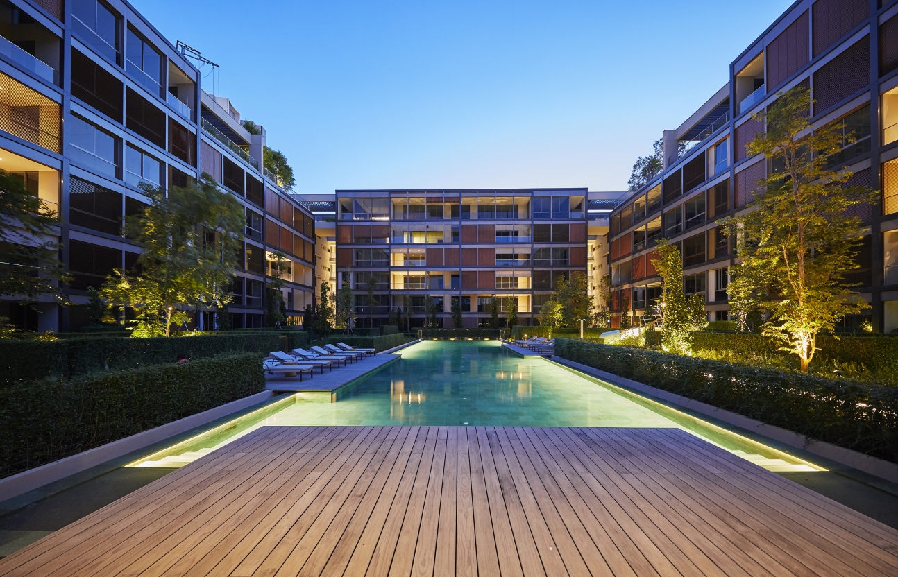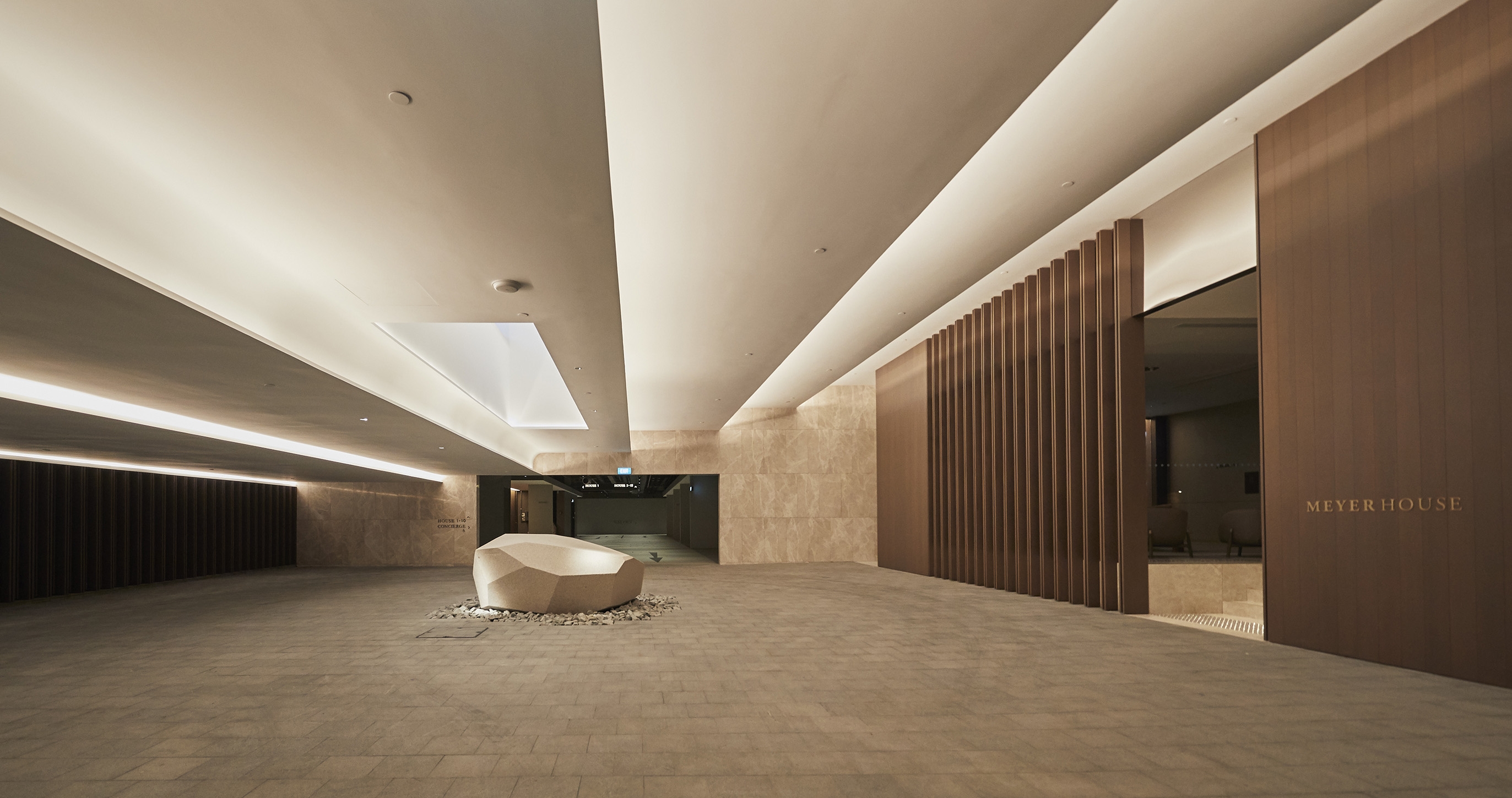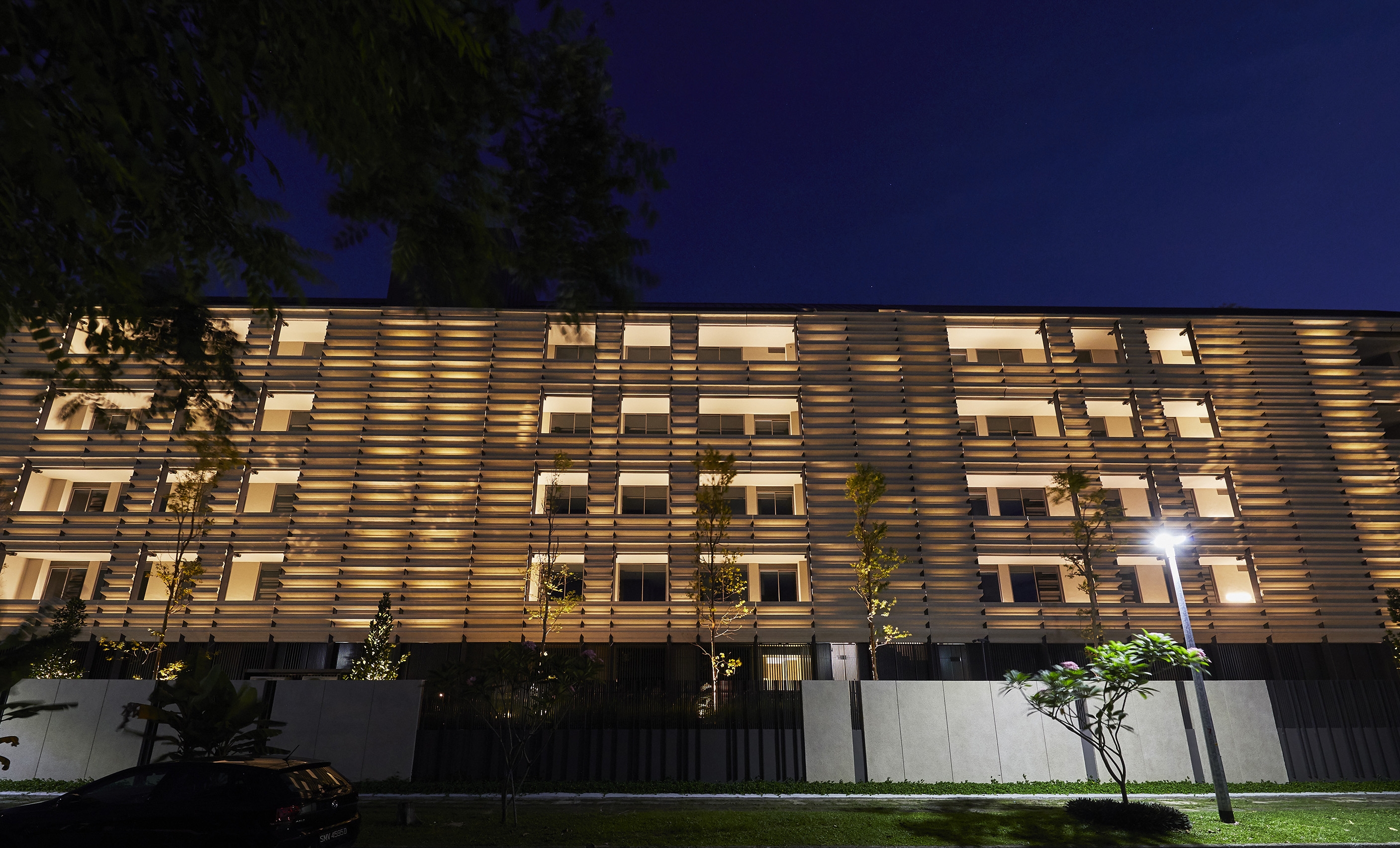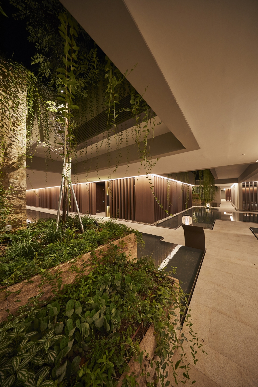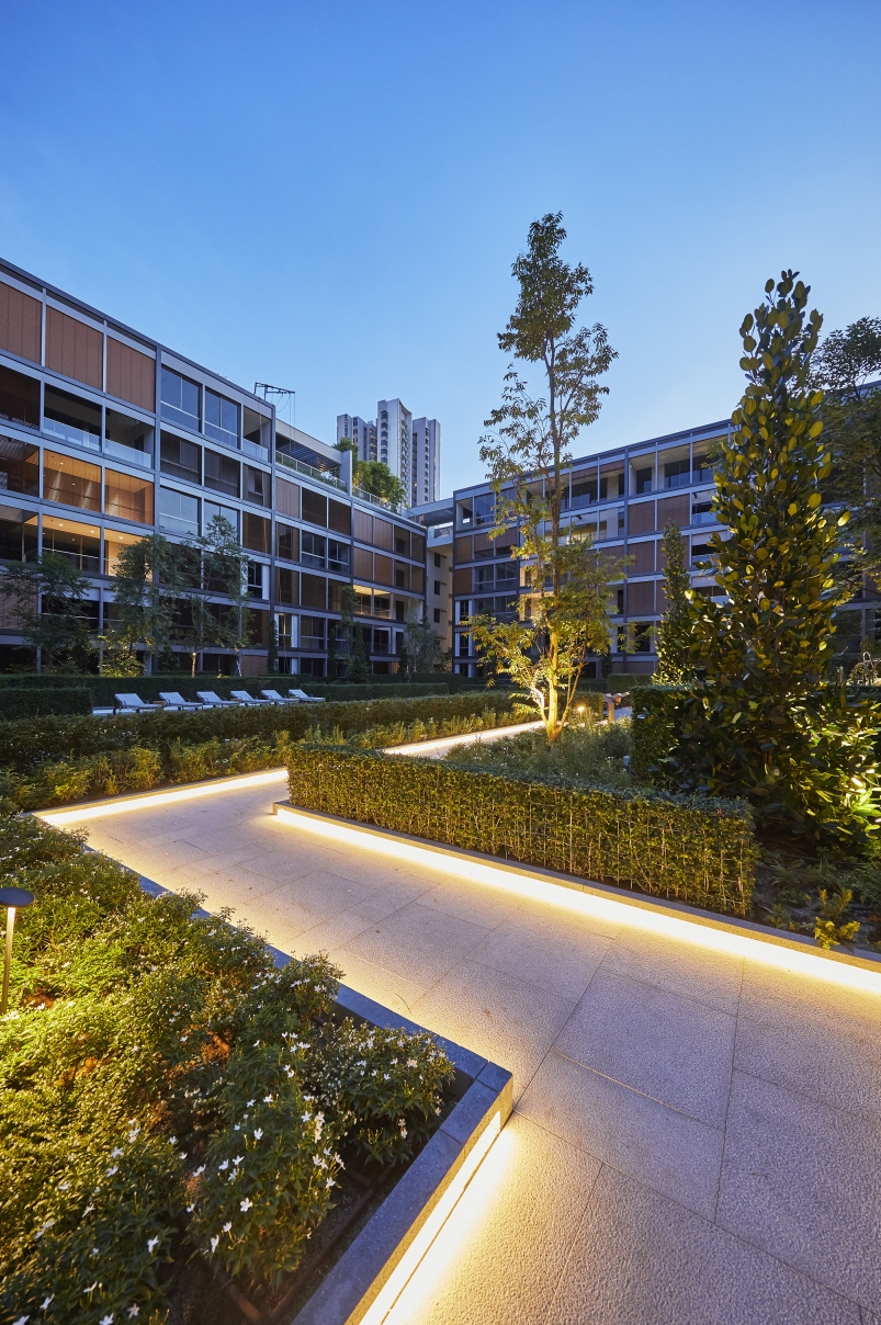 Entry DescriptionMeyer house is a luxury clustered housing and its composition for luxury living gives every residence views of the lush internal gardens that spill out onto an adjacent park and cascade down to a lower water courtyard where a refreshing arrival experience unfolds. The landscape design recalls the charming gardens and rolling hills of the English countryside. The challenges for lighting design includes illuminating the facade panels, through the used of diffused indirect lighting, to give as much as possible a gentle glow. The facade panels are in front of a least 6 different conditions and spacing, such as in front of balconies, aircon maintenance ledge spaces, walls of lift core, behind escape staircase core. Landscape lighting also highlights the lush landscape and integration of kerb lighting. Basement lighting includes the drop-off, the corridors and basement entrances to units where the major elements include various coves, lanterns and leaving few downlights just for accentuation, keeping the vertical illumination as an element of wayfinding.