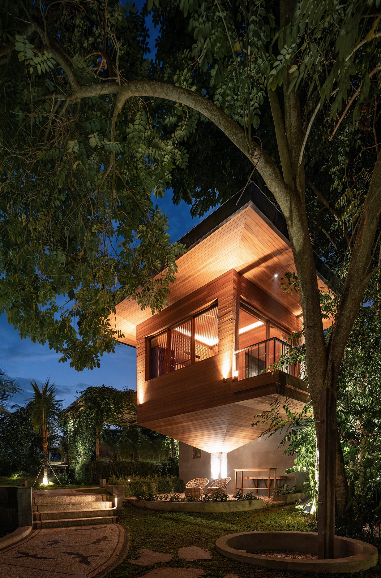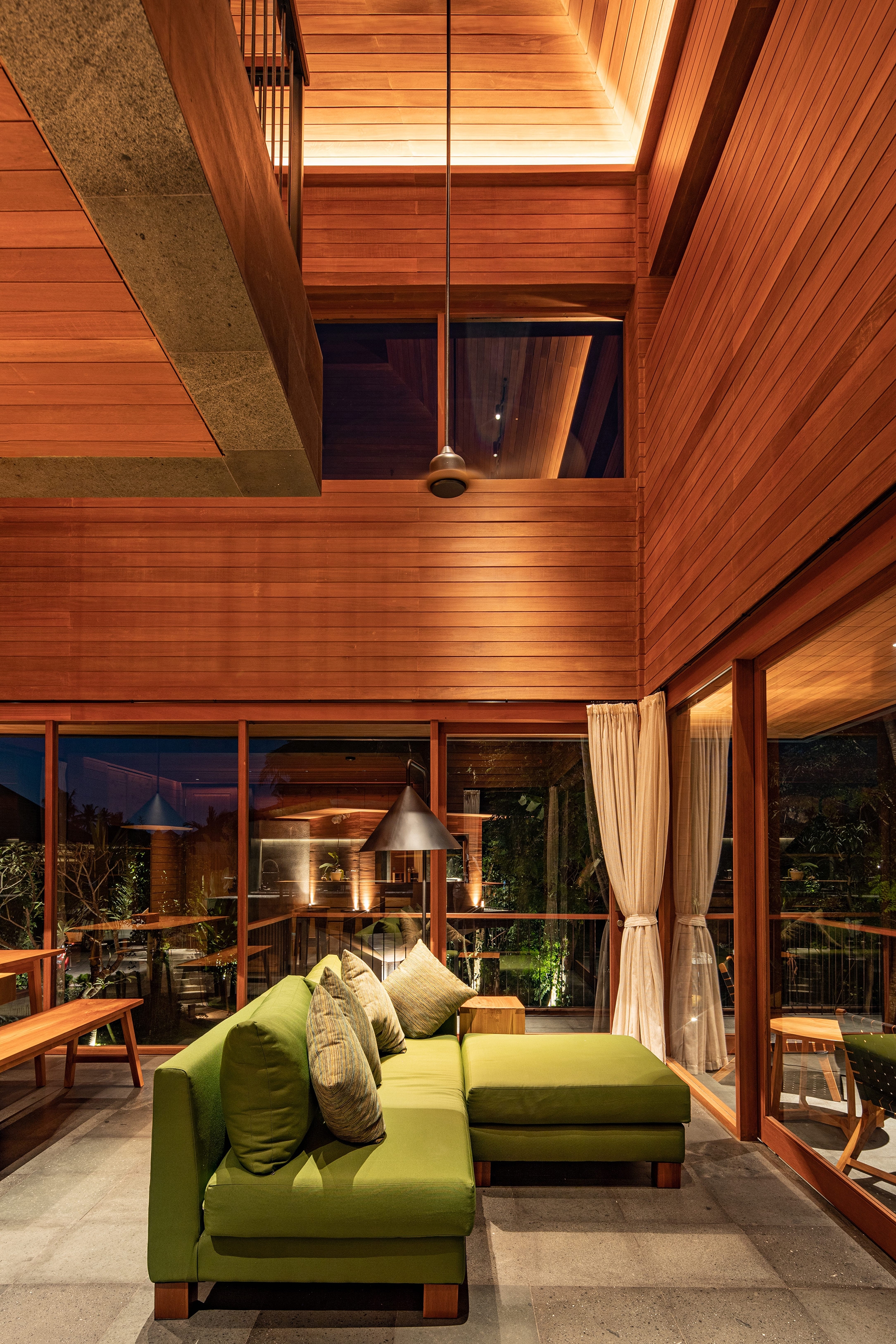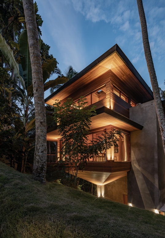 Entry DescriptionThe focus for the facade treatment for the lighting was to draw out the rich wood colour and contrast it with the deep green surroundings, our vision was to unground the objects to give a 'floating' impression of the architecture within a tropical setting. The interior follows suit drawing out the wood focus key lighting using minimal fixtures and create a warm beacon to follow through the depths of the jungle.