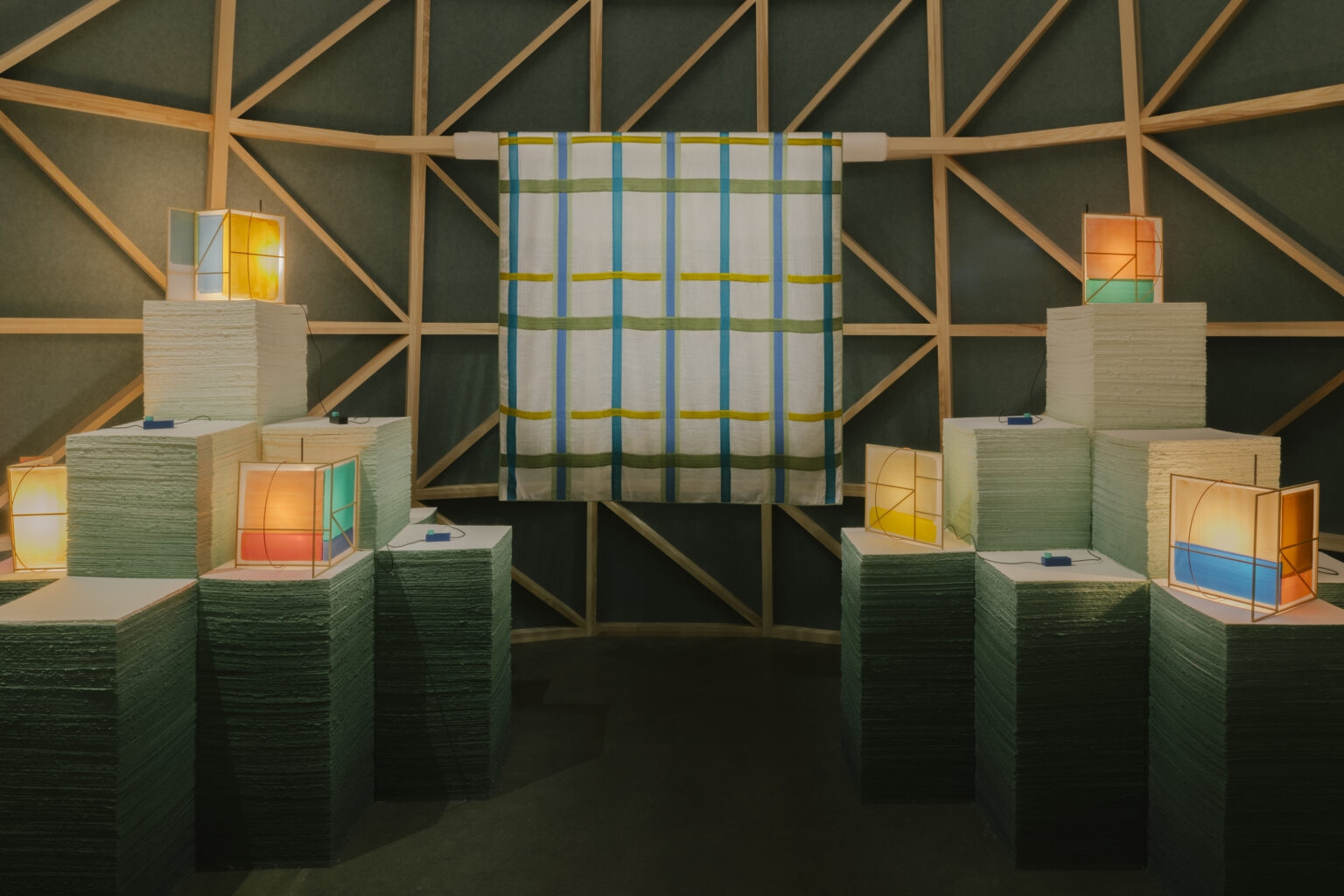 Entry DescriptionThe quest for lightness, like a challenge to gravity, is incarnated by the creation of objects for the home, showcased in four structures at Milan Design Week 2022. These constructions, in the shape of water towers, are light despite their monumental proportions; made of wood and covered with translucent coloured paper, they radiate light. Inside, each object expresses know-how that draws power from precision.