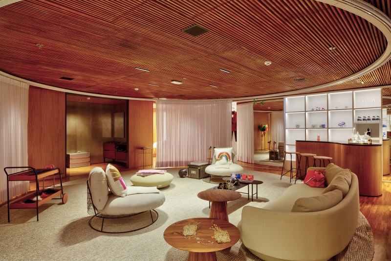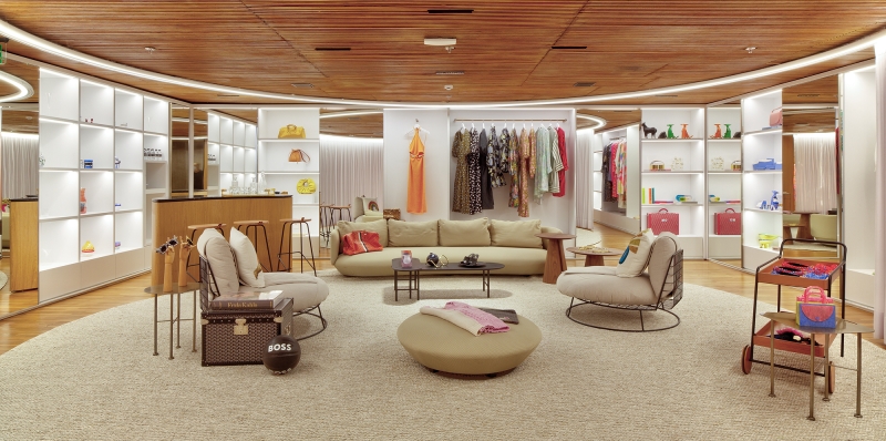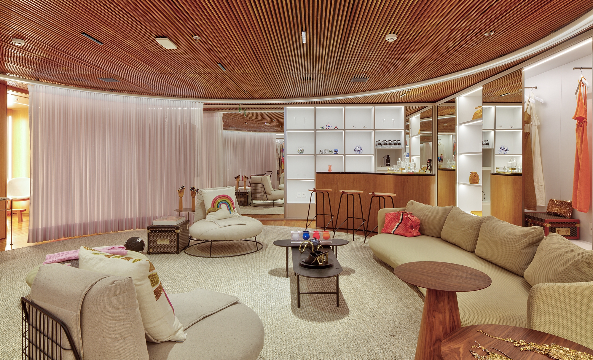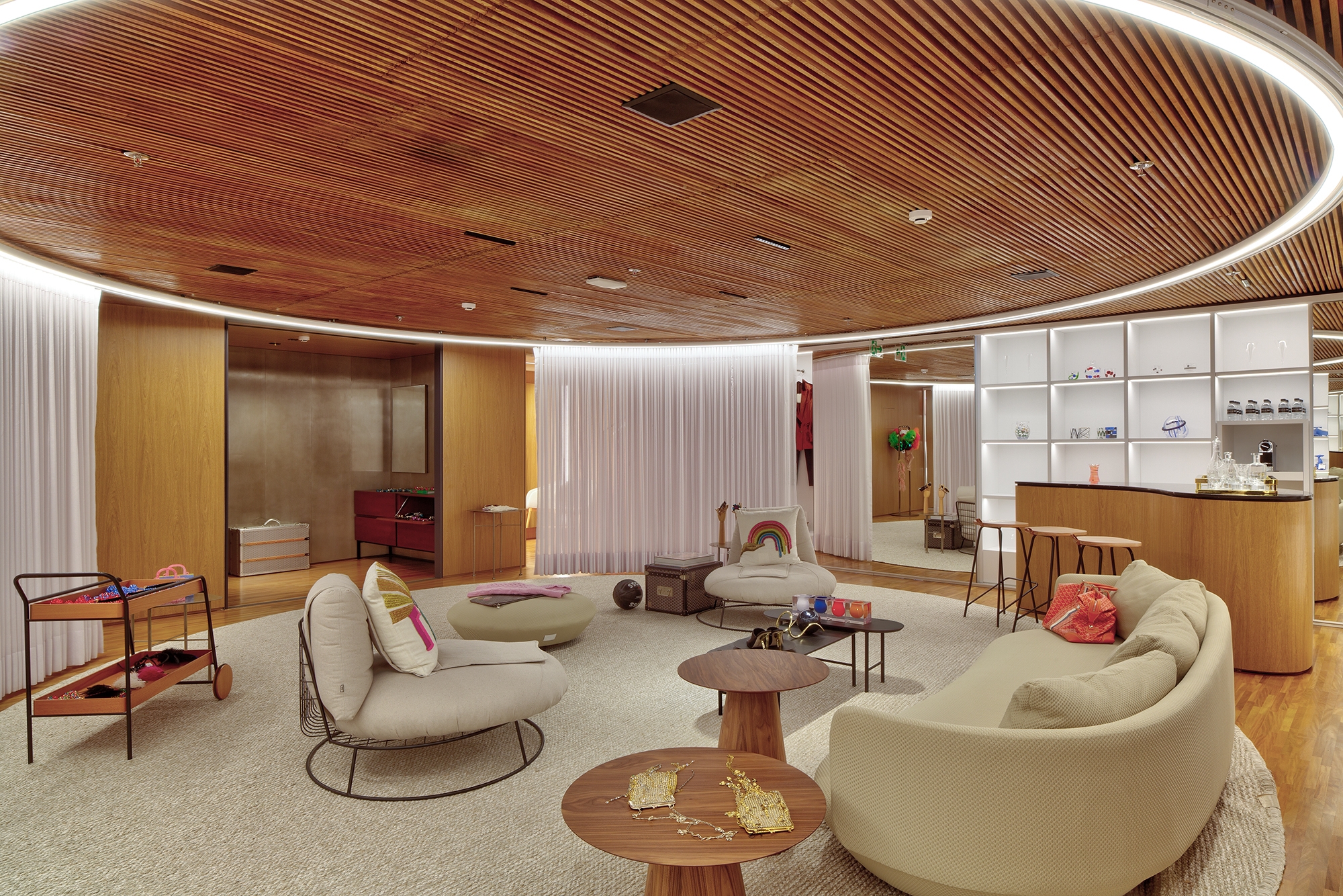 The Fashion Therapy Room, in turn, offers an even more customized and exclusive service. At the central space, the round light fixture encloses and circumscribes the environment in connection with the architectural design. The project allows the creation of different lighting scenes that can be activated according to the experience provided to each client: from a welcome tea to a private fashion show. The fitting-rooms can emulate the light of different times of the day—morning, afternoon, evening. All this experience in an indoor environment.