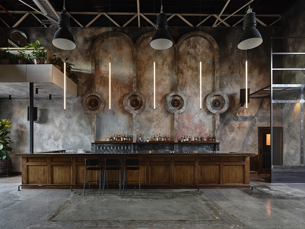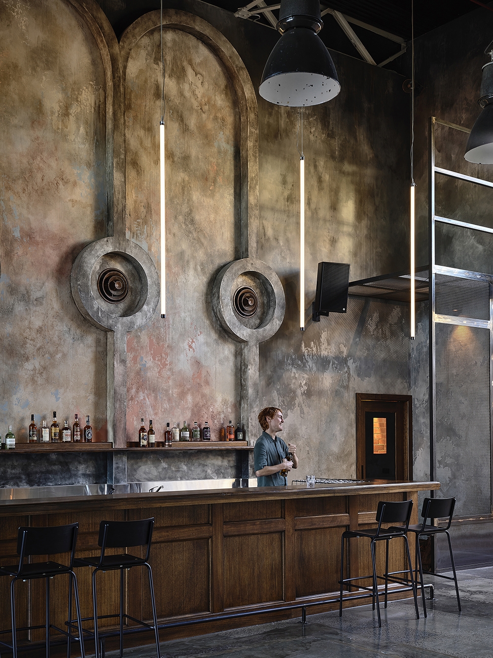 Our approach utilised and maximised the natural light of the factory. We tailored and engineered all fittings with optimised filters that replicated the natural colours & tones of a sunset – a massive but ultimately rewarding undertaking. In a commitment to sustainability & the concept, the team also took the extraordinary step of repurposing & refurbishing abandoned fixtures from the original factory.