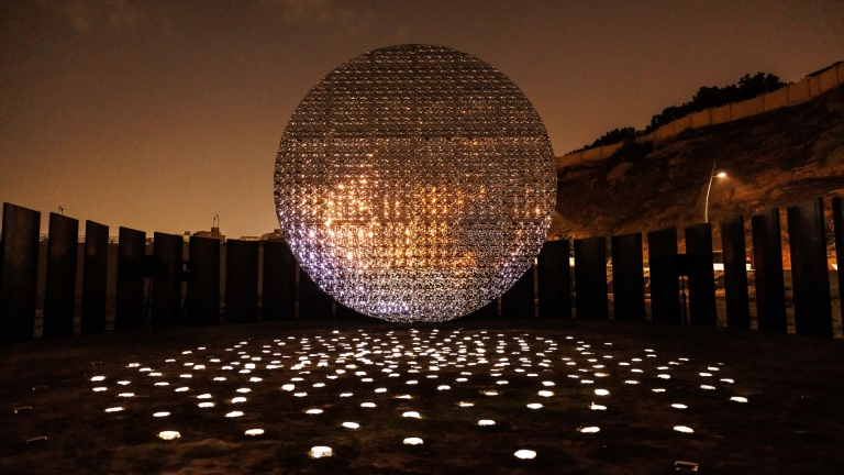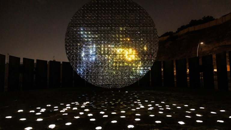 Pavilion of Moonlight Horizon is the embodiment and story of the passing of time, the tides and our circadian clock. It is a poetic, romantic, artistic, scientific and magical experience that takes visitors on a journey of discovery as the sun is sometimes eclipsed behind the Earth, and at other times shines bright as day as the projection follows the phases of the moon at the rhythm of the tides, the wind and the passing of time."