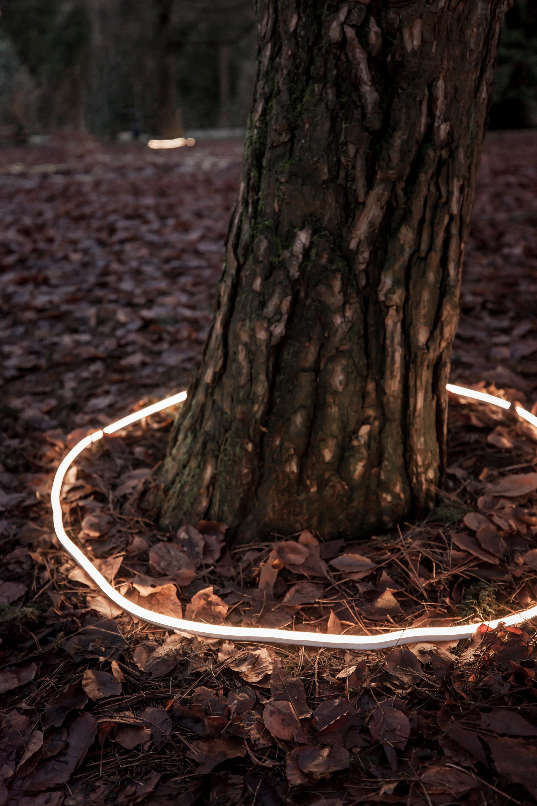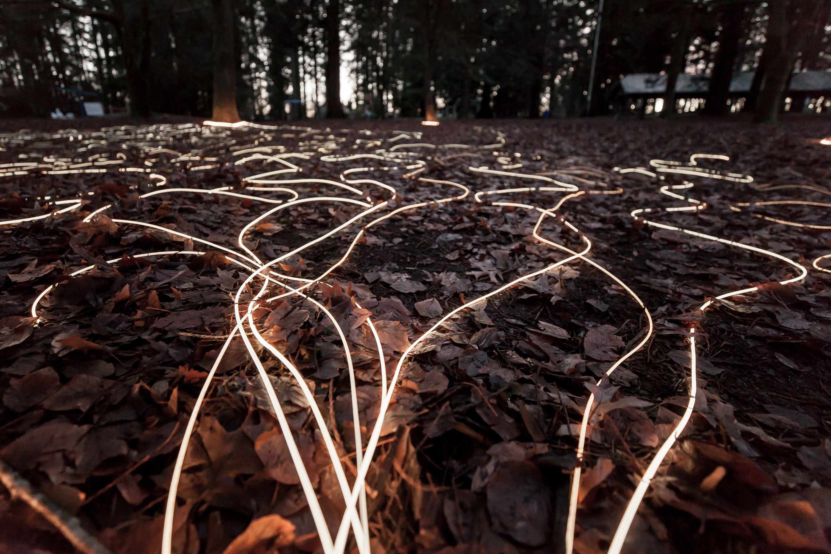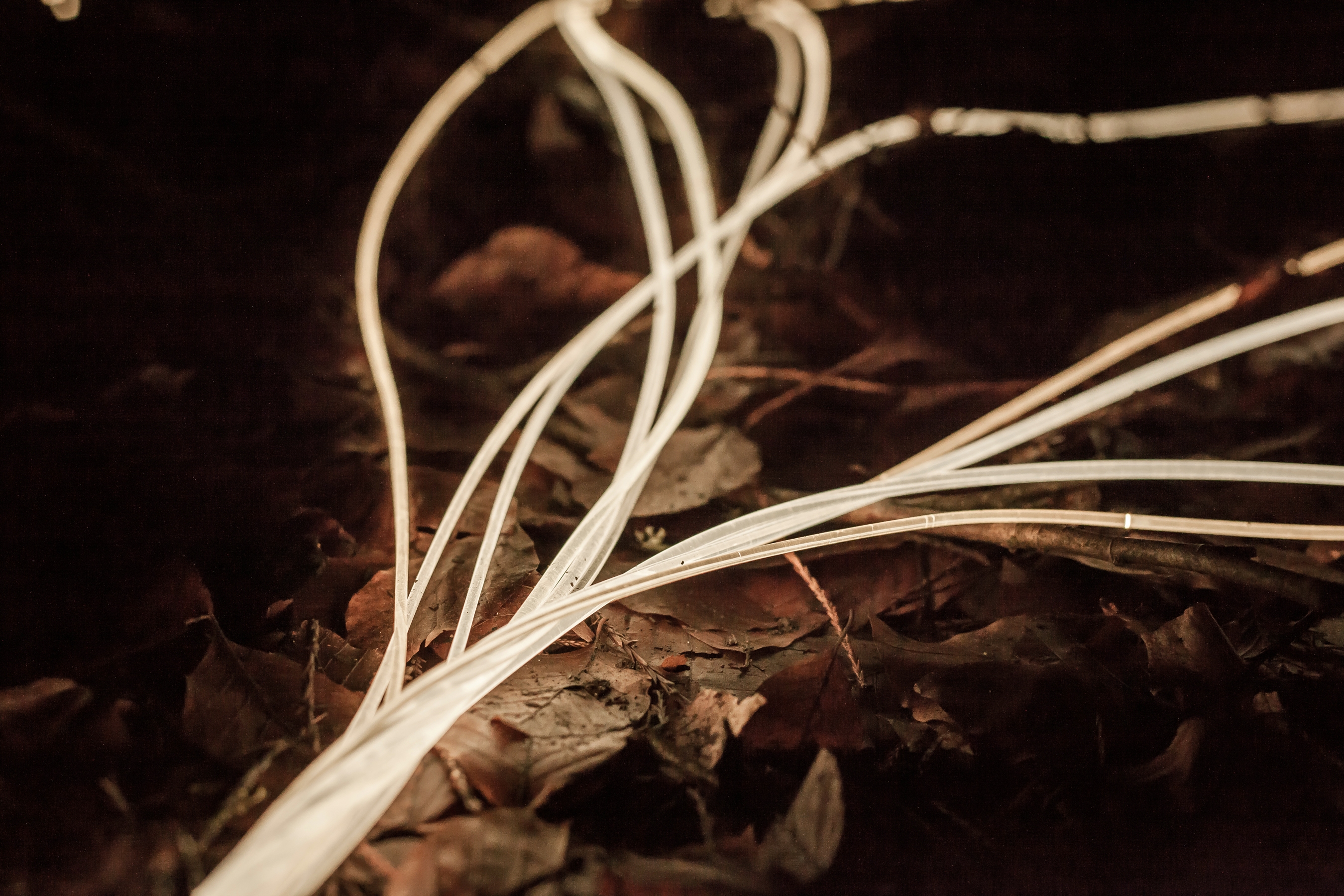 Inspired by forest mycorrhizae, Familial is an art installation that uses light to make visible the connections that go unseen. This site-specific artwork incorporates protected trees in New Westminster’s Queen’s Park, including a giant redwood (Sequoiadendron giganteum) and several European beech trees (Fagus sylvatica) that commonly form mutualistic relationships with mycorrhizal fungi. Through this underground fungal-root network, a community of thriving individuals is created.