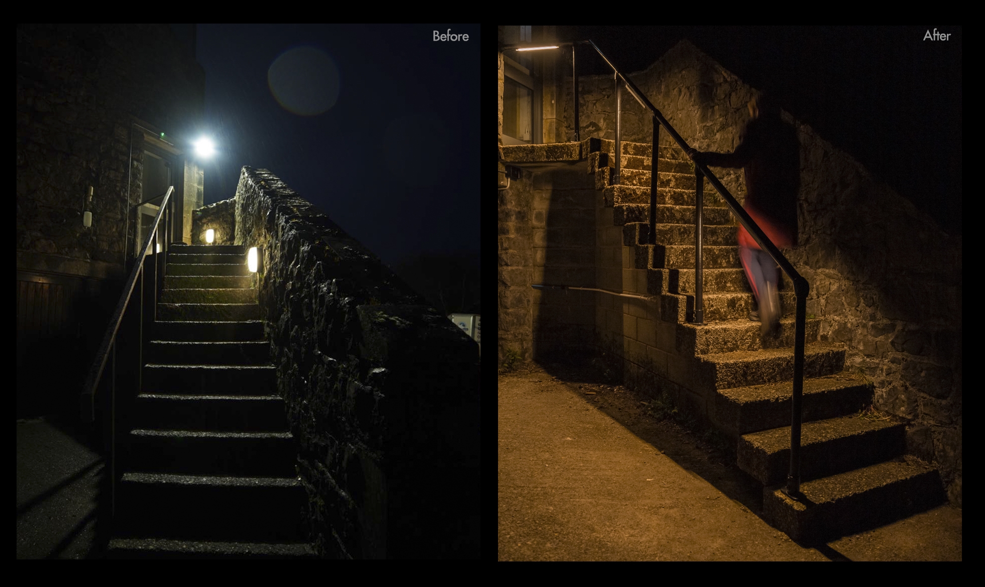 The lighting design was developed in order to restore the dark skies and tackle the growing concern for the region known as a Dark Sky Reserve since 2015. The project was conceived with an environmental ethos, aiming to reduce energy waste & impact on biodiversity whilst exploring further opportunities to enhance the night-time experience. Warm-coloured, glare-free, low-intensity lighting was utilised in order to meet dark sky-friendly measures, along with high energy efficiency & lamp-life criteria to maximise the savings.