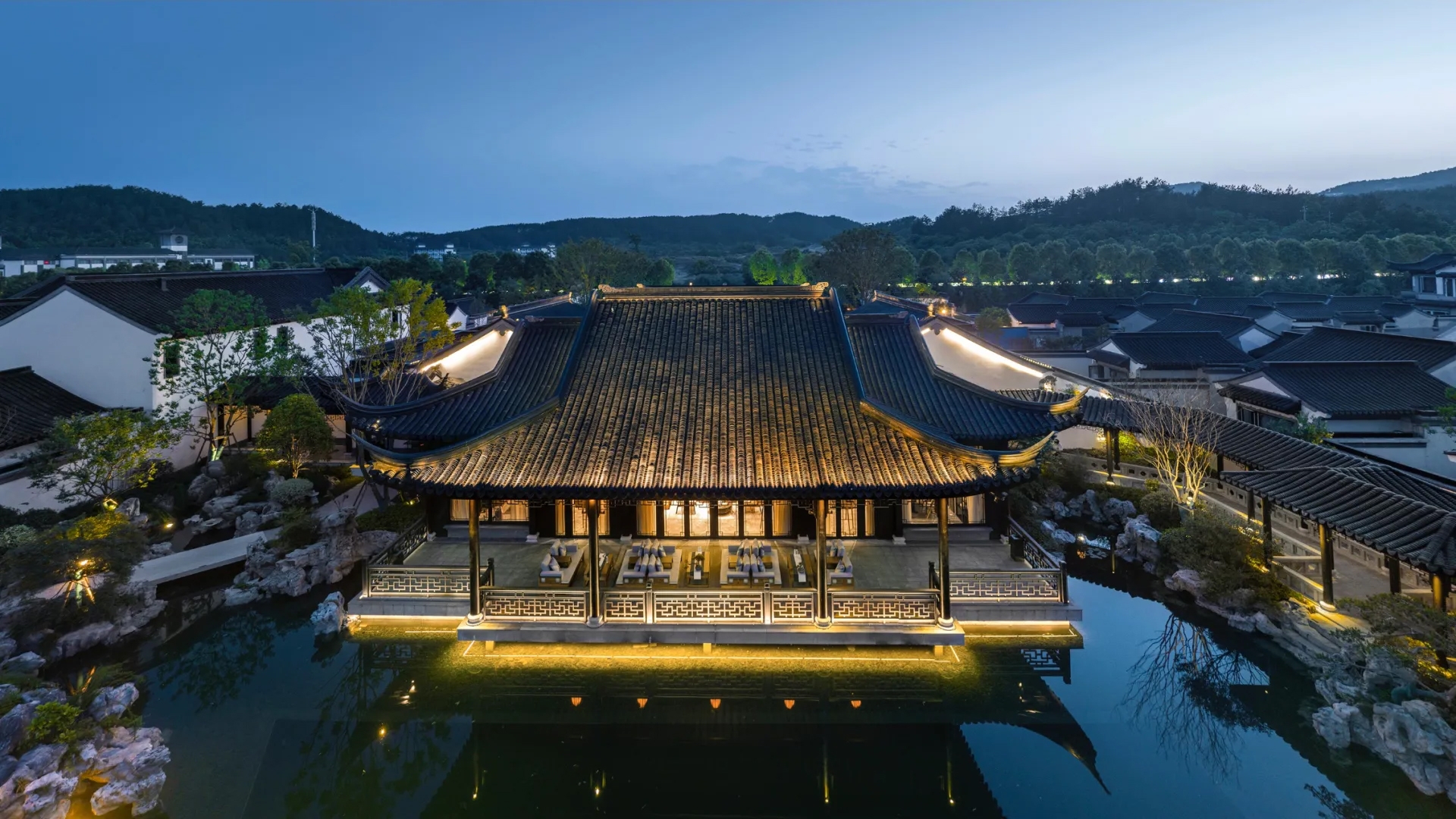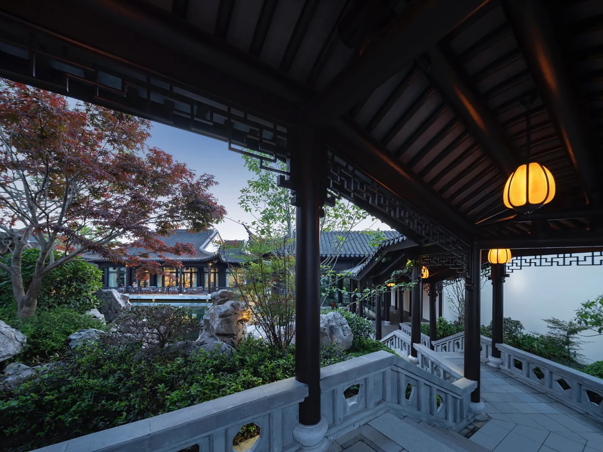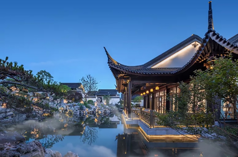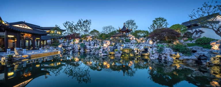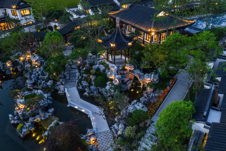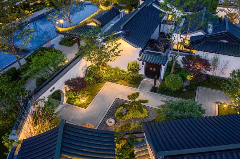 The lighting is rooted in the design concept of "traditional and modern", with the design theme of "landscape painting, poetic dwelling", and adopts the method of moving and changing scenery in Jiangnan garden landscaping to continuously switch the scenes derived from people's action and perception. Through the techniques of "borrowing scenery", "framed scenery" and "opposite scenery", the pavilions, the white walls, the black tiles, the flowers, the grass, the trees, and the lights are ingeniously integrated. Between the virtual and the real, there is both the momentum of the landscape and the exquisiteness of the picture scroll. It is a painting viewing from a distance and a poetry living nearby