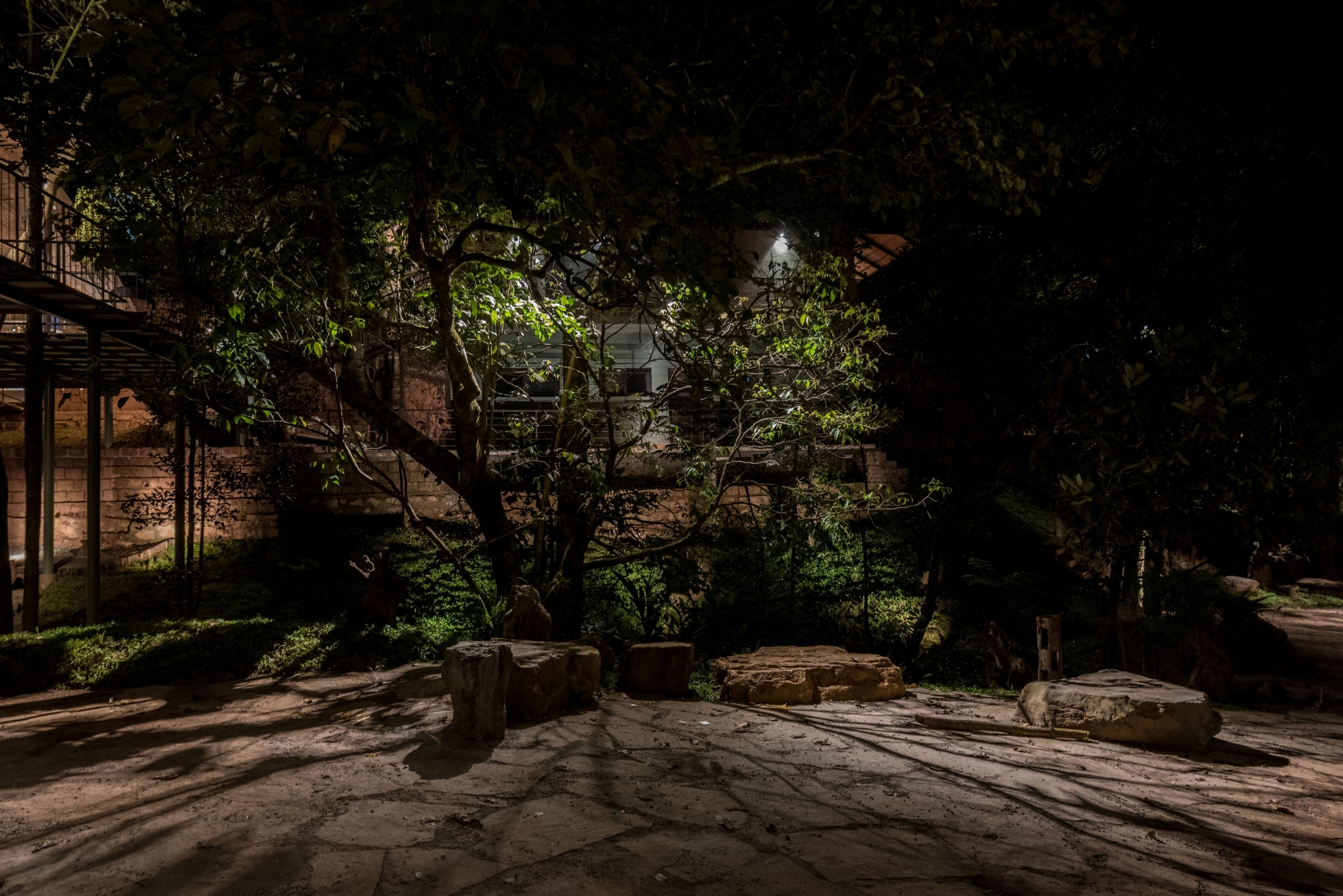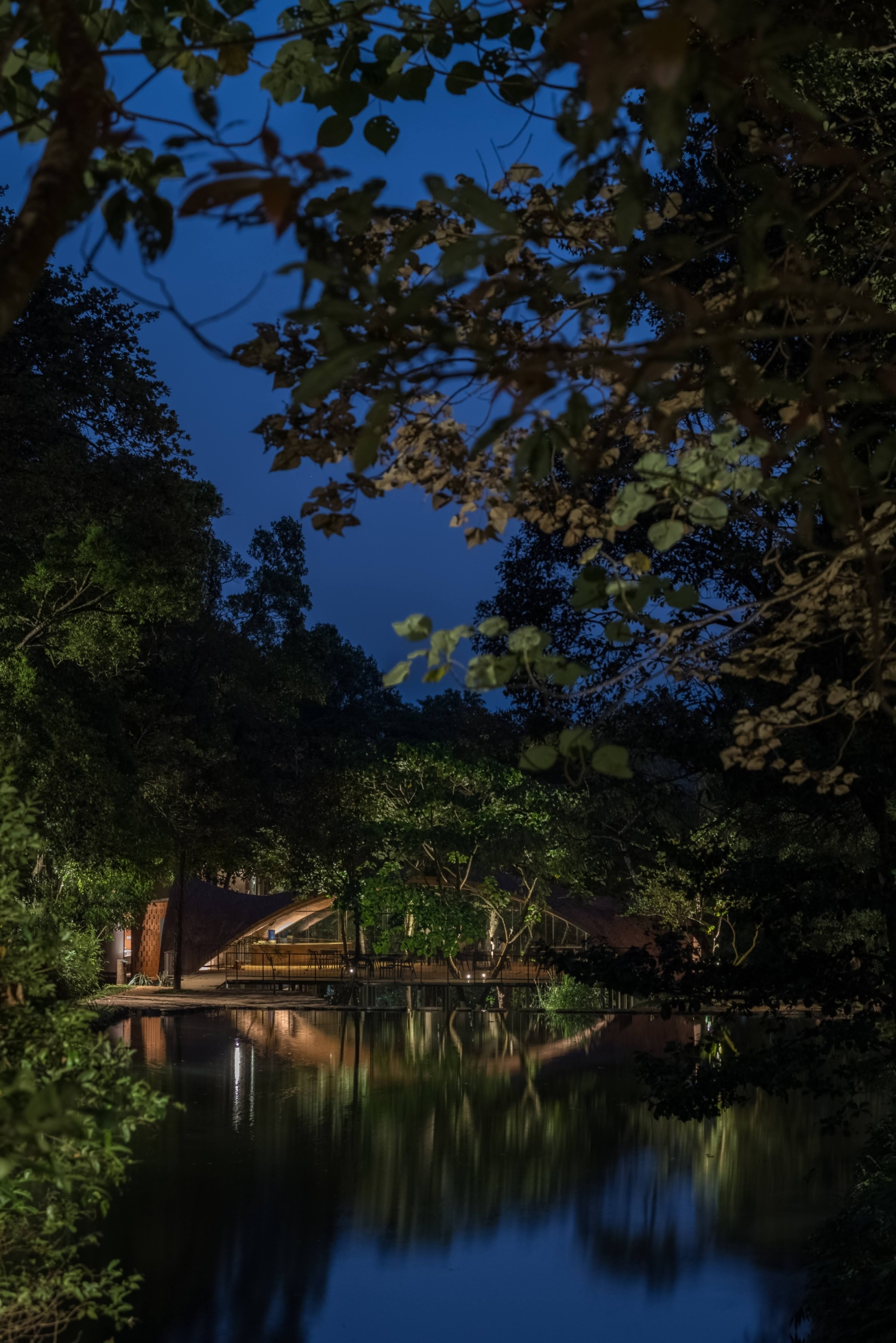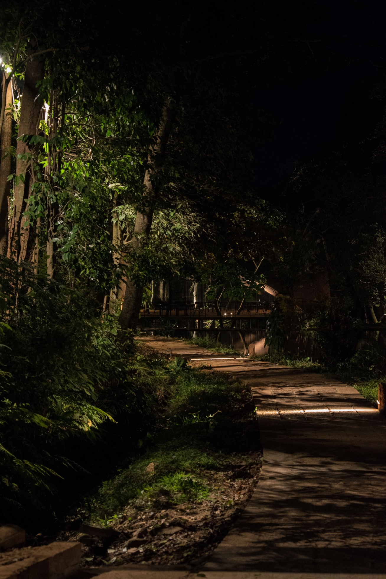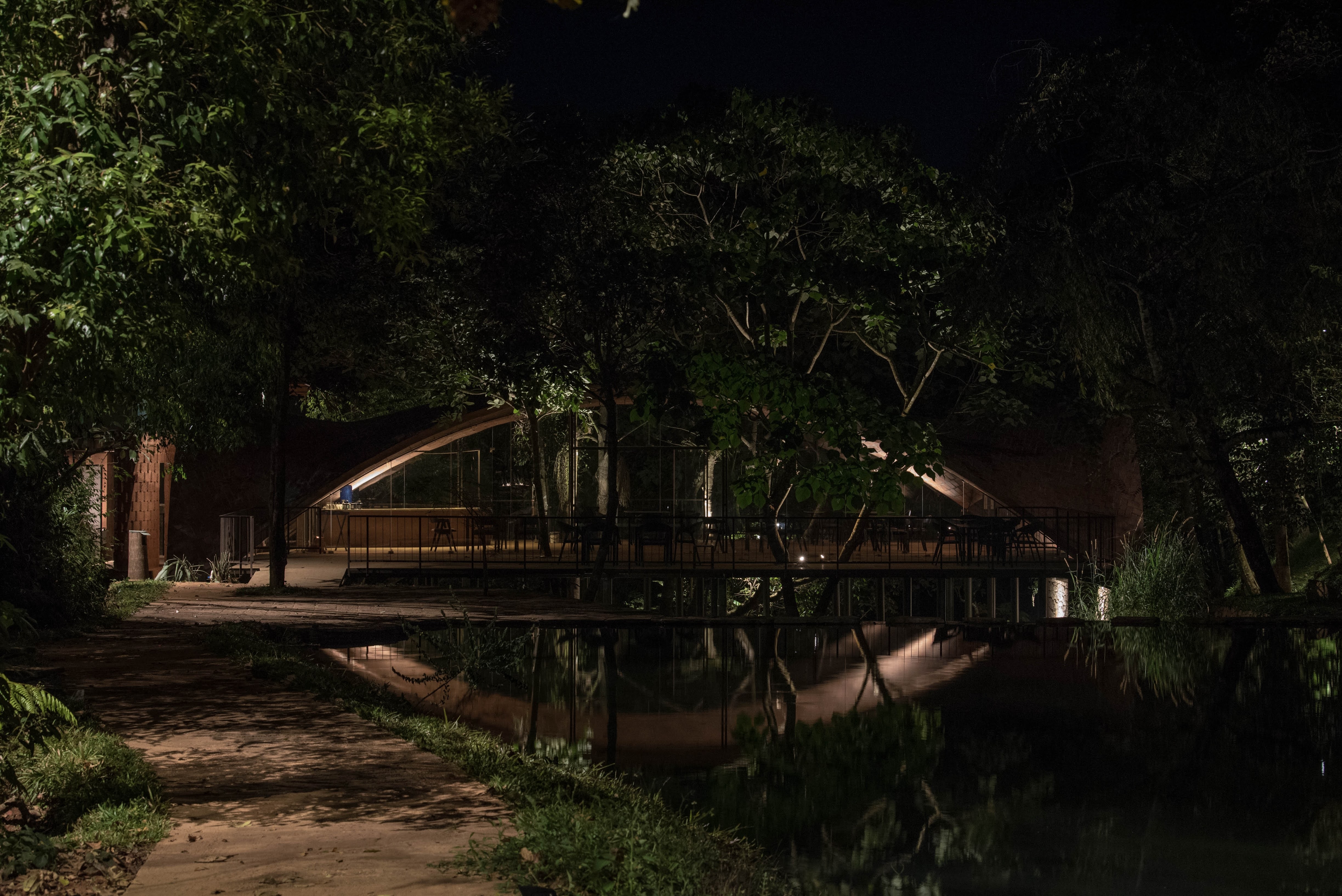 Entry DescriptionDeva Dhare is a resort, situated within thick forest, has a beautiful lake, streams and water fall. Exotic flora, fauna and rare species of birds creates a wilderness ecosystem that requires sensitive approach to lighting preserving the ambience. Lighting technique emulates natural light filtering through woods forming intricate foliage patterns. Lighting detailing was designed with natural materials available locally for the composition to visually blend with context by hiding light sources. Moonlighting technique with adjustable fixtures mounted on bamboo poles to camouflage within woods and terrain naturally is higher for the light filtering to form powerful shadow patterns. These shadow patterns also turn kinetic as the wind gently sweeps through. Lanterns next to seaters are made of toddy stem where the inside was carved out, naturally dried and cutout patterns were made for the lighting. Pathway markers are hidden inside laterite stone and light patterns paint the terrain. Restaurant is a timbrel vault, grazed with an uplight to model the form gracefully as a vista point anchor. The underside of restaurant has seating area has cozy light quality with peripheral lighting.