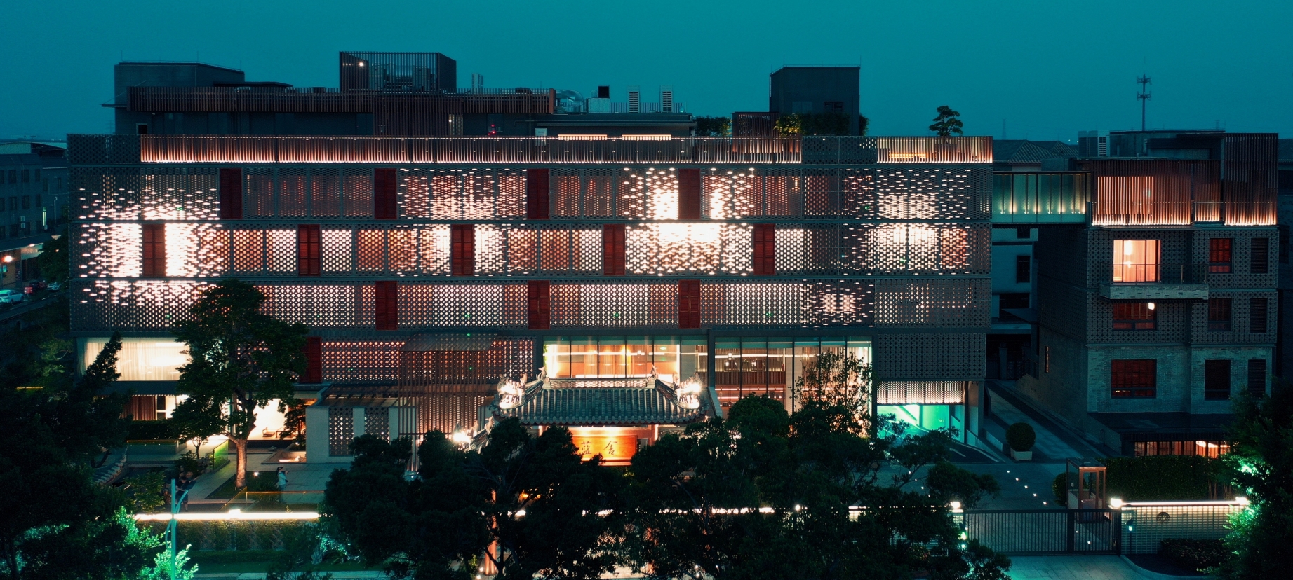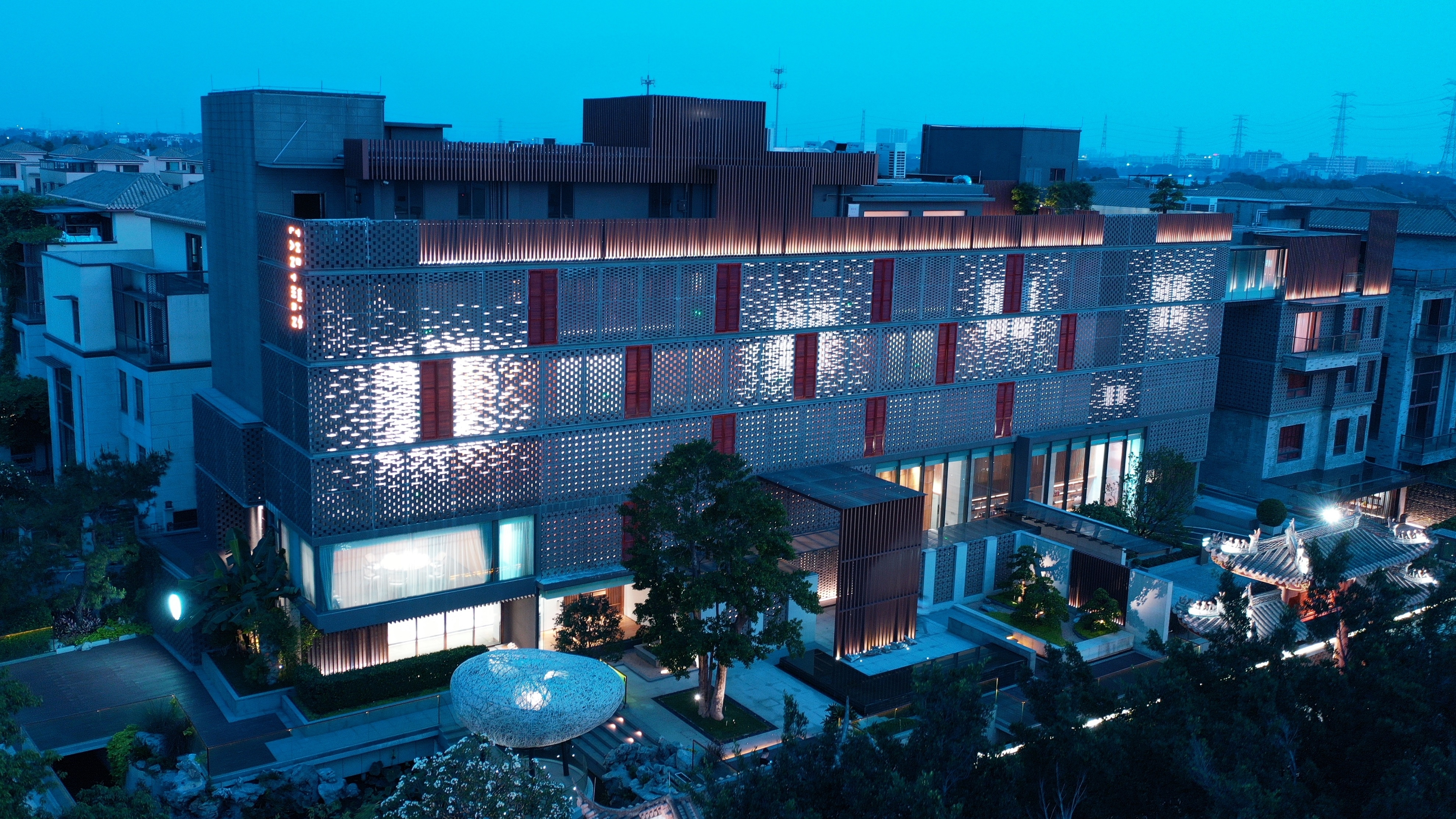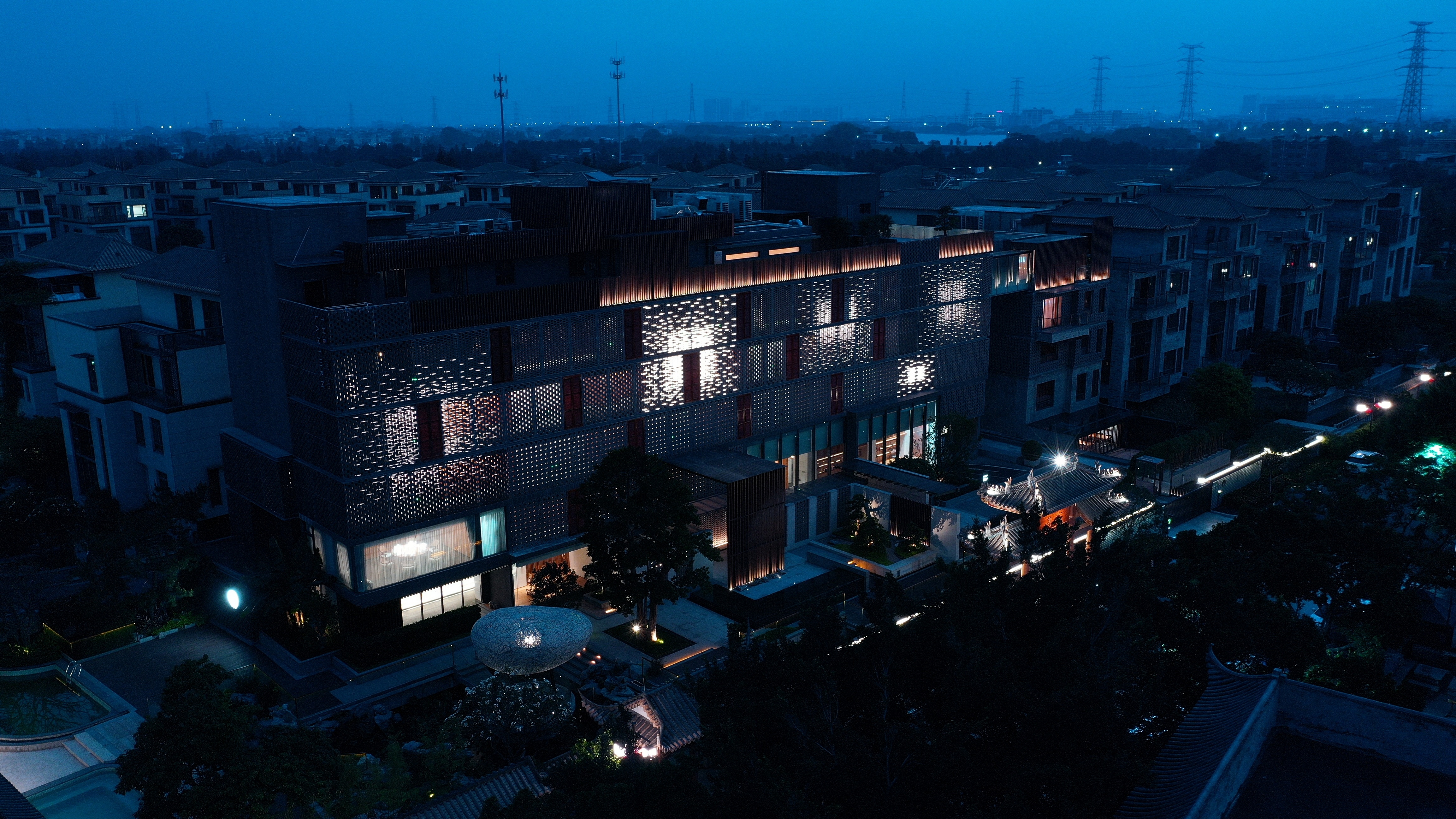 Lighting designer fully studies and understands the original intent and humanistic background of this project. Base on the characteristics of architecture, lighting design combine the internal transmission lighting, and custom luminous brick to reshape the light and shade relationship of facade so that the building presents a richer texture at nighttime. With control system luminous brick presenting dynamic effect, which makes a image of drops ripples, have people think of the ancient water town and causes emotional resonance.