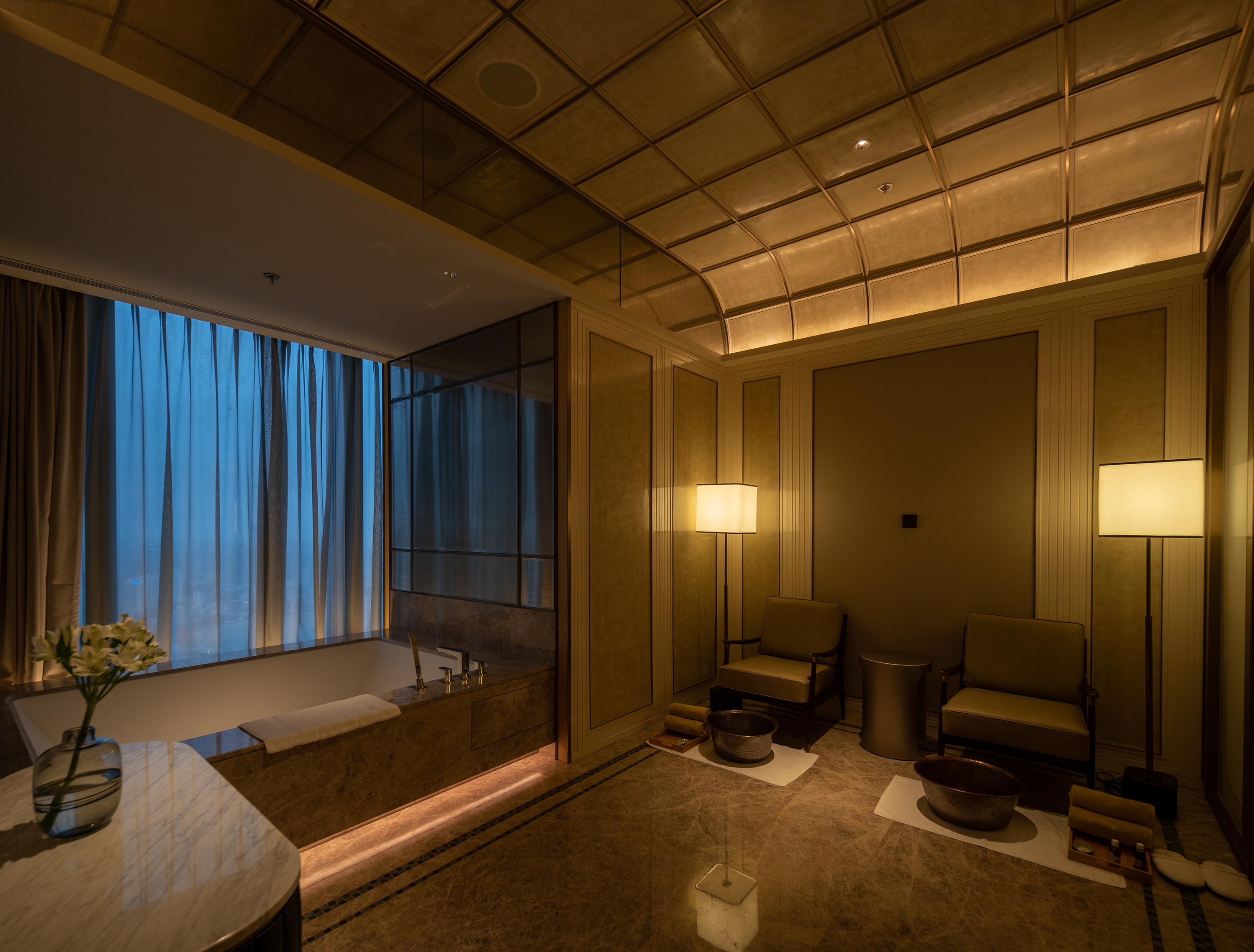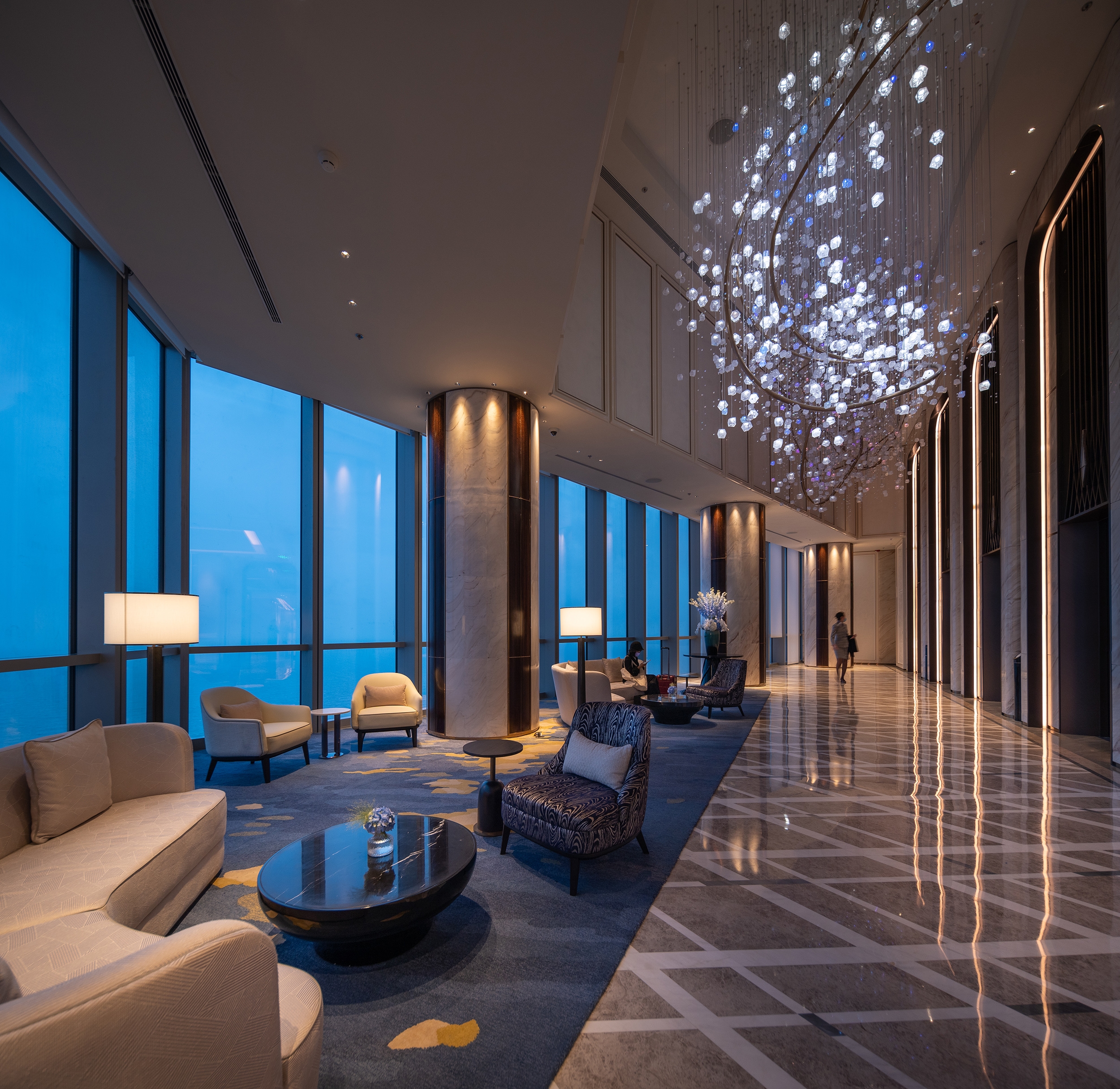 Entry DescriptionThe St. Regis Qingdao is located in Qingdao's "tallest building" Qingdao Haitian Center, where guests can enjoy the sea views and picturesque waterfront cityscape in the clouds. Designers skillfully integrate the local culture with the exquisite and elegant style of St. Regis brand. Lighting design adheres to the concept that light serves people, redefines the space through light, creates proper visual enjoyment for passengers.