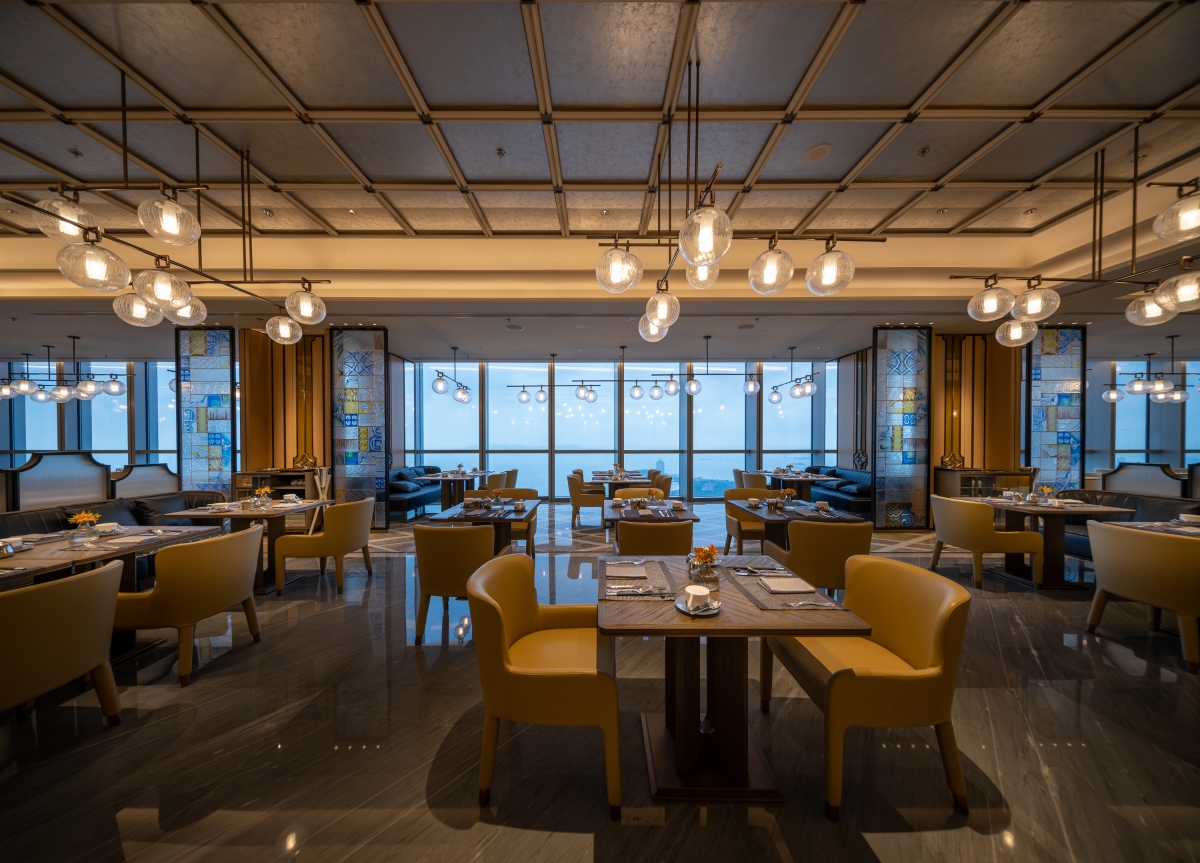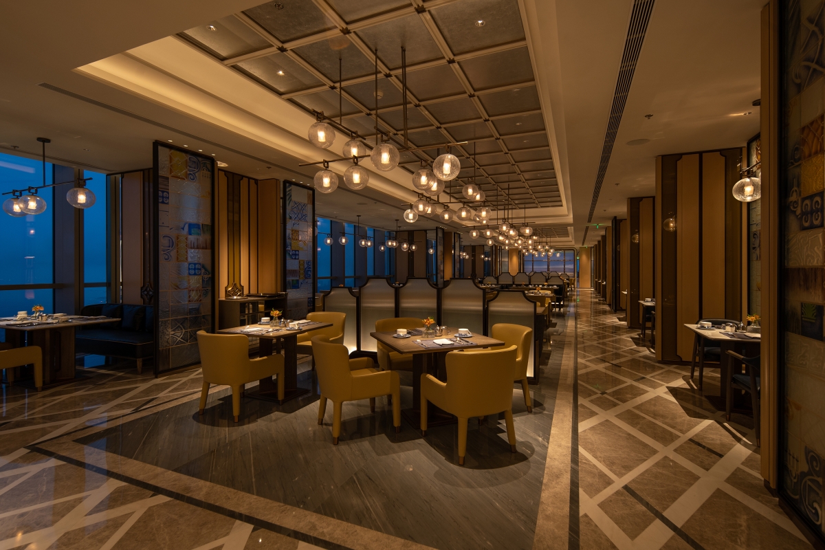 After reaching the 59th floor, the hanging crystal chandelier makes the whole space become romantic,, which can take on different scenes depending on the time of day.
