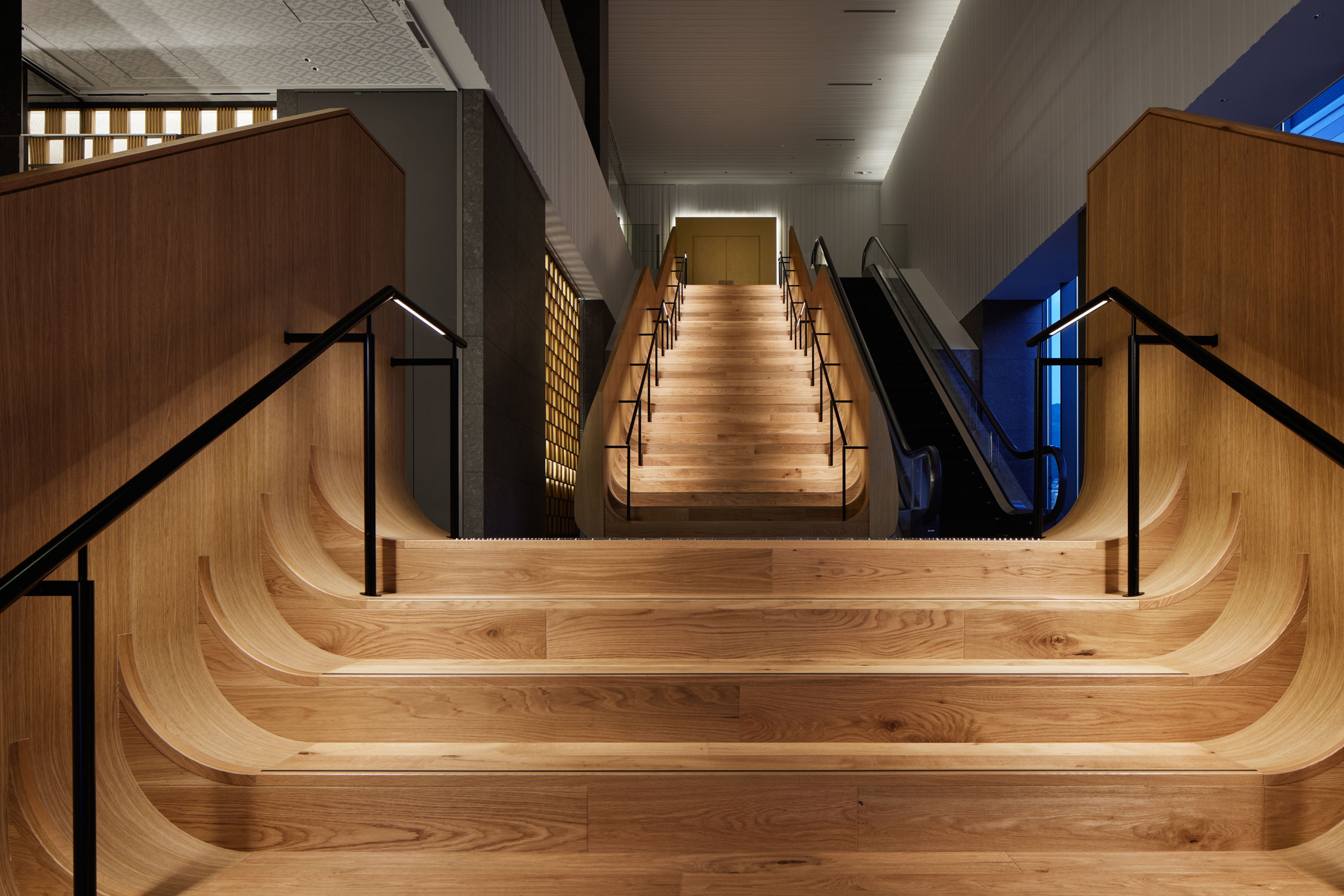 Because the architecture incorporated daylighting for almost all common areas, the light control system that can set scenes according to the time of day to offer lighting environments that express the different attractiveness of day and night, while also reducing power consumption at night.