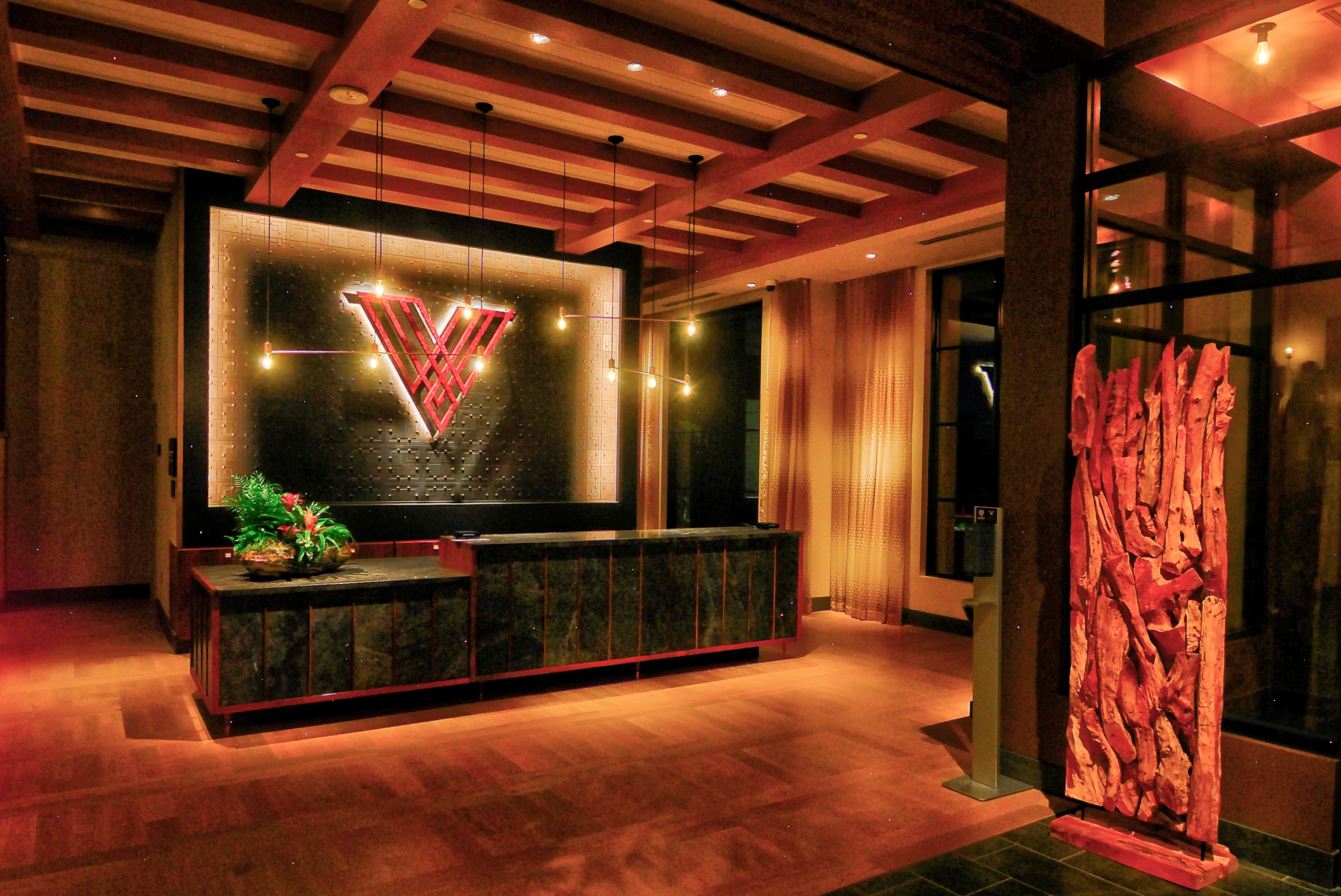 Entry DescriptionThe hotel is part of the Grapevine Main train station development. We provided lighting design services for the lobby, bar, restaurant, lounge, private dining, meeting rooms & guest rooms. We encountered challenges with the budget, lighting control & system changes. The project meets & exceeds the 2006 IECC. Warm wood tones, dark metal panels & brick reminiscent of the historic district are accented to create an inviting backdrop for guests. Millwork lighting is introduced at focal features in the hotel reception, bar, private dining, & wine display cases to allow the details to shine. Recessed adjustable 2700°K accent lighting is used for artwork, focal tables & accessories throughout. Decorative fixtures, with carefully coordinated 2400°K LED sources, provide warm general illumination. A dimming system is utilized in every public space as well as in adjacent banquet areas. Astronomical time-clock settings & fade times are instrumental in transitioning from day to night. To keep the project in budget, extensive value-engineering studies were explored. Review of lighting fixture samples was crucial to this project as we wanted to maintain a high level of visual comfort for guests.