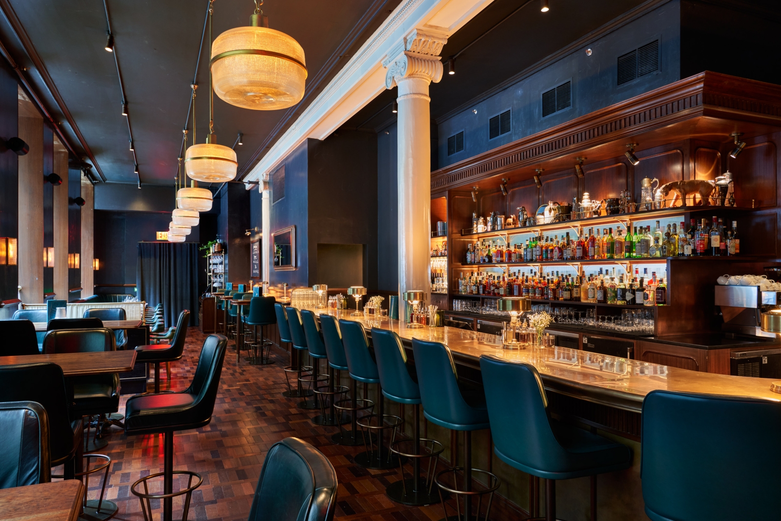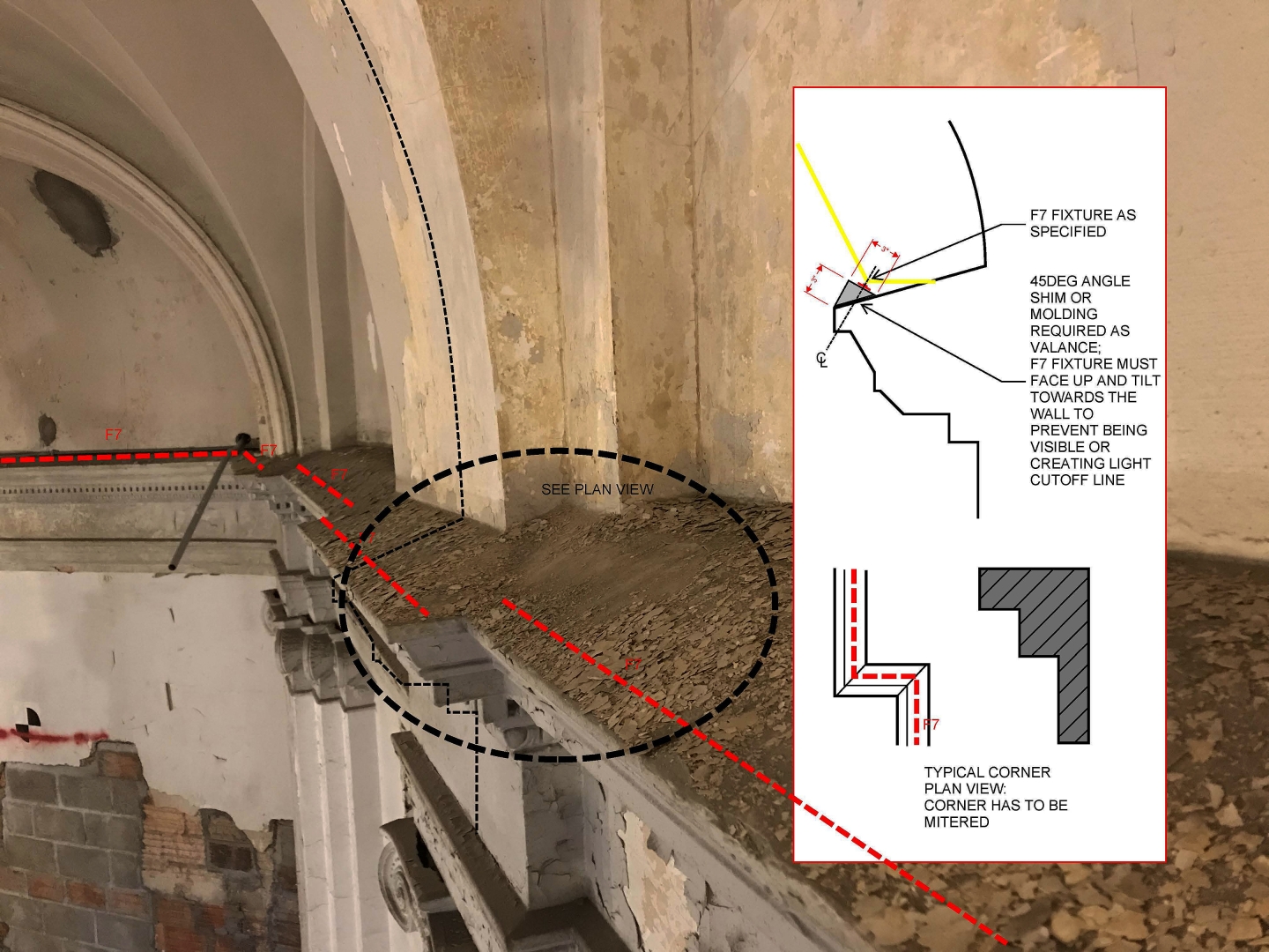 Integrating lighting within this historic volume required intense coordination among the design and construction teams with several mock-ups and design revisions in order to minimize further damage to existing plaster ceilings and filigree. The difference between the before and after photos is a clear indication of the success of the project, as is the wait-list to dine!