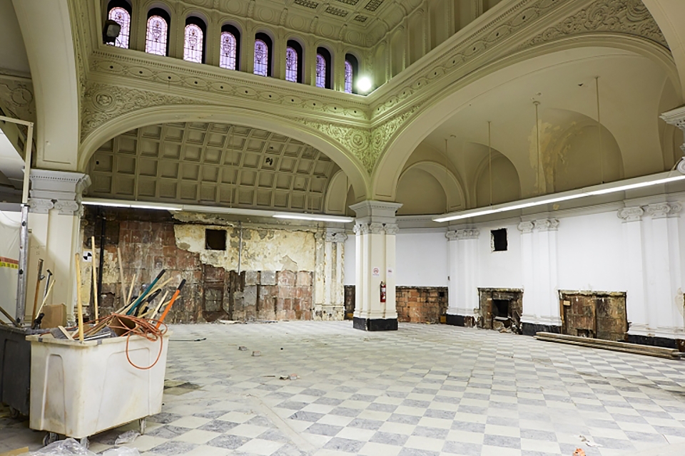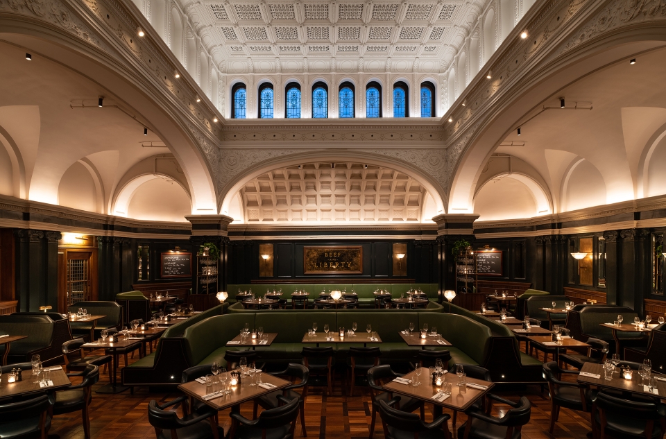 Entry DescriptionClosed for decades, the historic Assembly Room of the United Charities Building sat in disrepair until the current tenant accepted the challenge to take on a very sensitive restoration while changing the purpose to a fine dining steakhouse.