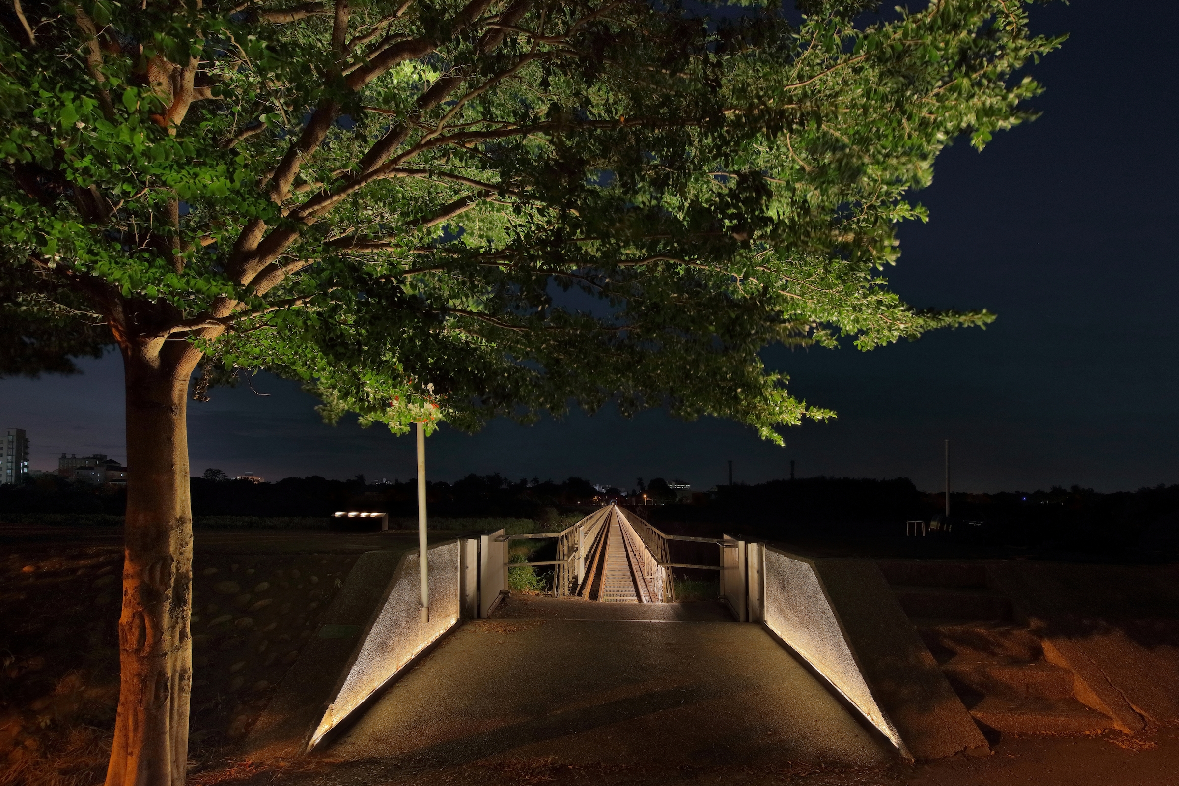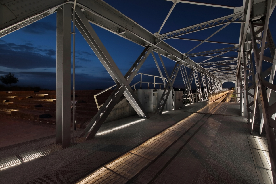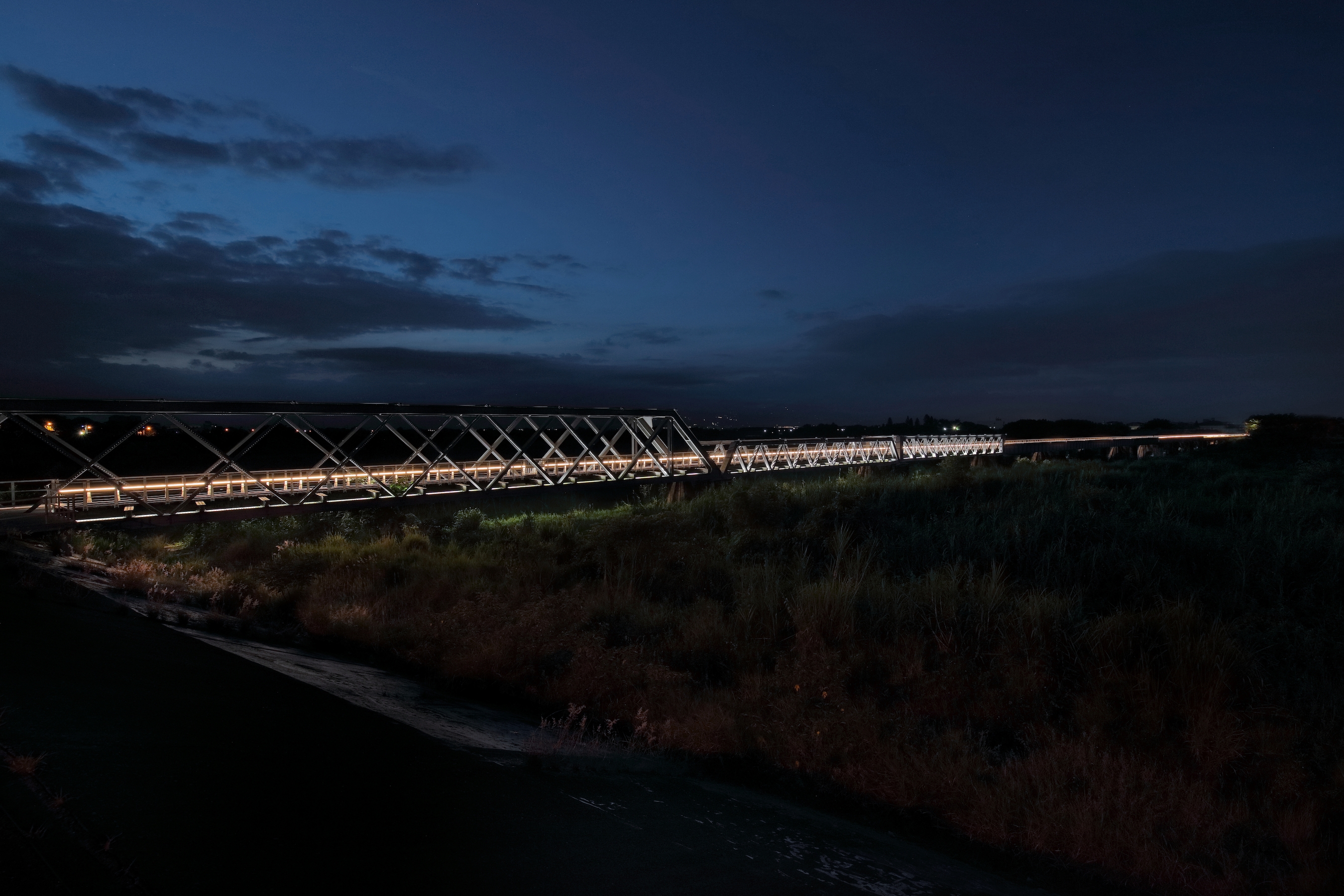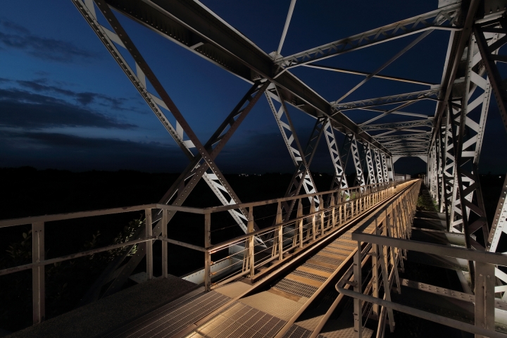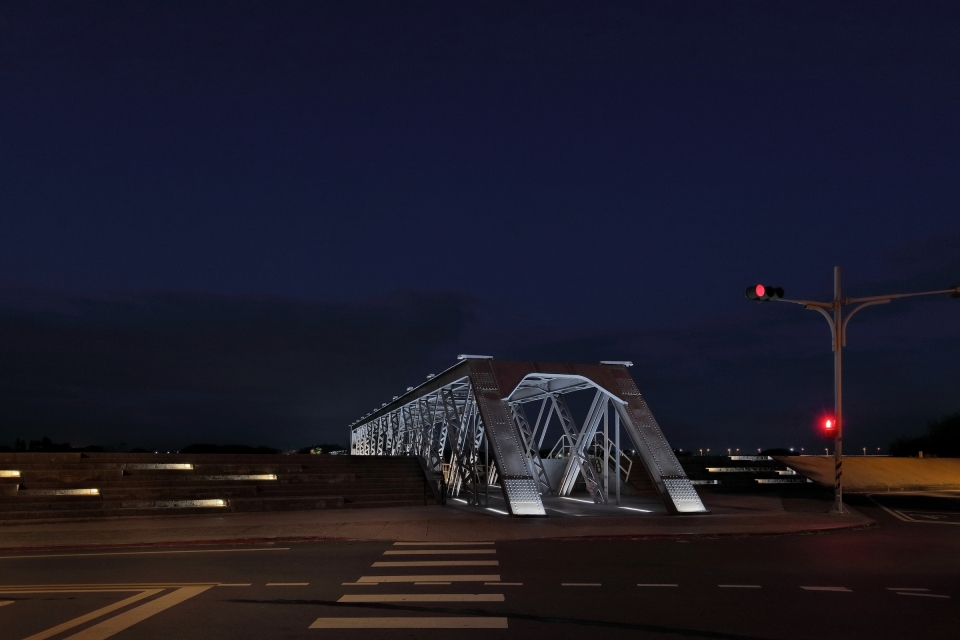 The illumination environment design of the project, a nexus of horizontal space and vertical time that work like the bridge’s trusses and beams, serves to interlace nocturnal scenes in an active way. The moving lights simulate a train crossing the bridge, and, with lighting installations on the bridge at specific intervals, present the gradual progression of light, reminiscent of a train going through the tunnel of time and approaching slowly from afar.The colors of lights are themed on the 24 solar terms of the four seasons.