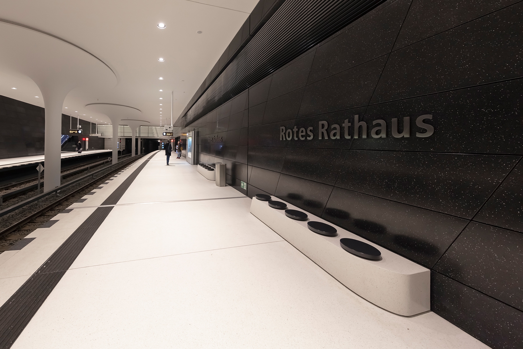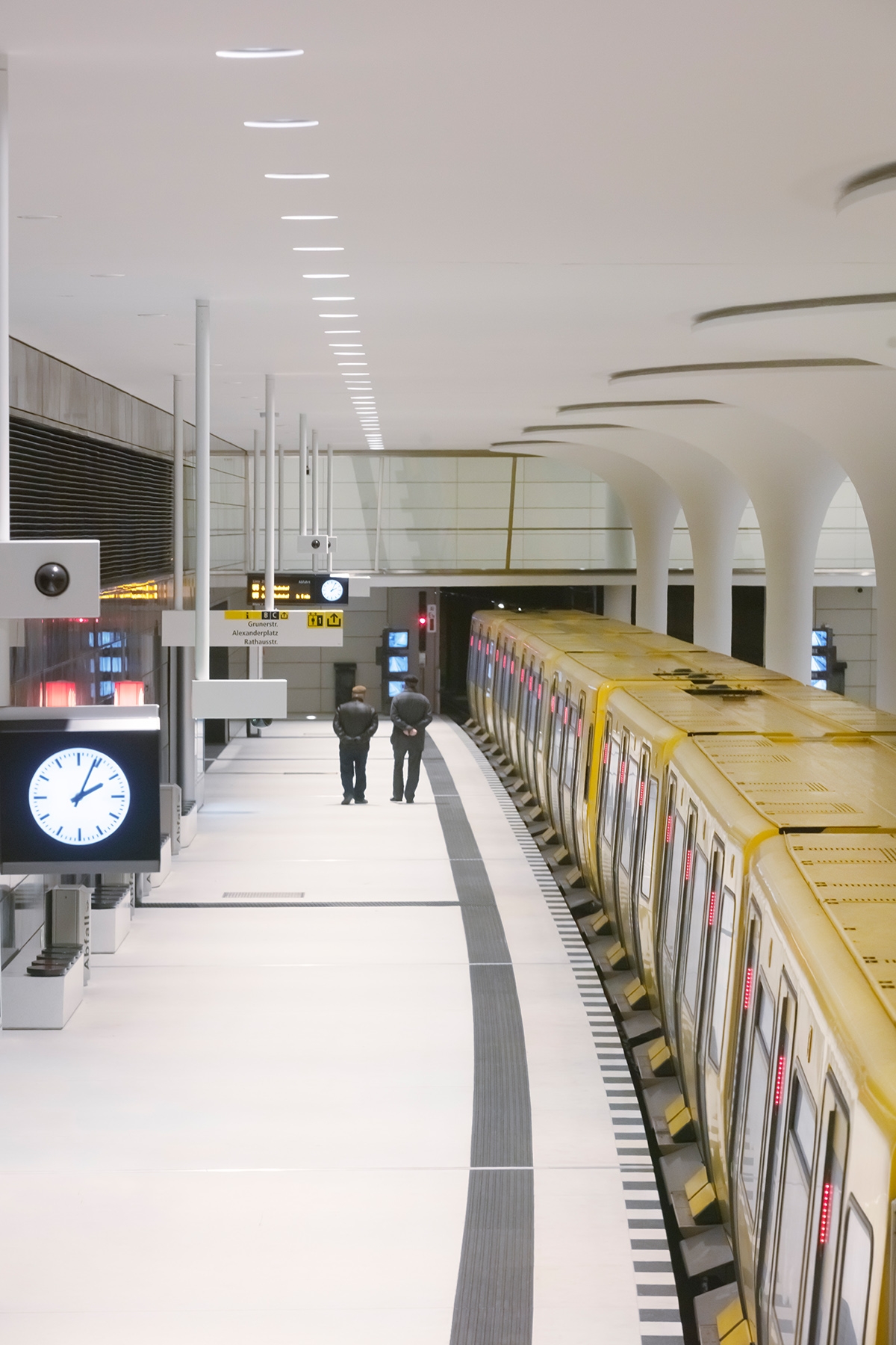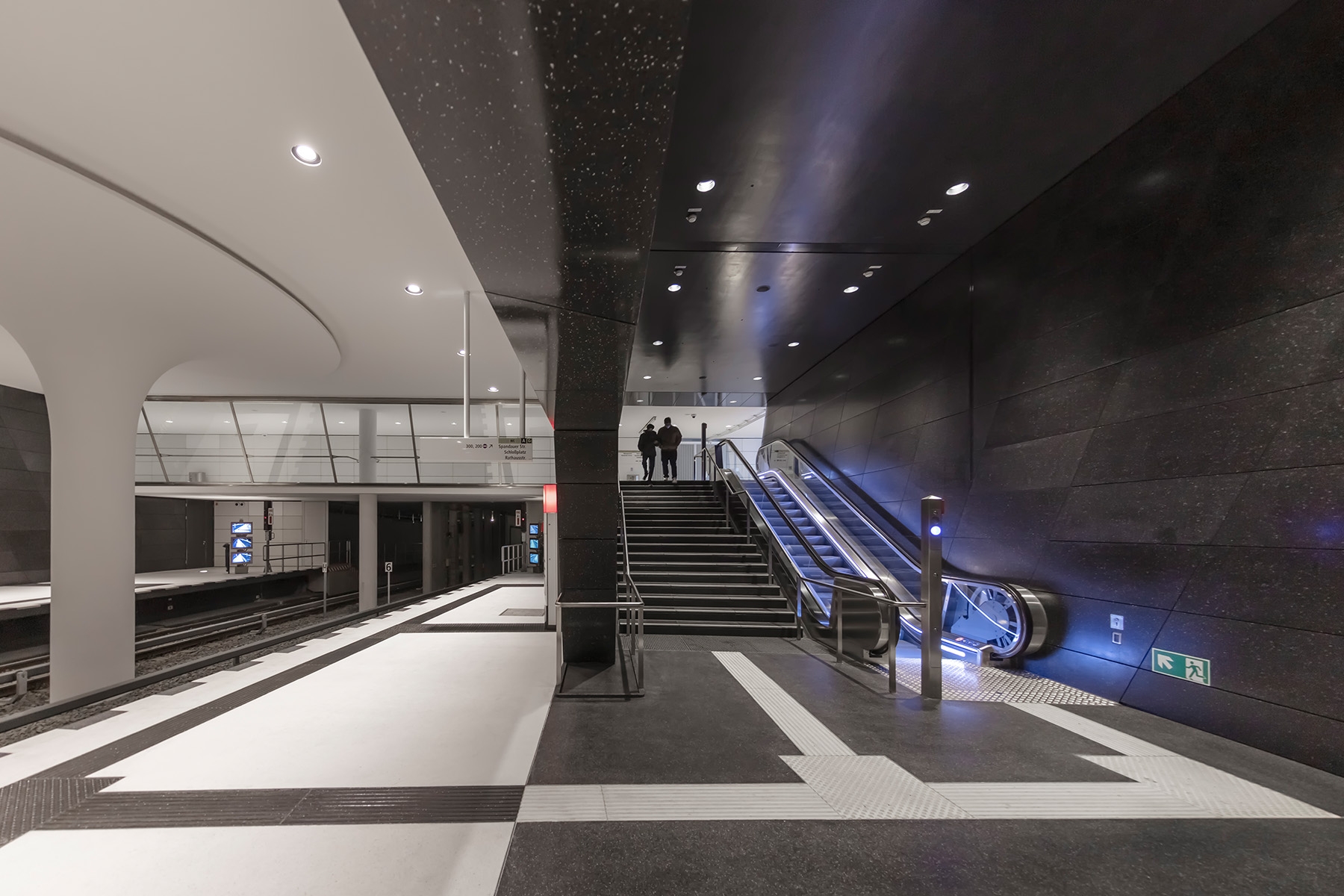 Entry DescriptionThe new underground station impresses with its open, clear architecture. It is turned into a space of flexibility, safety and movement by the integrated lighting concept striking with simplicity.