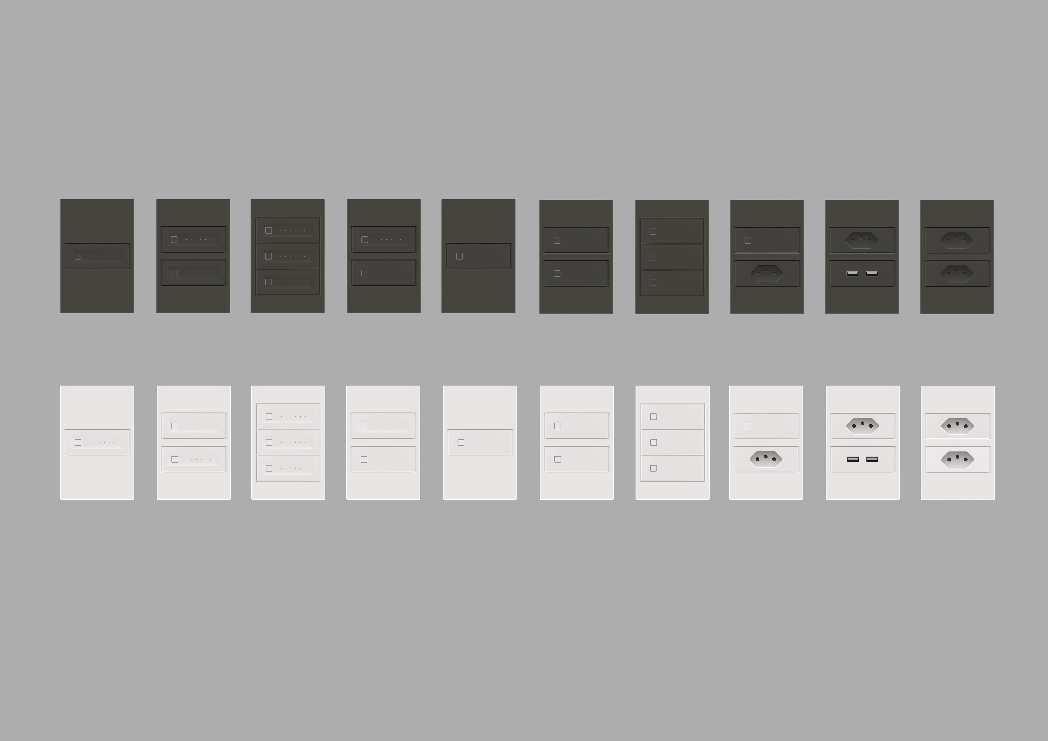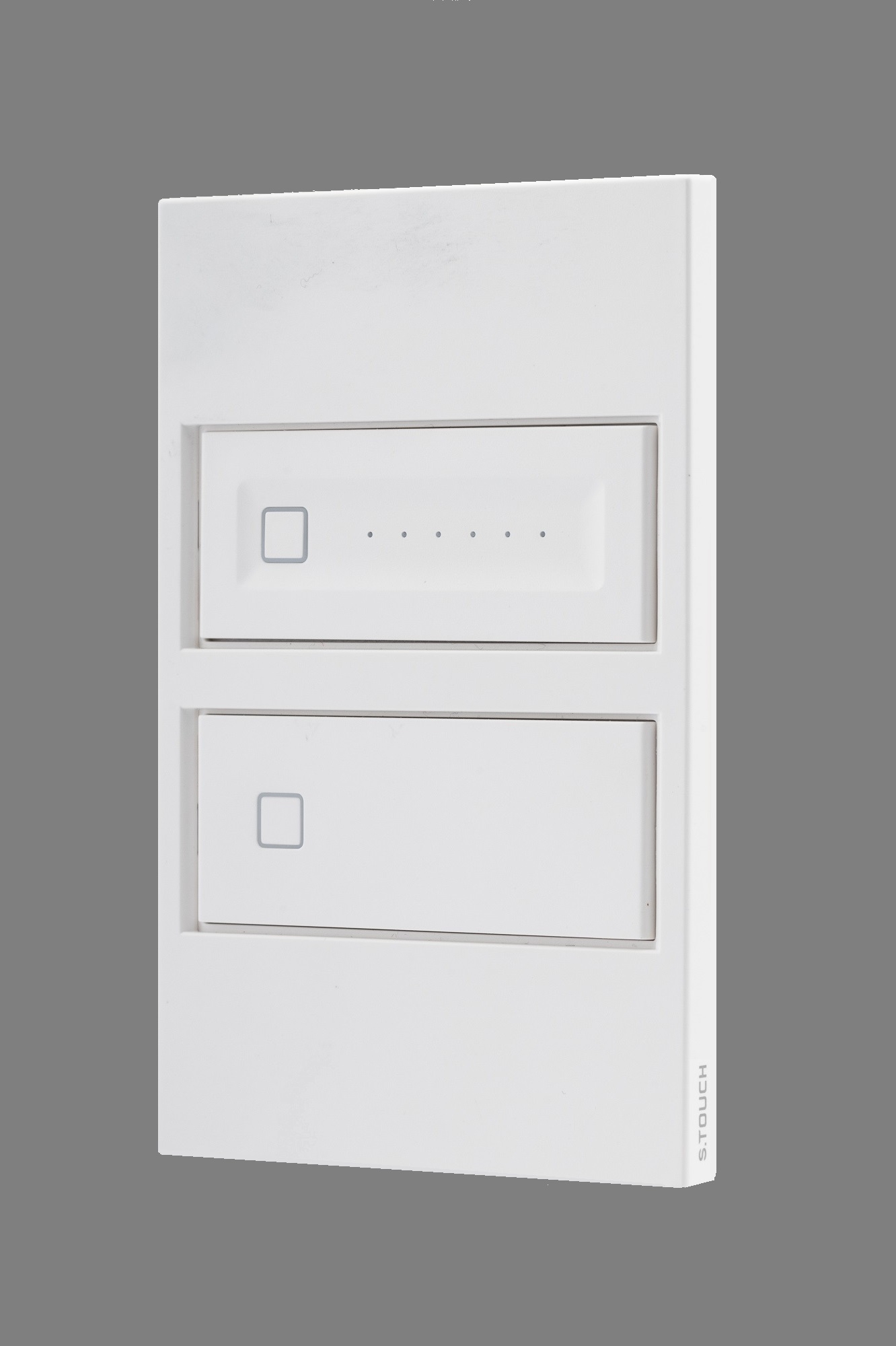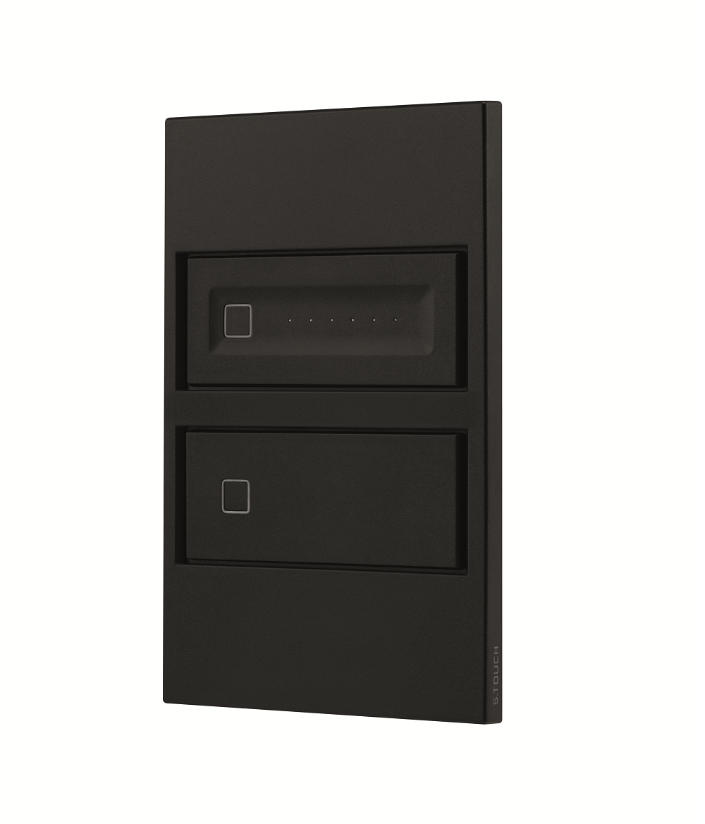 The Dimmer + Switch S.TOUCH is only one amount of an interline composed of dimmers, switches, and sockets. All of the S.TOUCH line shares the same visual identity and features.