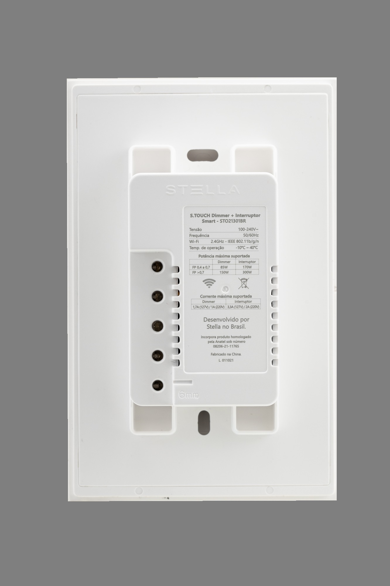 Entry DescriptionThe Dimmer + Switch S.TOUCH is a unique product in the market. The device has an exclusive design in flat and regular geometric shapes that integrate aesthetics with functionality. The non-modular construction allows an easy installation and a compact body shape compatible with 4X2 junction boxes. The Trailing-Edge dimming method is present in all S.TOUCH dimmers, which stands out from the ones available in the market, and is specially developed to work with dimmable LED lamps.