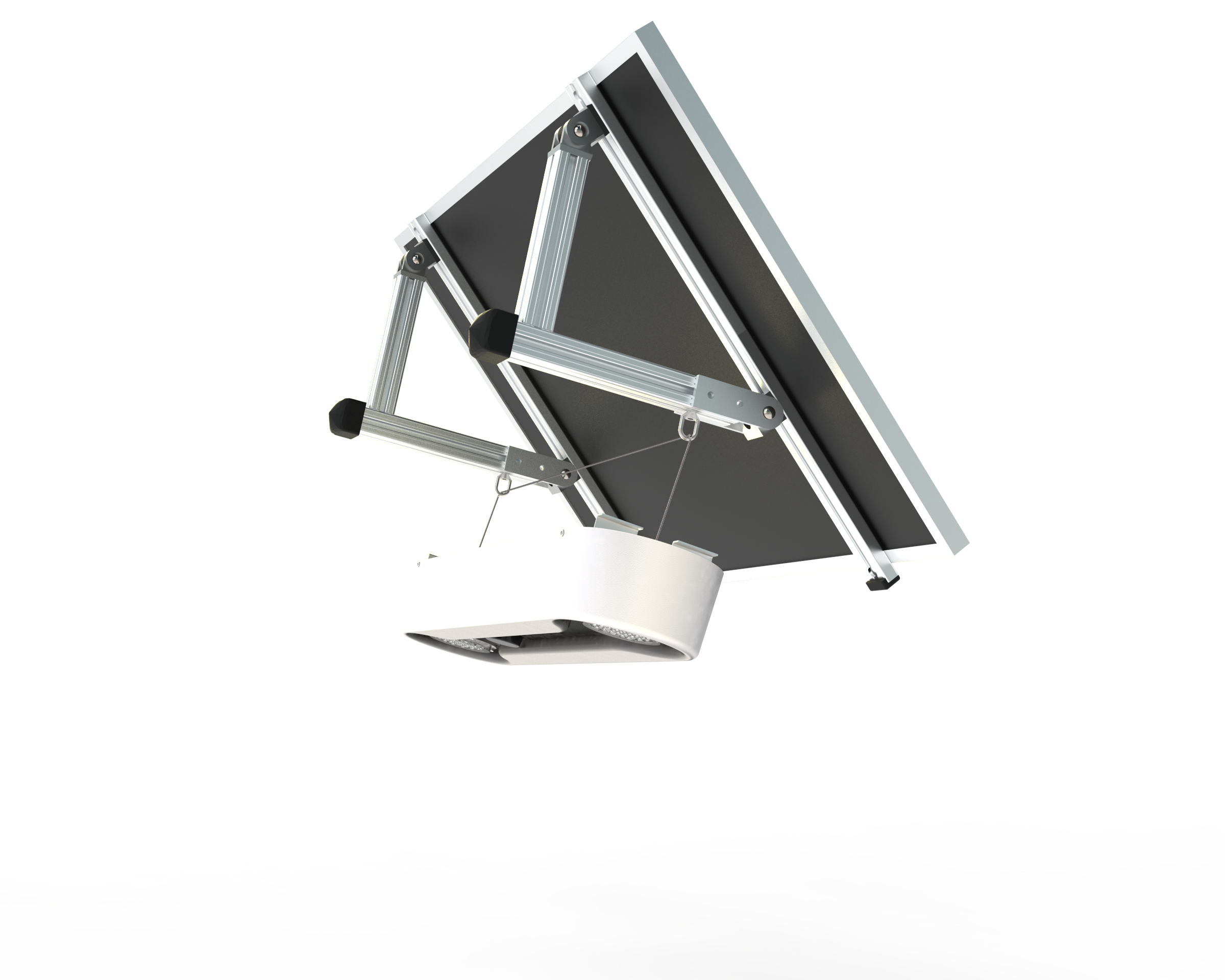 Entry DescriptionThe SSL is a highly adaptable solar shelter lighting system, allowing it to fit on any type of shelter securely. It accomplishes this by utilizing a few innovative functions: an adjustable and light-weight extrusion mounting assembly that changes the solar panel's angle facing the sun for maximum efficiency as well as allowing it to rest on any roof style a shelter may have, a customizable "interaction plate" to assure the SSL's module provides consistent contact and pressure to the inside of the shelter regardless of obstacles, materials, or positioning, and finally, a braided cable tensioning system to secure the two parts together providing high strength while creating the least intrusive installation of any retrofitting shelter light. In addition, by moving away from traditional direct bolted connections, the shelter receives less damage to accommodate the SSL while lending itself to a wide range of shelter construction materials, even delicate materials.
