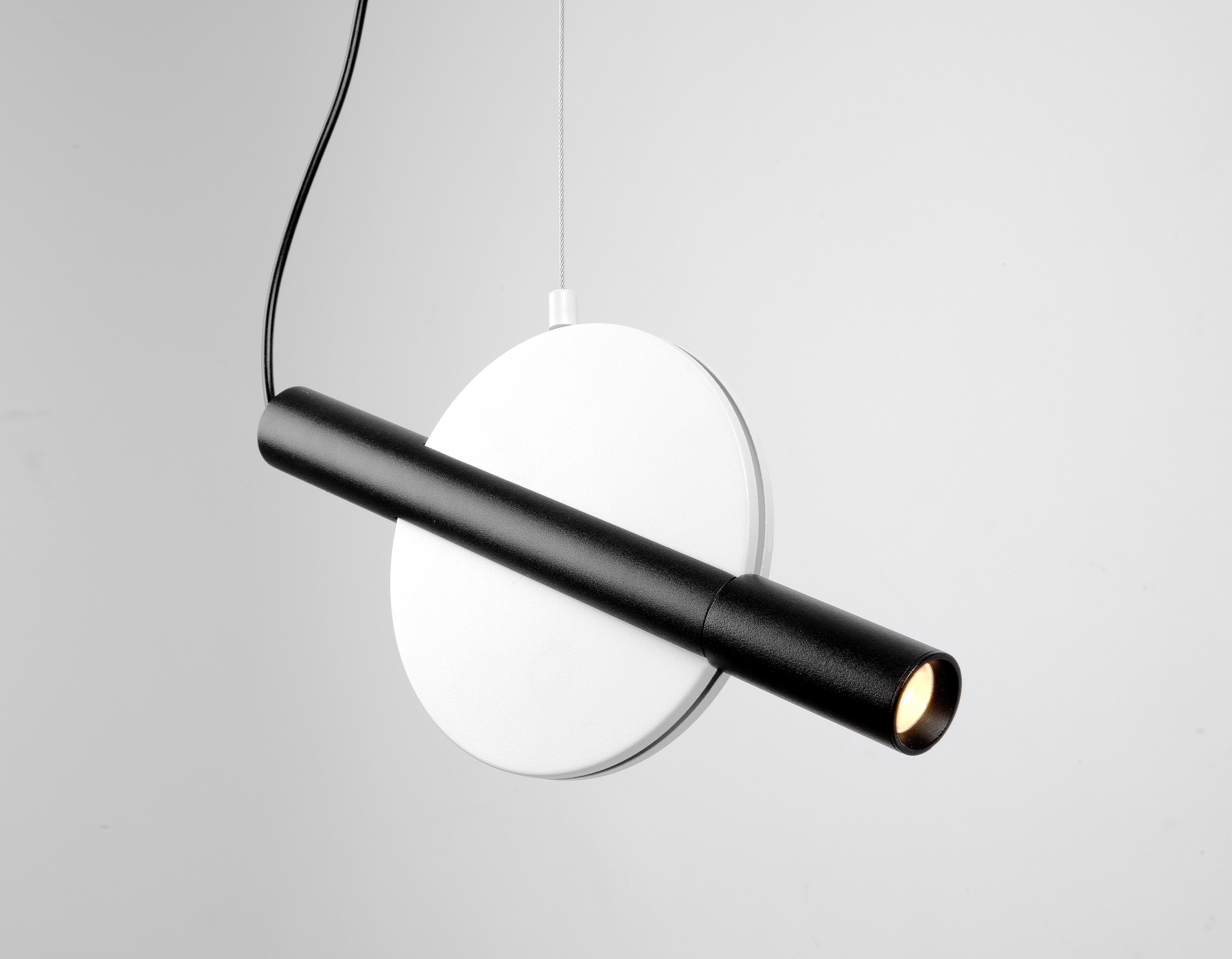 The very name of the collection tells us a lot about the mysteries this luminaire hides. The luminaire's concise design is not only dictated by contemporary trends, but above all by its design features. The shape of the luminaire hides almost endless adjustment possibilities, so that the lighting can be set individually for the user. The luminaire consists of a cylindrical metal base, hosting the LED light source. It features semi-circular elements. At the top there is a unique adjustment system, using which the orientation of the light beam can be changed in the vertical direction. And using a cable and wire, the direction of light can be adjusted horizontally when installing the luminaire. It is this suspension system that allows the luminaire to be installed static, which would not be possible if it were hanging from a single wire. They can be easily adjusted in height, depending on the ceiling and the task of the luminaire. To make the wire hang elegantly, it is connected to the cable with a special decorative element. Special ceiling cups with magnetic fixings were developed for the luminaires to make the design more elegant. No fasteners or bolts. The collection is available in two colors: black with shagreen and matt gold and black with shagreen and matt white.