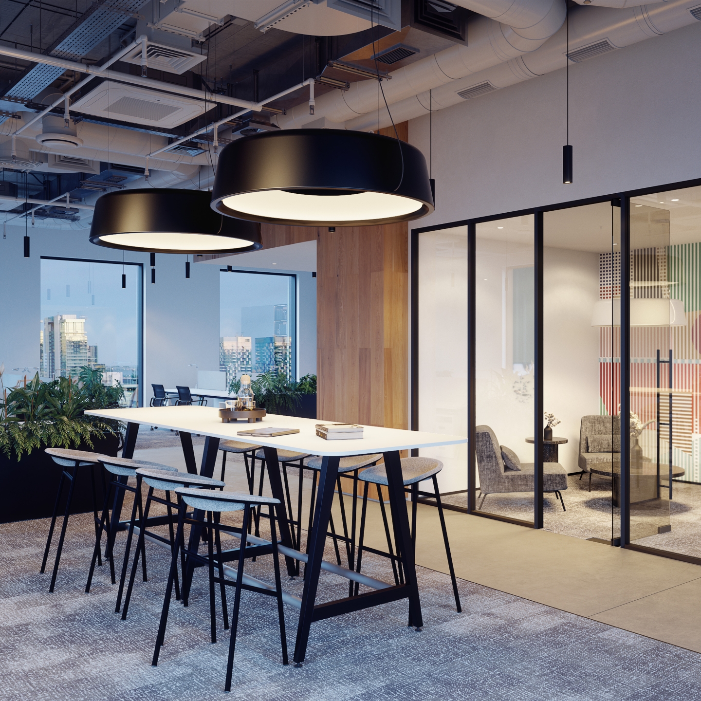 The internal geometry of the luminaire, including the top radius, is optimized to improve the light spread inside the shape. And a return around the bottom edge acts as a reflector, casting shadow-free light evenly onto the curved interior surface. As a result, Billie creates comfortable illumination for occupants below, regardless of mounting height.