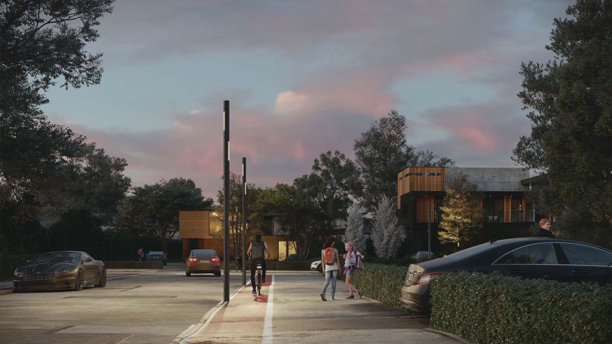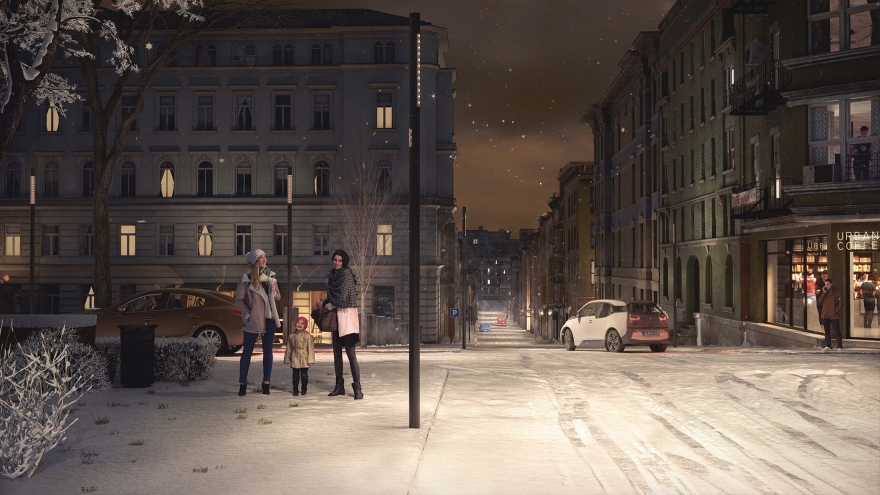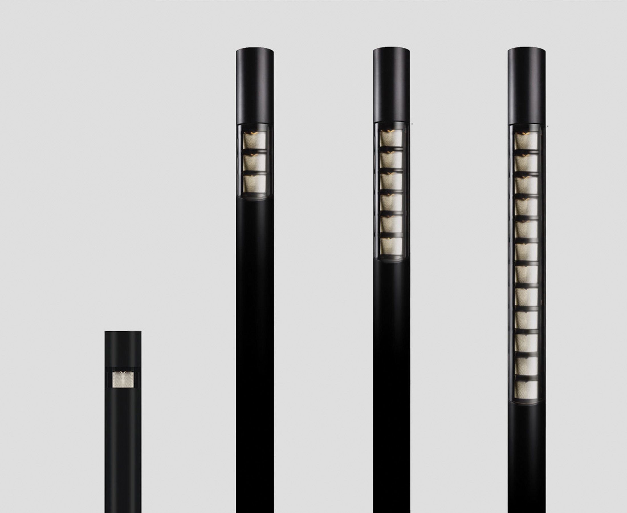 The Line is for land­scape design­ers in need of a slim (4 1/2 inch), modern column or bol­lard that per­forms and sup­ports the calm, clear urban land­scape. The Line is del­i­cate in form and cus­tomiz­able. To meet dif­fer­ent appli­ca­tions, four module sizes are avail­able with light out­puts scaled accord­ingly. Inte­grat­ing the optics directly into the ver­ti­cal form we elim­i­nate the need for a hous­ing. Ver­ti­cal linear optic mod­ules fit seam­lessly into 360º adjustable ver­sions of the Line. Com­bine mul­ti­ple light engines to create var­i­ous dis­tri­b­u­tions, enabling flex­i­bil­ity of design in a stun­ning and har­mo­nious look. All optics in the Line family may be selected, as is, for more per­for­mance or with the optional com­fort fea­ture, for a softer visual appear­ance. Typ­i­cal appli­ca­tions are urban projects, deep city, down­town, paths and squares.