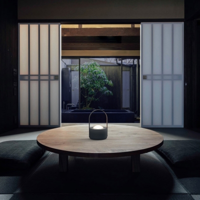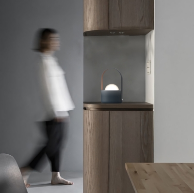User can easily turn on Bai by twirl the opal glass, the adjusting handle could move the Bai's light up and down presented the way of moon on the river.