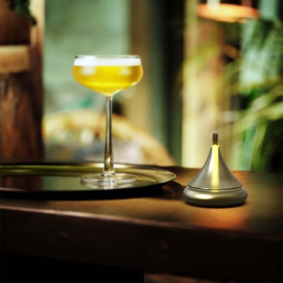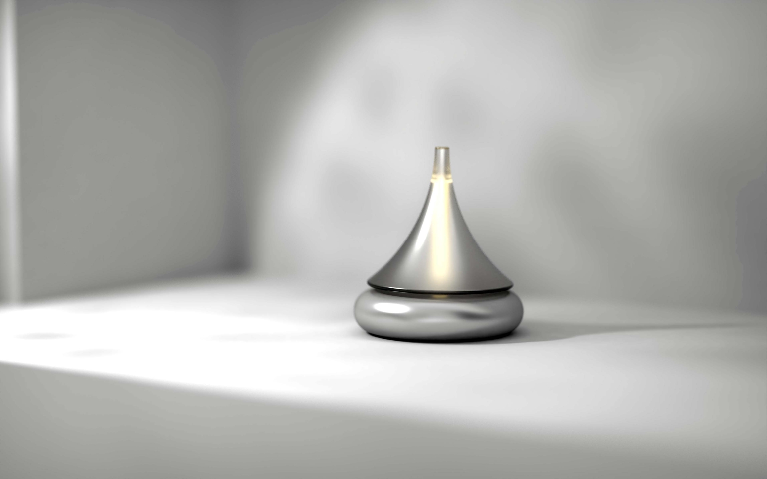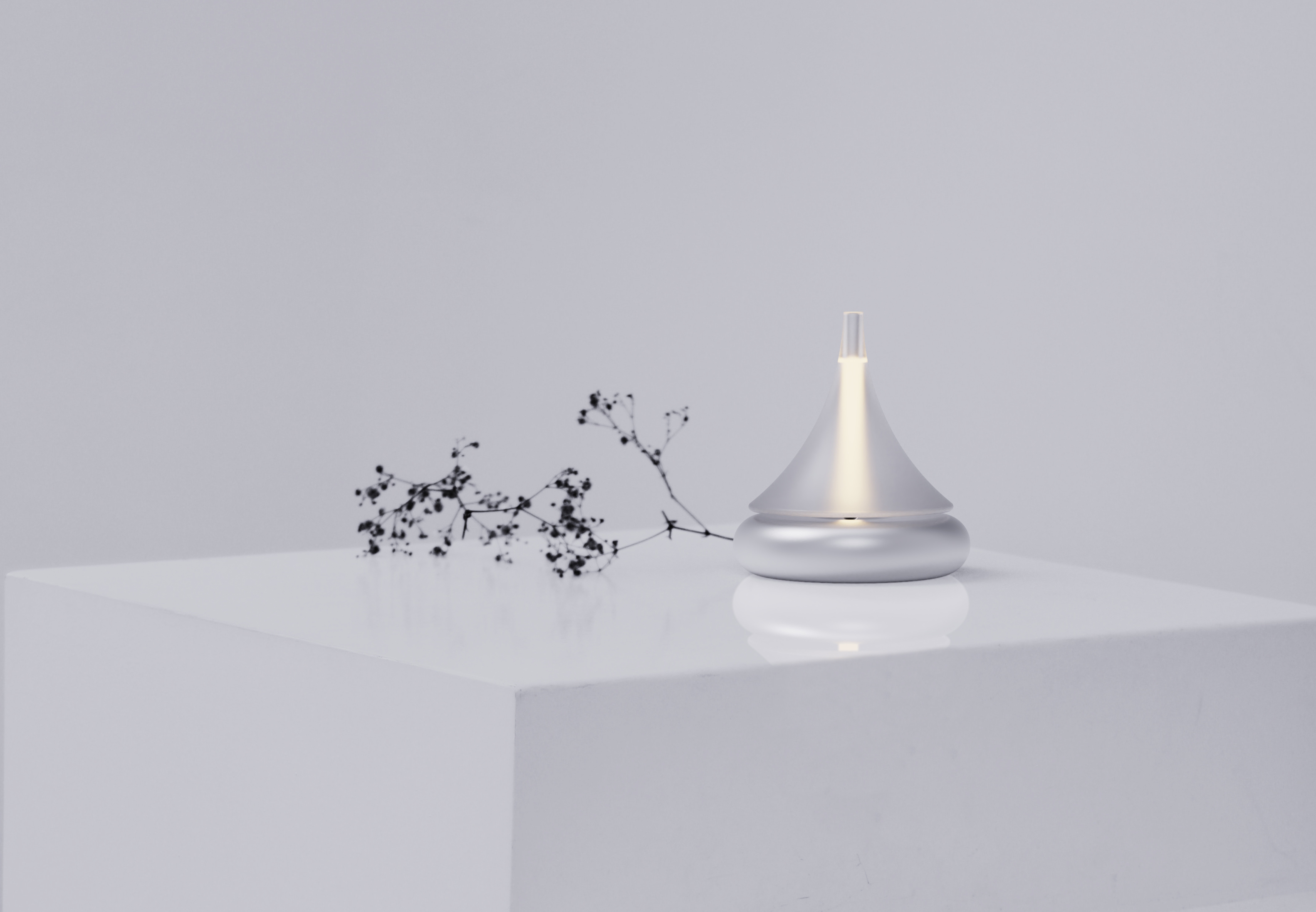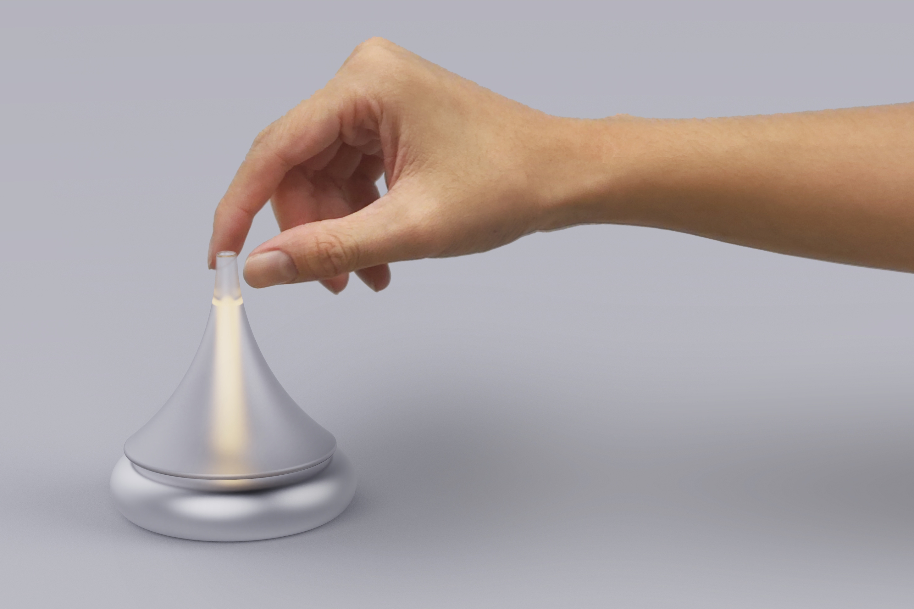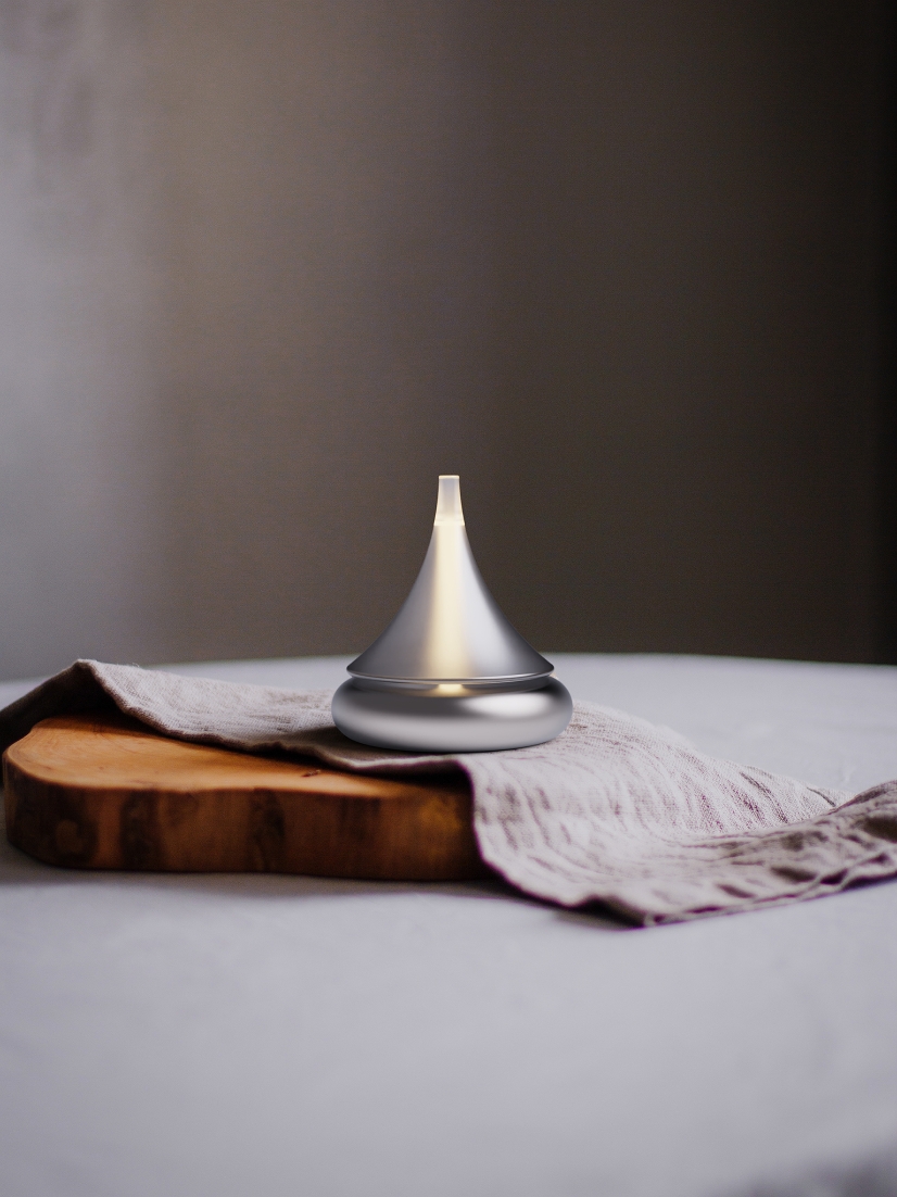 "Ning" is made of recycled glass as a whole, the bottom is made of strong magnets, the base is made of recycled aluminum, and the electromagnet modules and LED lights are embedded inside. When the top starts to turn, the light comes on immediately, and it won't fall down until you stop it manually.