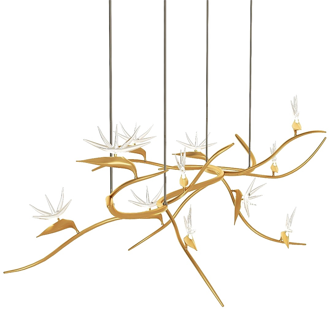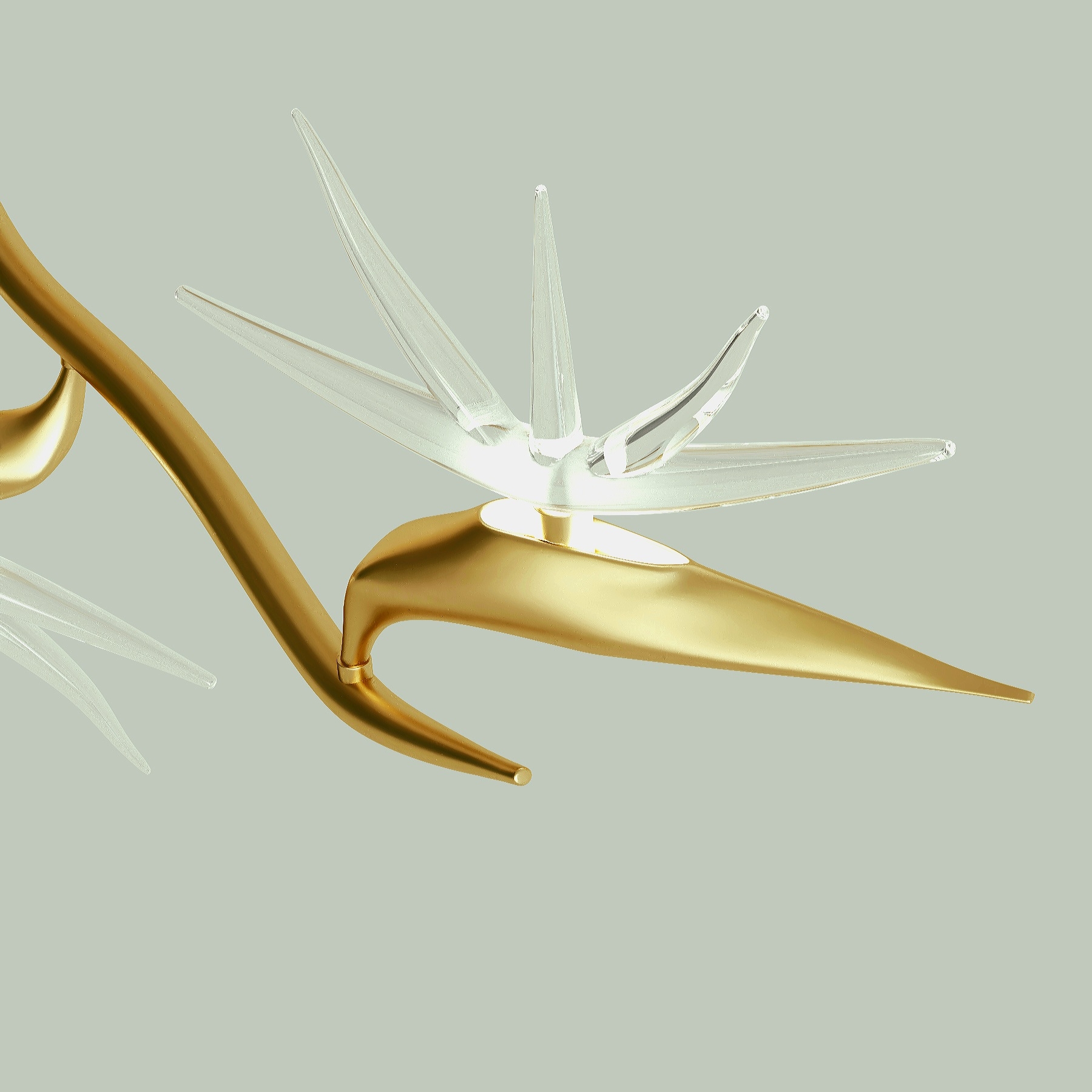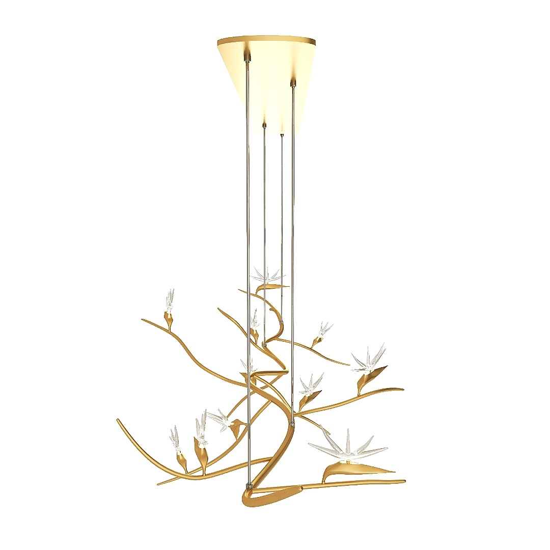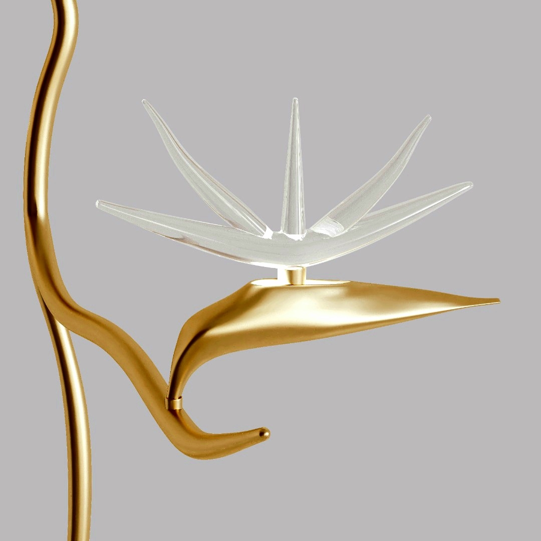 The source of design inspiration for this lighting is the white strelitzia flower. This flower, in any environment, gives light and freshness to the surrounding space. This lighting is designed in two models, and the material contains beautiful crystals representing the petals of this flower.