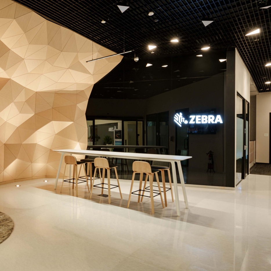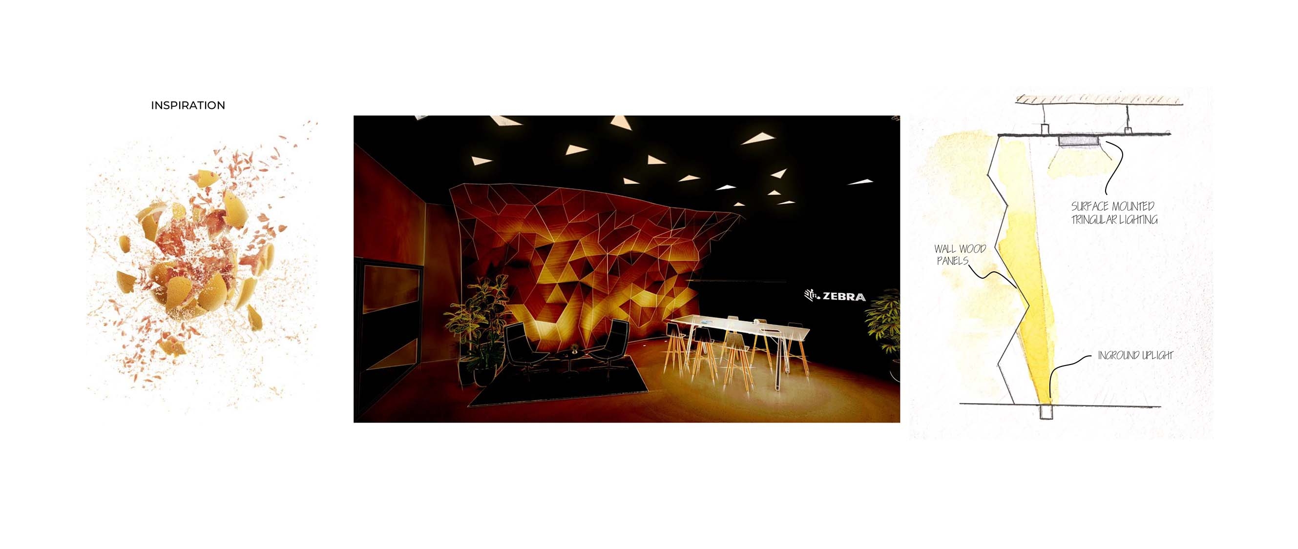 Zebra Technologies' - Is a pioneer in digital innovation and solutions and a glimpse into how lighting influences your workspace and transforms the environment today. The carpet area is wide and spreads over 2,47,000 sq/ft with a marvelously designed workspace and provides perfect lighting solutions. It was a challenging yet extremely amazing experience. Ambient lighting is inspired by the explode effect. 'Z' as a shape refers to triangular shapes lighting fixtures that are created for this project. Here's throwing light on our design inspired by an explosion effect, direct lighting to indirect lighting creating an eye-catching that leaves a wow effect on the visitors.