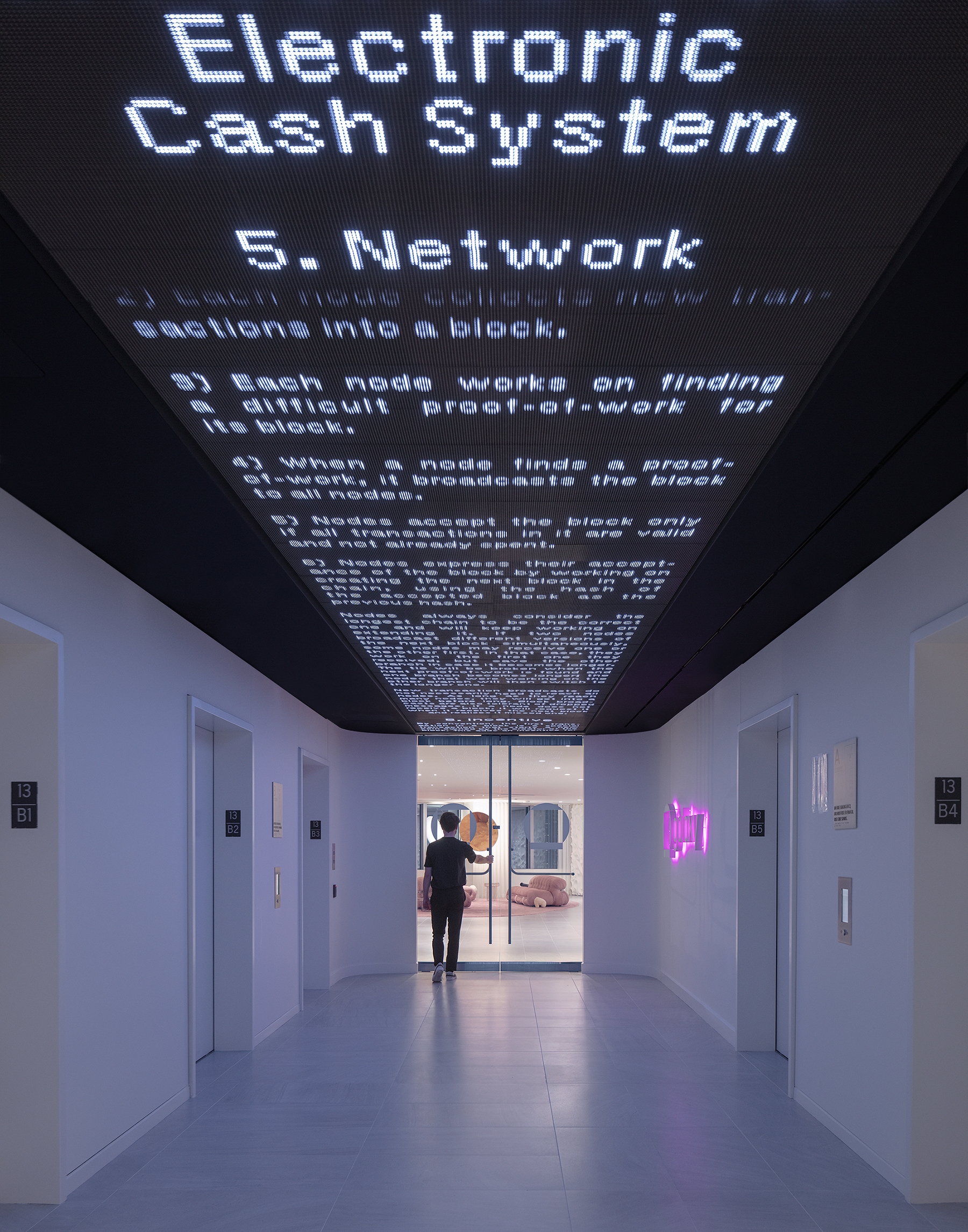 Entry DescriptionA digital asset and blockchain leader was looking to create a new hub for their team with a design that reflects their energized workplace. The lighting designers were asked to create varying and unique atmospheres throughout the 33,000-square-foot office while keeping the existing luminaires in place. Lighting was thoughtfully woven into the architectural fabric of the space, generating a rich expression of the forms and textures throughout. The lighting design team meticulously studied the visual comfort and experience of occupants, including employees, clients and visitors.