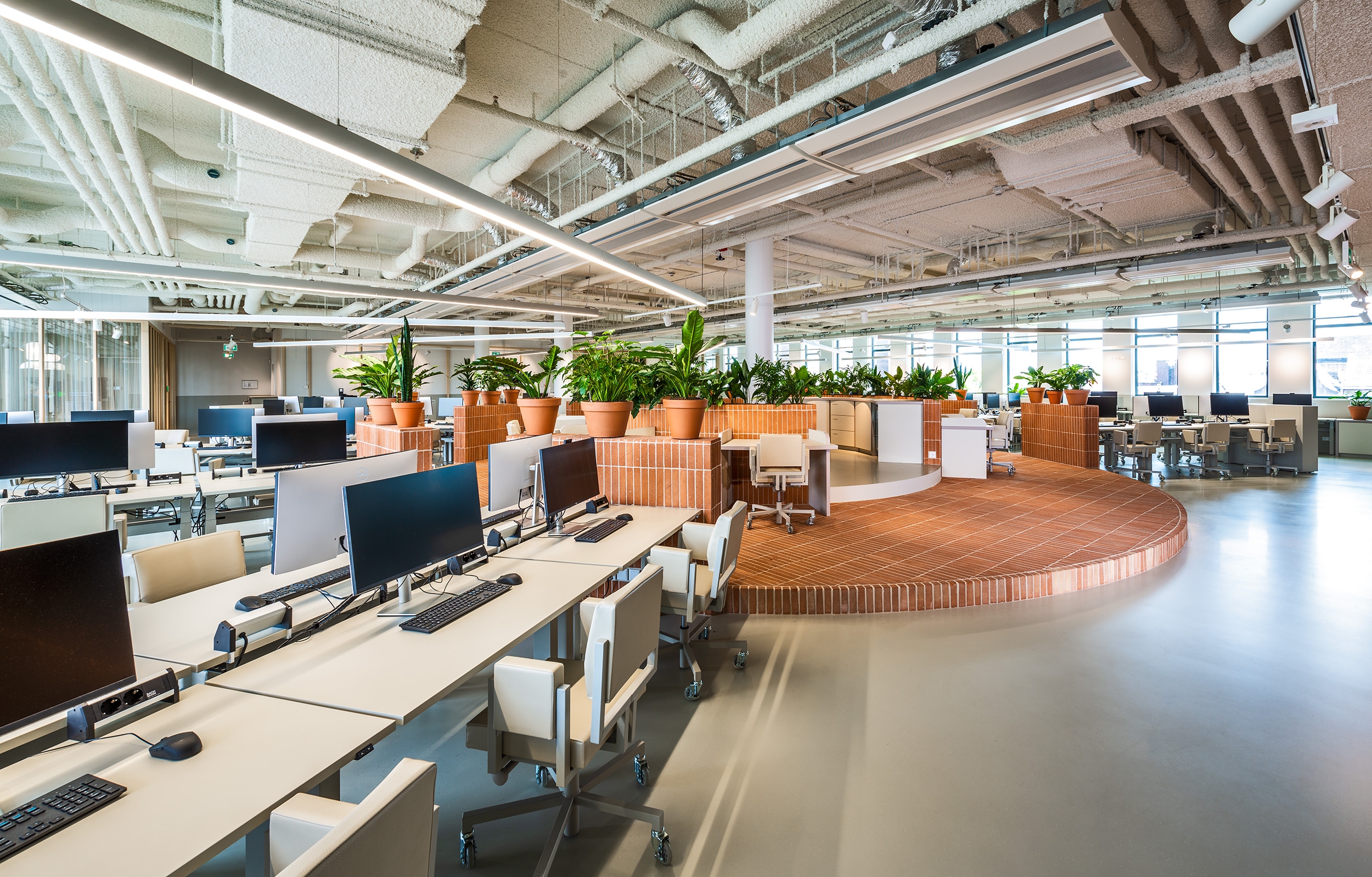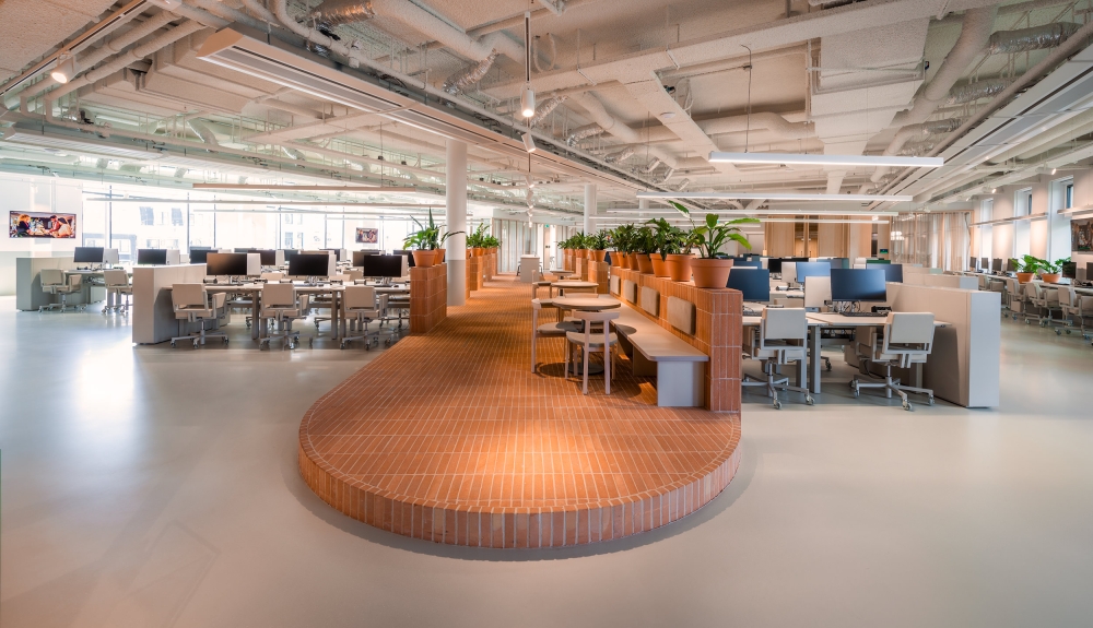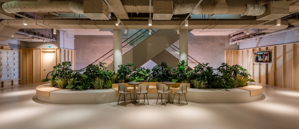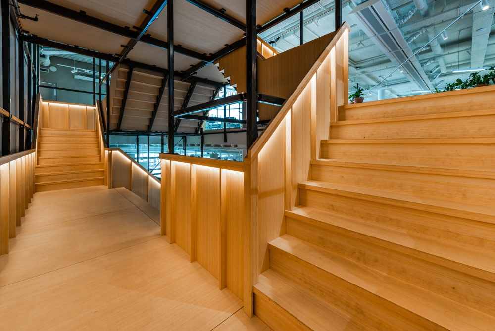 An absolute eye-catcher are the wooden staircases with integrated light which invite workers for encounters and interaction.