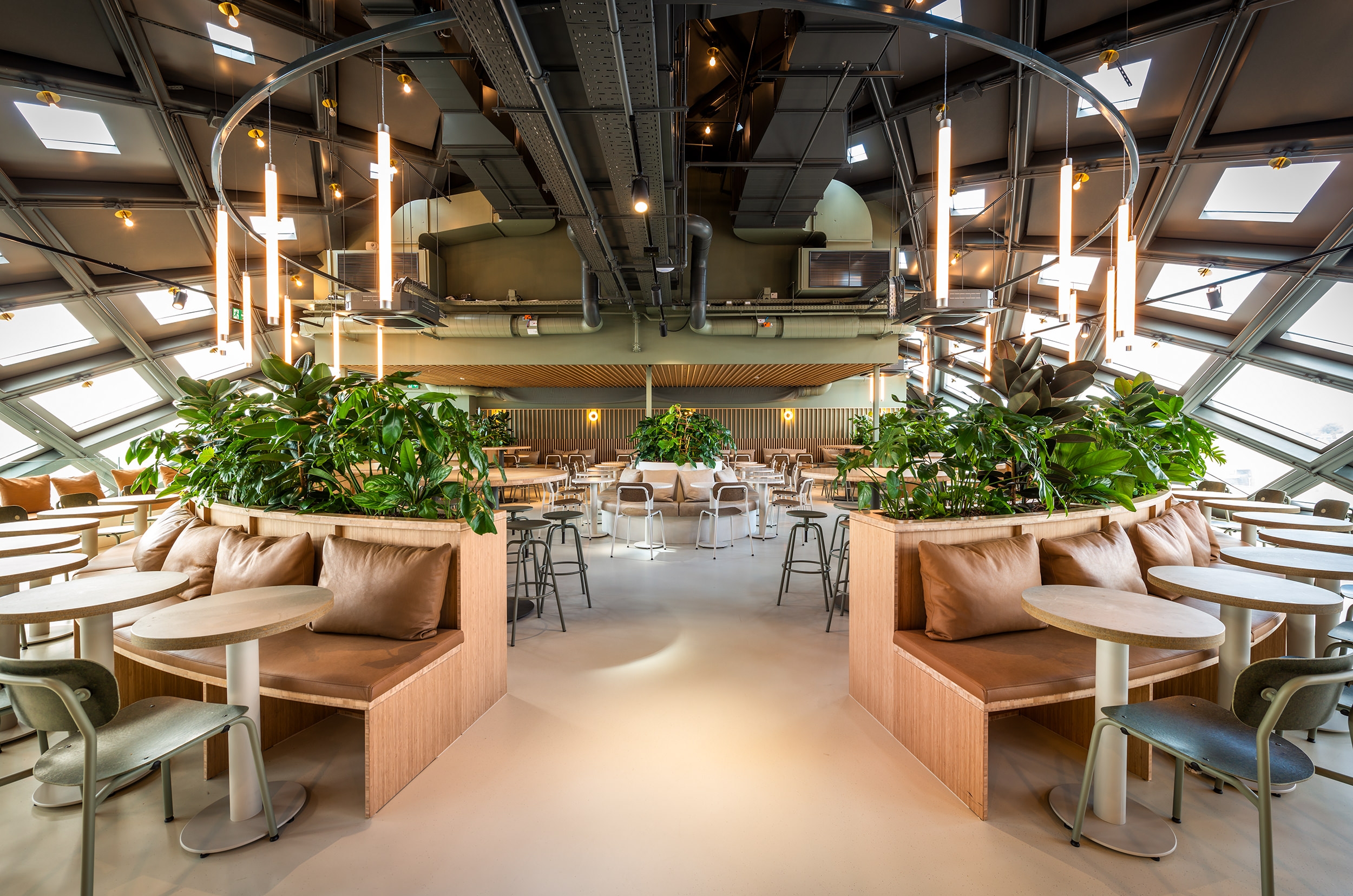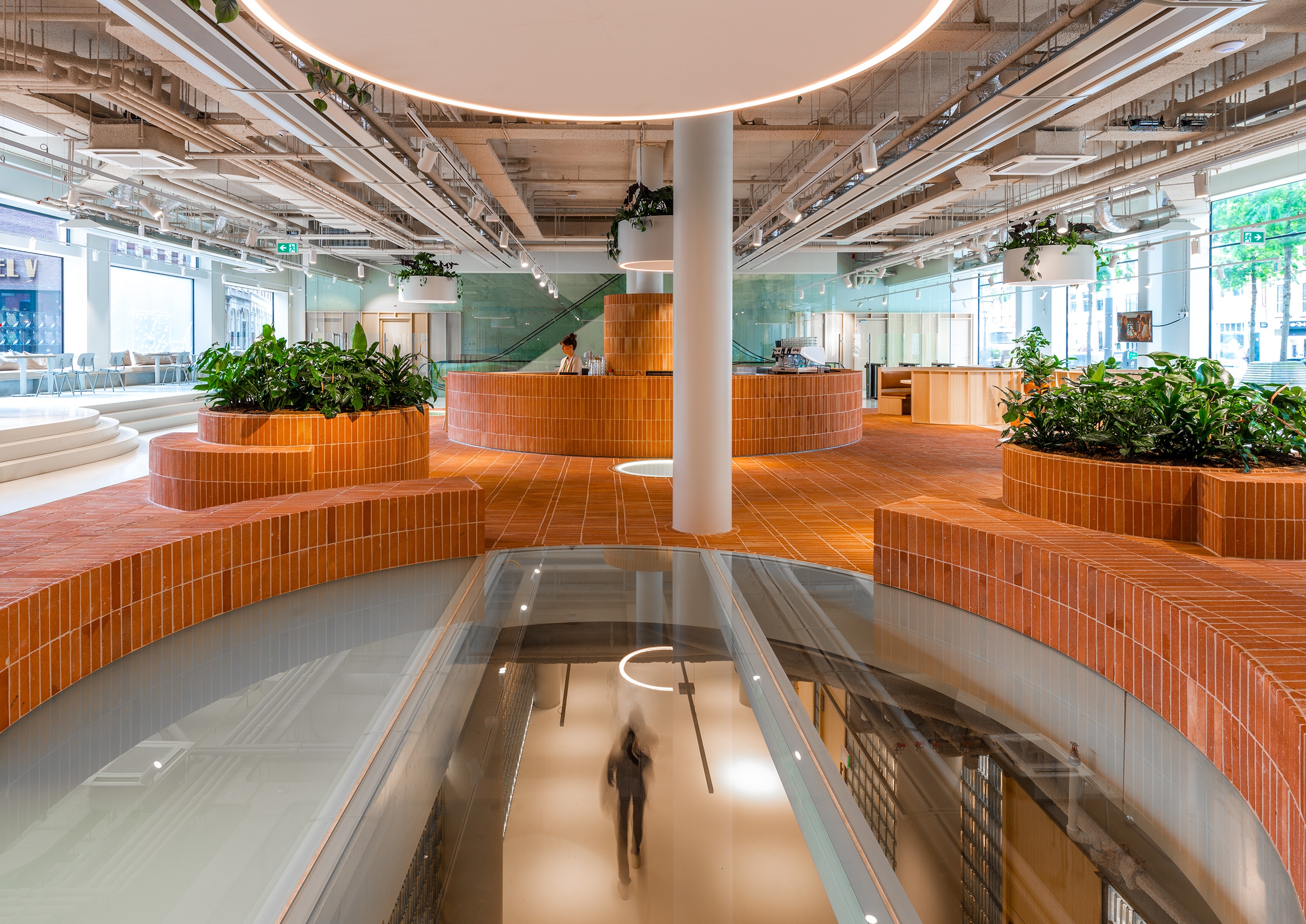 The interior of the former department store building went through a major transformation, preserving the previous ‘department- store feel’ and respecting the clients wish to re-use materials.