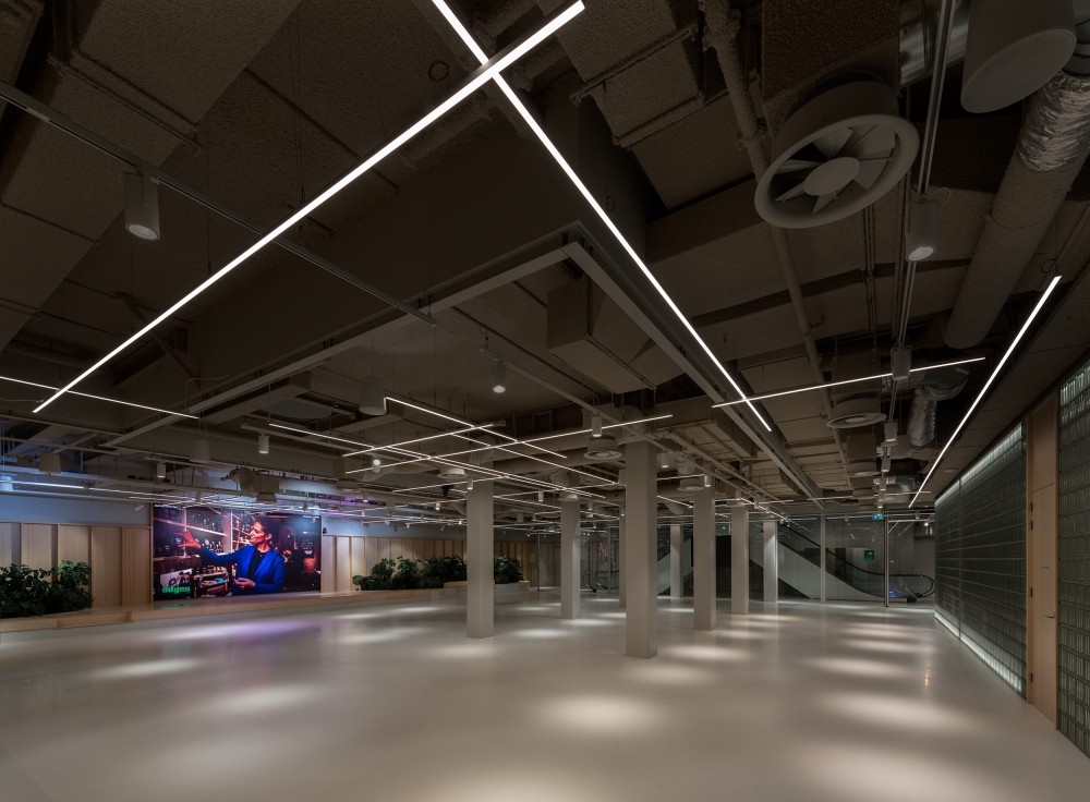 All desks have been provided with appropriate, functional workspace lighting. Suspended linear profiles follow desk arrangements and strengthen the interior design statement.