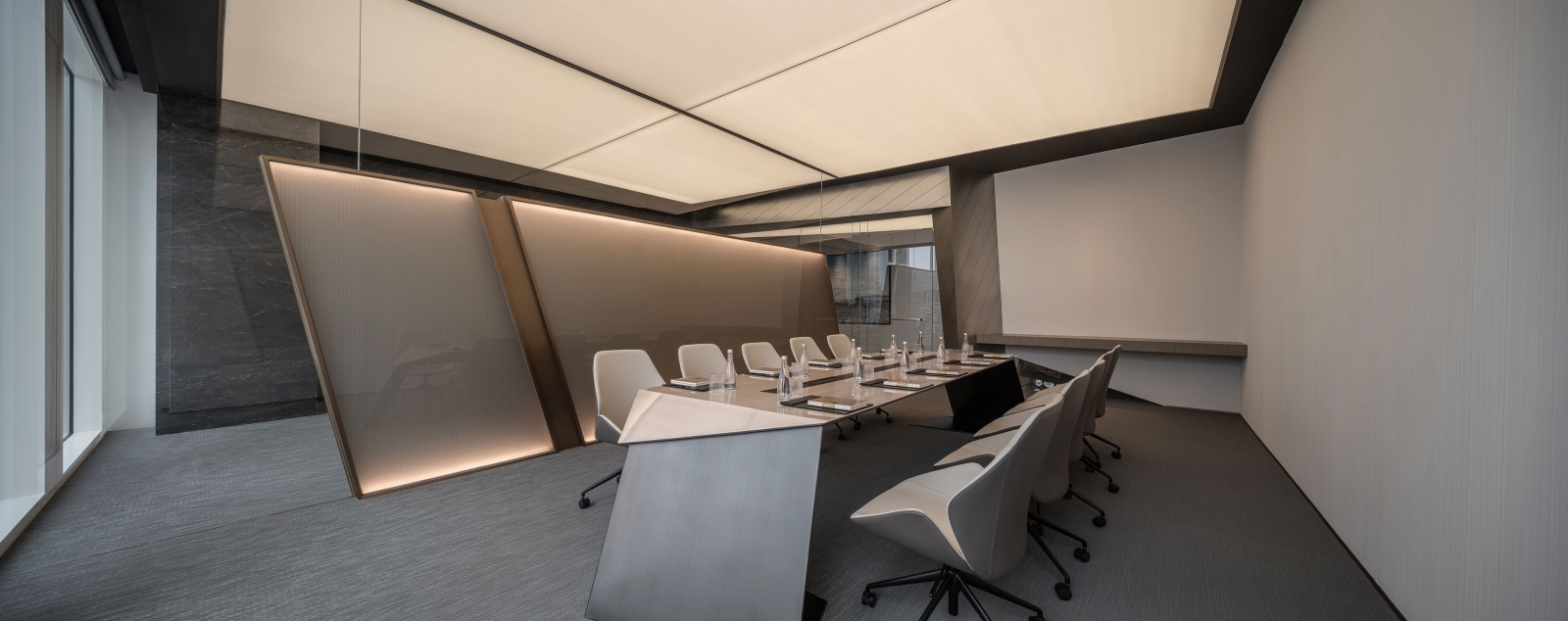 In the meeting rooms, an integrated ceiling pendant light provides comfortable diffused lighting throughout the entire room. The three lighting modes not only meet the various scene requirements of the space but also allow for independent adjustment of the color temperature in the room.