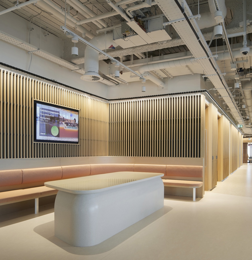 The design and construction phase of the fit-out prioritised sourcing responsible materials, with an emphasis on circularity and reduced emissions. The design of the building retains a strong focus on performance not just in terms of energy and whole life carbon, but also with regards to air, water, acoustics, and lighting quality which will be verified in the operational facility.
