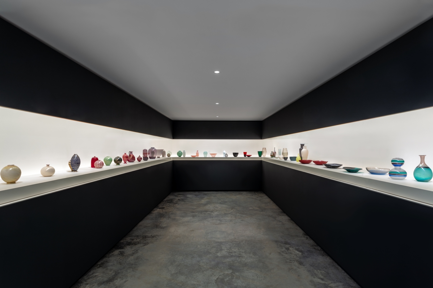 The purpose of the lighting design was for luminaires to disappear and perfectly blend with the minimal architecture. Galleries are softly and uniformly lit, with low-glare luminaires installed in tracks for full flexibility. The light sources used, combined with their spacing and carefully calibrated location from the gallery walls, allow for a shadow free art wall illumination. The cafe and shop have millwork integrated lighting to celebrate the intended relaxing nature of this space, where one can admire the landscape.