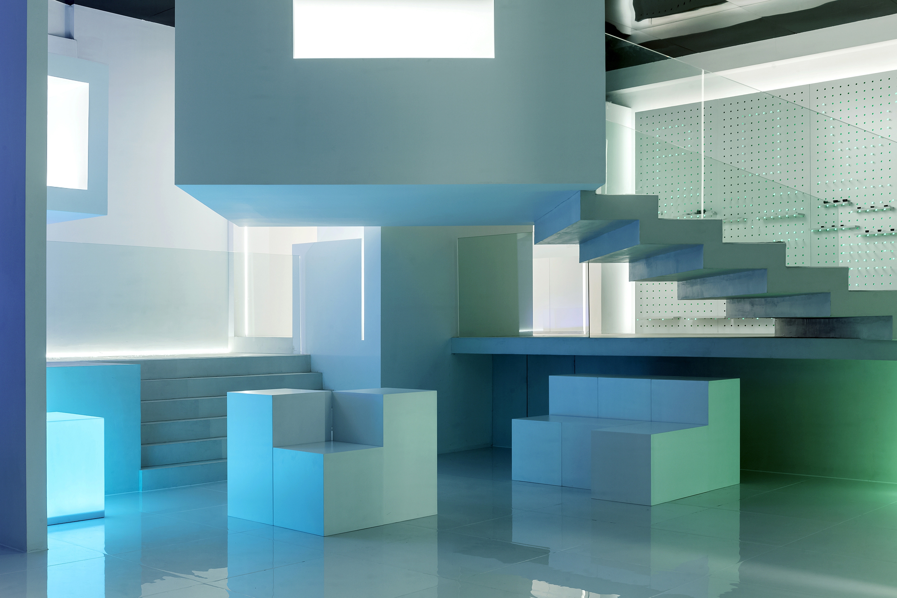 Sustainability ApproachThe concept of Power 8 Lighting Showroom is to "explore the infinite possibilities of light". Through the language of spatial design, the designer interprets a deconstructed and reorganized virtual space to explore the different spatial experiences of light. The interior is constructed with geometric blocks to create a pure space of light and shadow. The abandonment of decorative elements and signage design allows people to think less of the conventional thought and blur the boundaries of space. Square-shaped blocks of different sizes are distributed in various areas of the exhibition hall, making different spatial proportions. The light rendering generates an illusion of weightlessness through floating and staggering. The floating platform is arranged with display perforated panels.