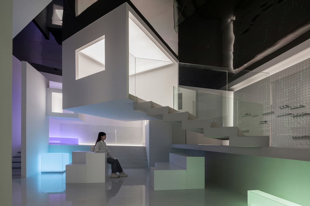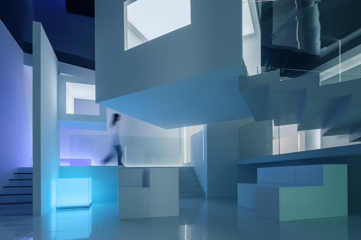 The spatial design of this case collaborates with the lighting design to explore different lighting methods and experiences through experimental exploration. Through the infusion of light as a kind of energy, we can give life to the space and create infinite possibilities. Therefore, there is no set route in this 'Indefinite' space of light. One can only explore every corner of the space through the 'guidance of light'. The design uses the basic geometric forms of points, lines and surfaces, allowing people to cut off the relevance of reality and enter a virtual space built purely by light.