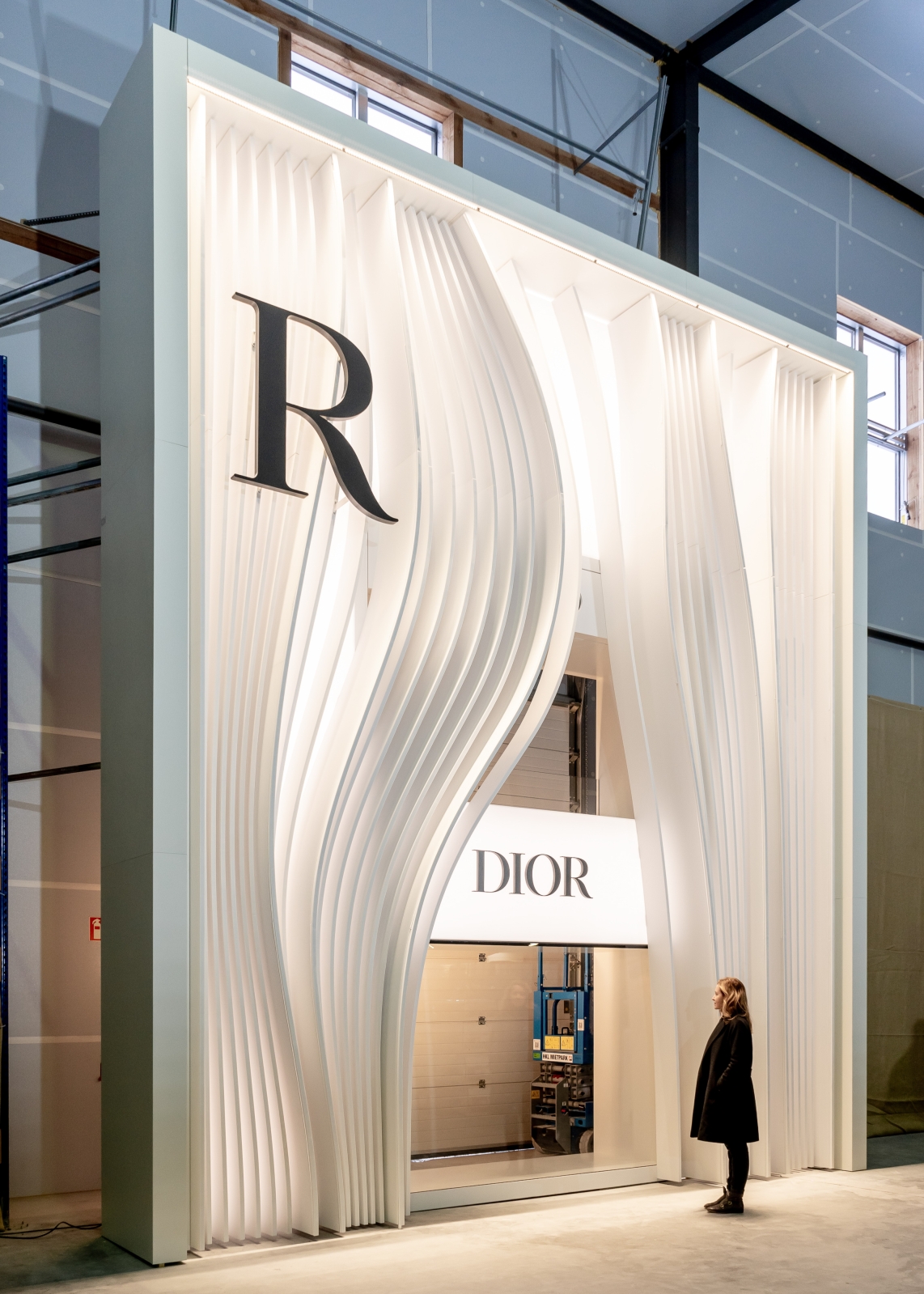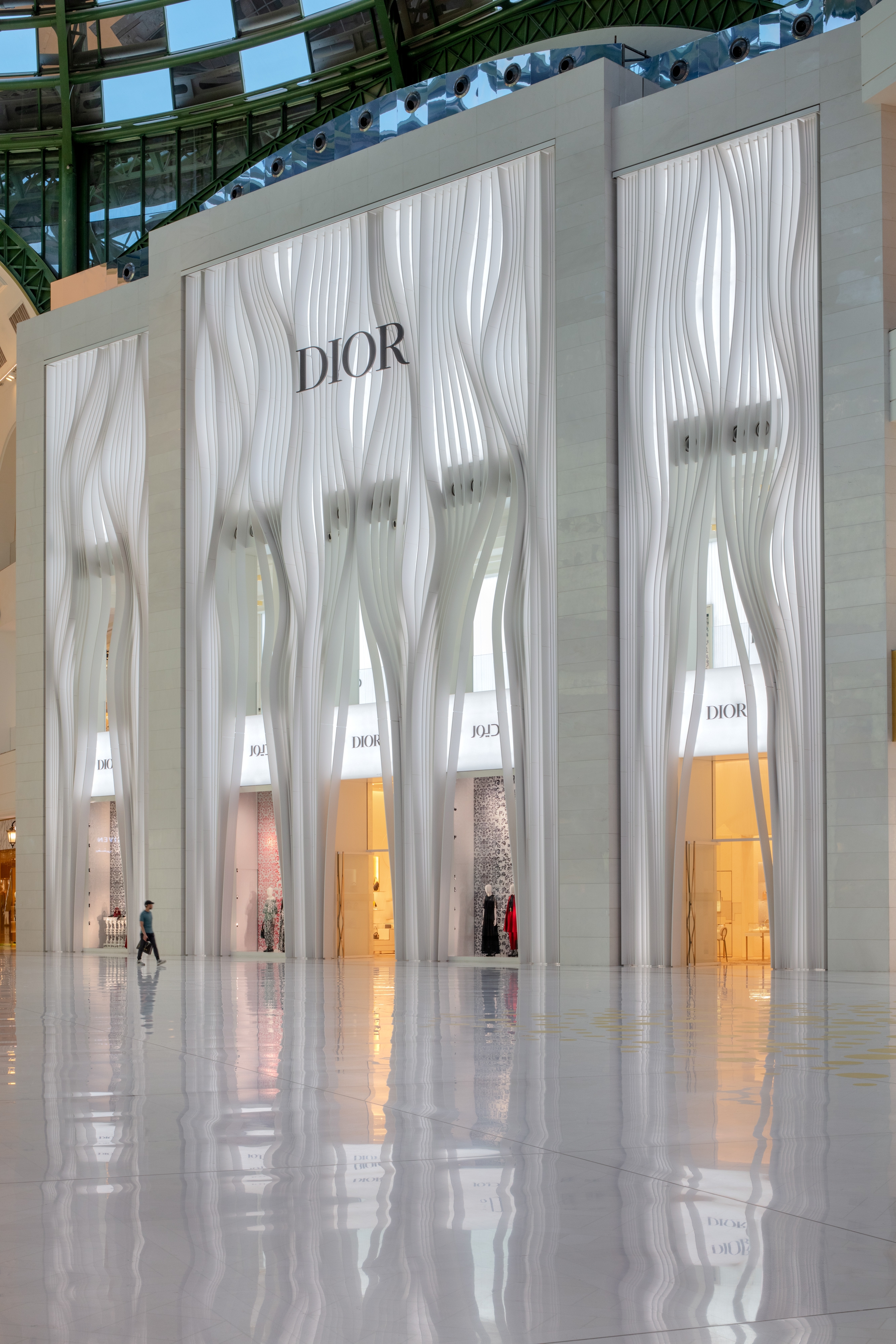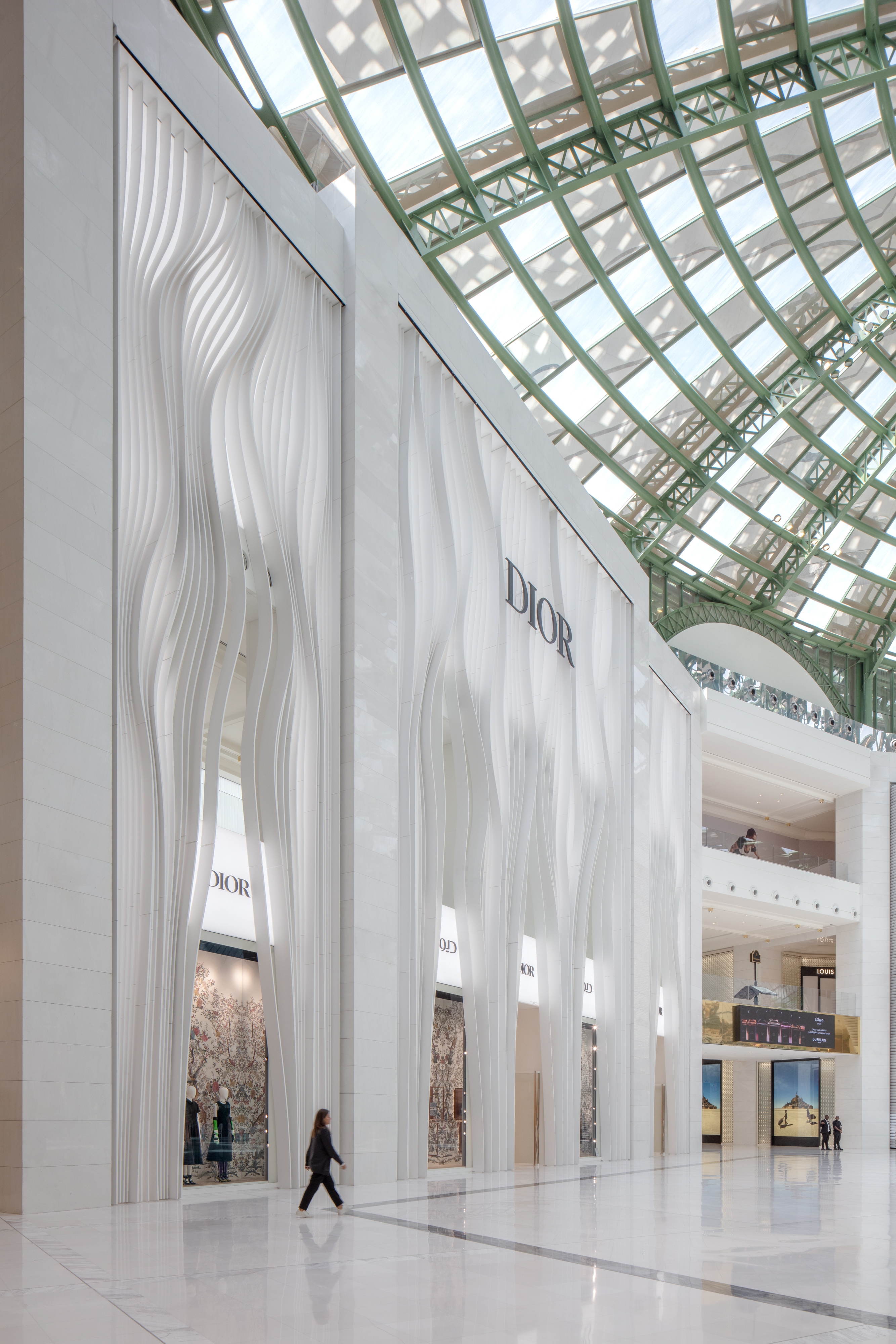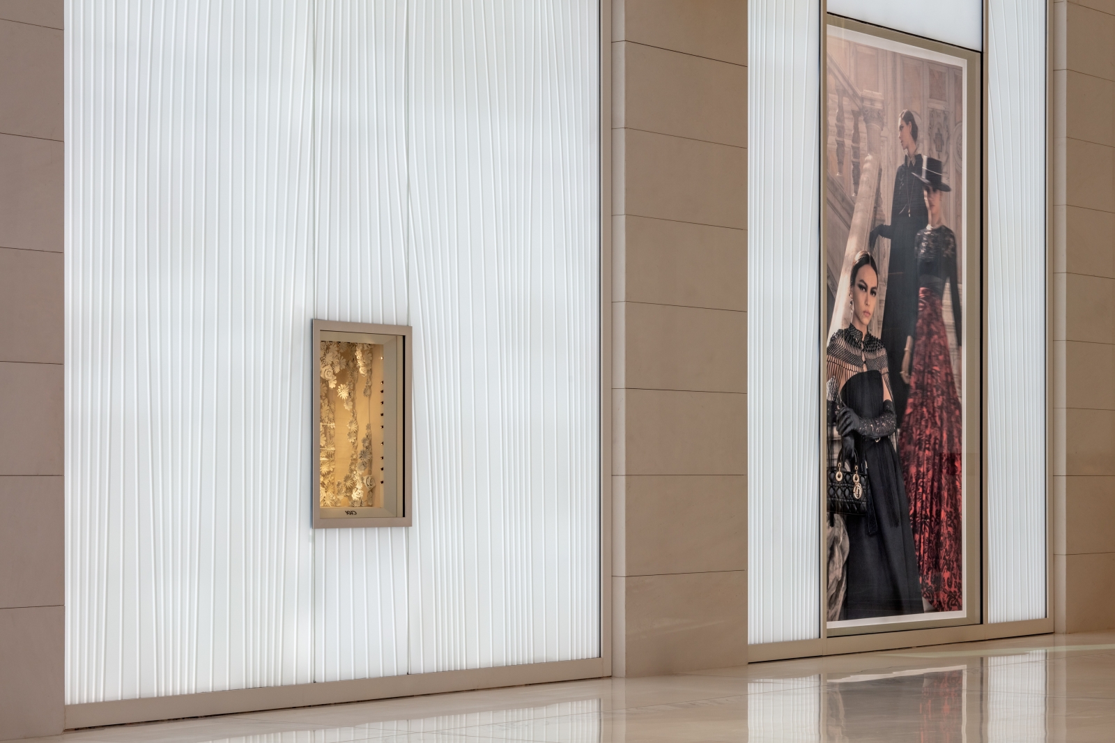 Entry DescriptionThe design for DIOR's facade is inspired by the dresses of the legendary fashion house to provide an illuminated architectural tapestry that represents the brand’s couture collections. Learning from the brand’s use of pleating to turn something soft into something geometric, we strove to transform the softness, movement, and luminous qualities of fabric into architectural materials. Like the pleats in a DIOR dress swaying with the movement of the body, the facade tries to capture a fleeting moment with an architecture of unexpected lightness.