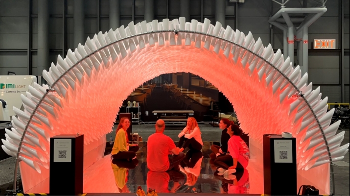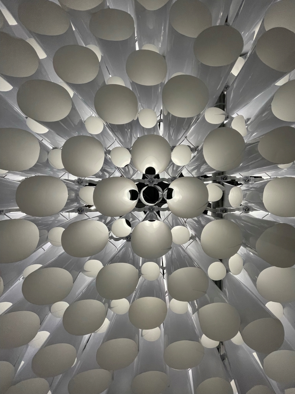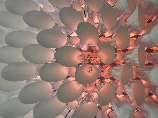 Entry DescriptionThis immersive installation, realized in partnership with the manufacturing team, represents the concept of circular economy through its carefully selected materials, aspirations for reuse and its signature barreled form. As amateur urban gardeners, we challenged ourselves to incorporate a secondary theme centered around nature, regrowth and resilience. The primary structure is a repurposed skeletal frame of a traditional greenhouse. The manufacturing team’s innovative fixture mounting system utilizes expanded metal mesh, which supports the field of LED point lights and creates an open skin rolled over the frame. Reflective flooring surfaces allow for maximal impact of a fully circular form while using only half of the actual resources and materials. Recyclable, lightweight paper was cut, by hand, and rolled to create a topography of extruded petal forms tension held within the luminous mesh, revealing each “seed” of light as one moves around and interacts with the installation from both internal and external vantage points. Forty distinct patterns mimic a flower bloom as each petal becomes more scalloped and open as they near the edges. Uniquely tailored programming of the media lighting system enhances the concept of cyclical life and vegetation as the “Seeds of Light” germinate, bloom, nourish, and reconnect us to the Earth.